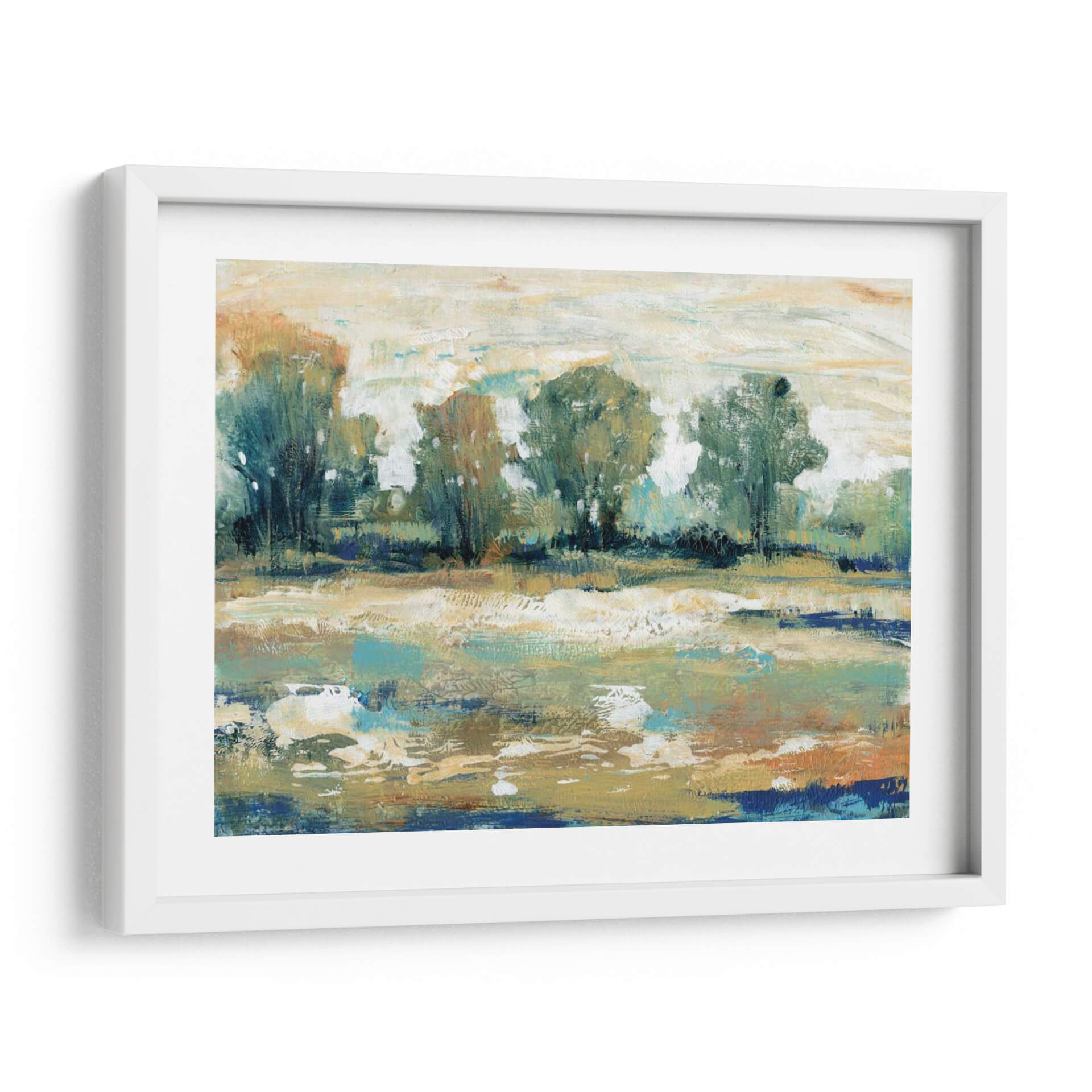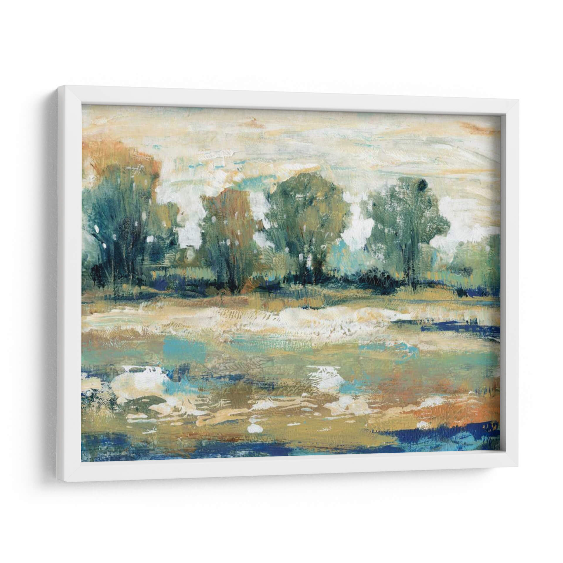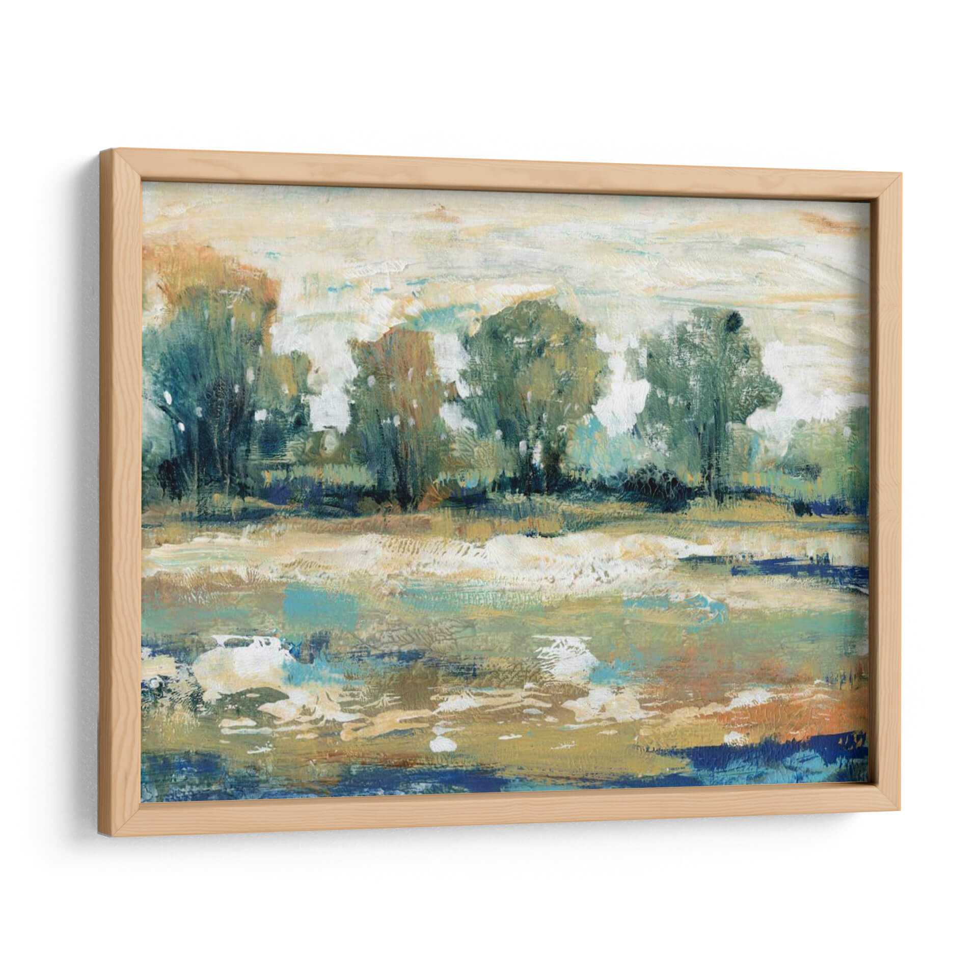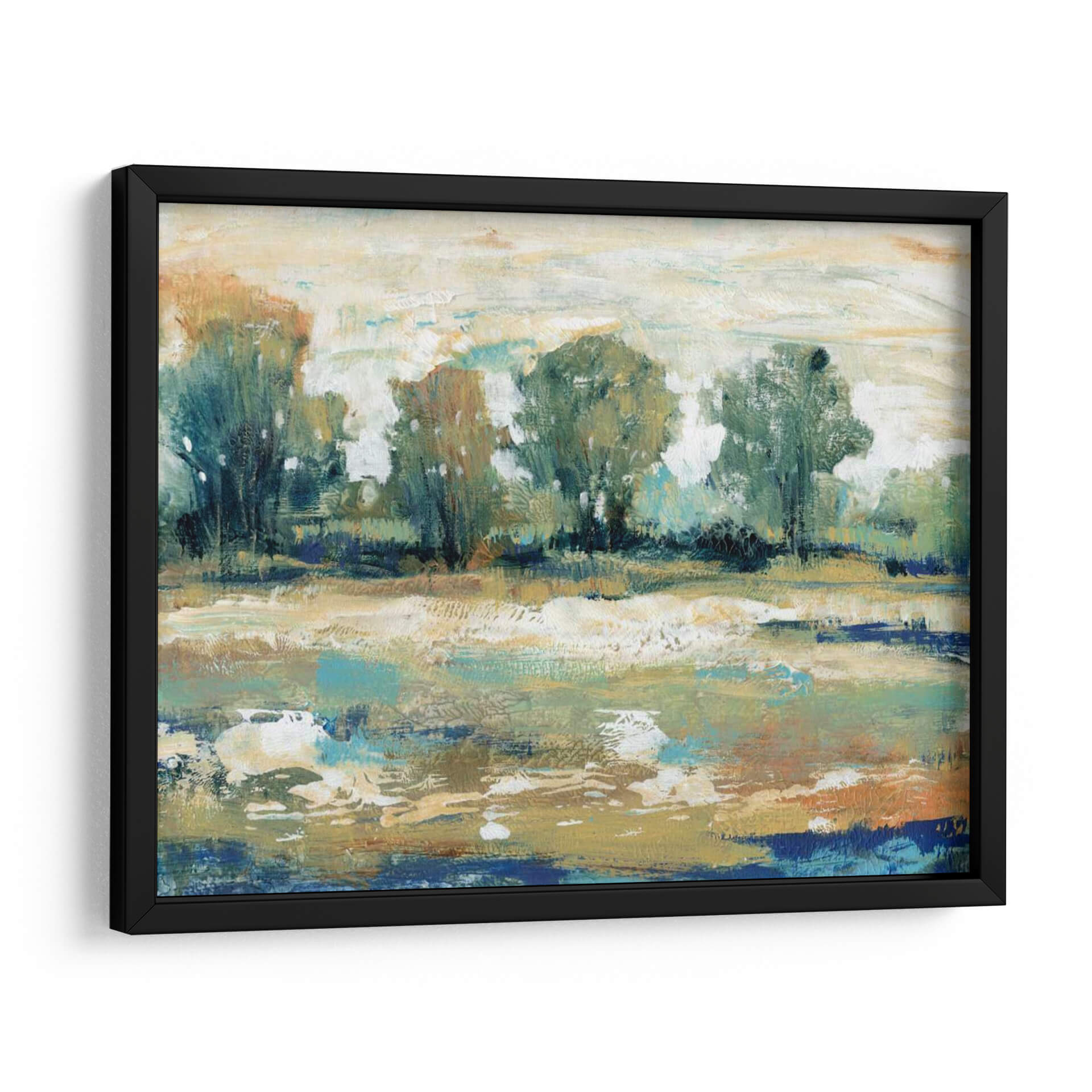 Sumérgete en la serena belleza de "Shade Azul Ii", una obra de arte contemporáneo que evoca la tranquilidad de un paisaje acuático bañado por la luz del atardecer. Este cuadro decorativo, impregnado de una atmósfera etérea, presenta una paleta de colores que transita entre los azules profundos, verdes musgo y toques de ocre y blanco roto. La técnica pictórica, con pinceladas sueltas y texturizadas, crea una sensación de movimiento y profundidad, invitando al espectador a perderse en sus matices. Las formas abstractas que sugieren árboles y reflejos en el agua invitan a la contemplación, convirtiendo esta pieza en el punto focal perfecto para un salón moderno, un estudio o un dormitorio que busque un oasis de calma. "Shade Azul Ii" no es solo una decoración; es una invitación a la introspección y a la conexión con la naturaleza a través del arte. Añade un toque de sofisticación y serenidad a tu hogar con esta pieza única de Tim O'Toole, un cuadro decorativo que transformará cualquier espacio en una galería personal llena de emociones y estilo.