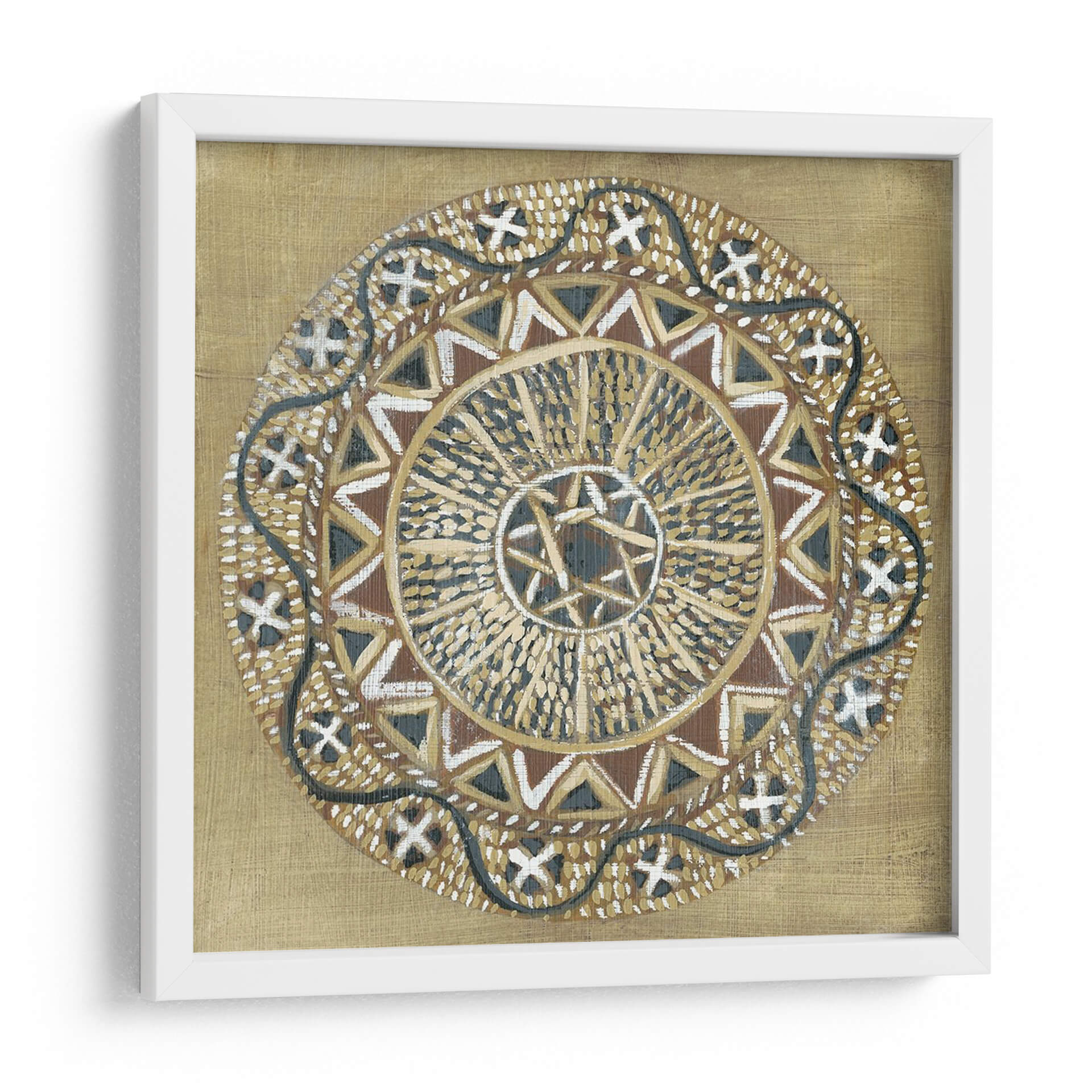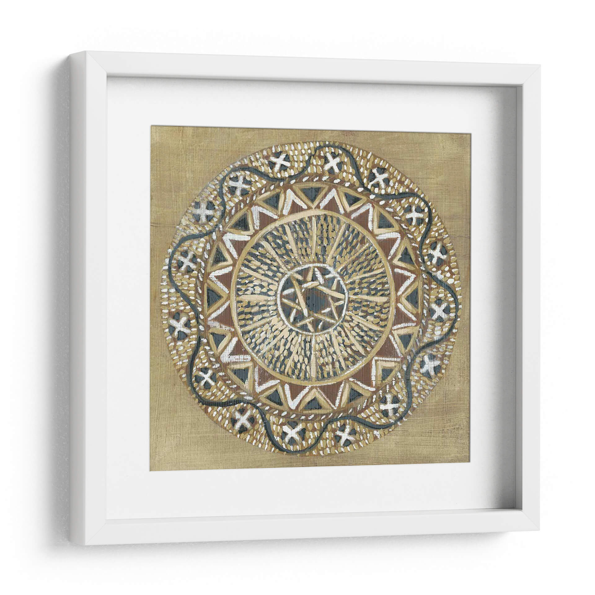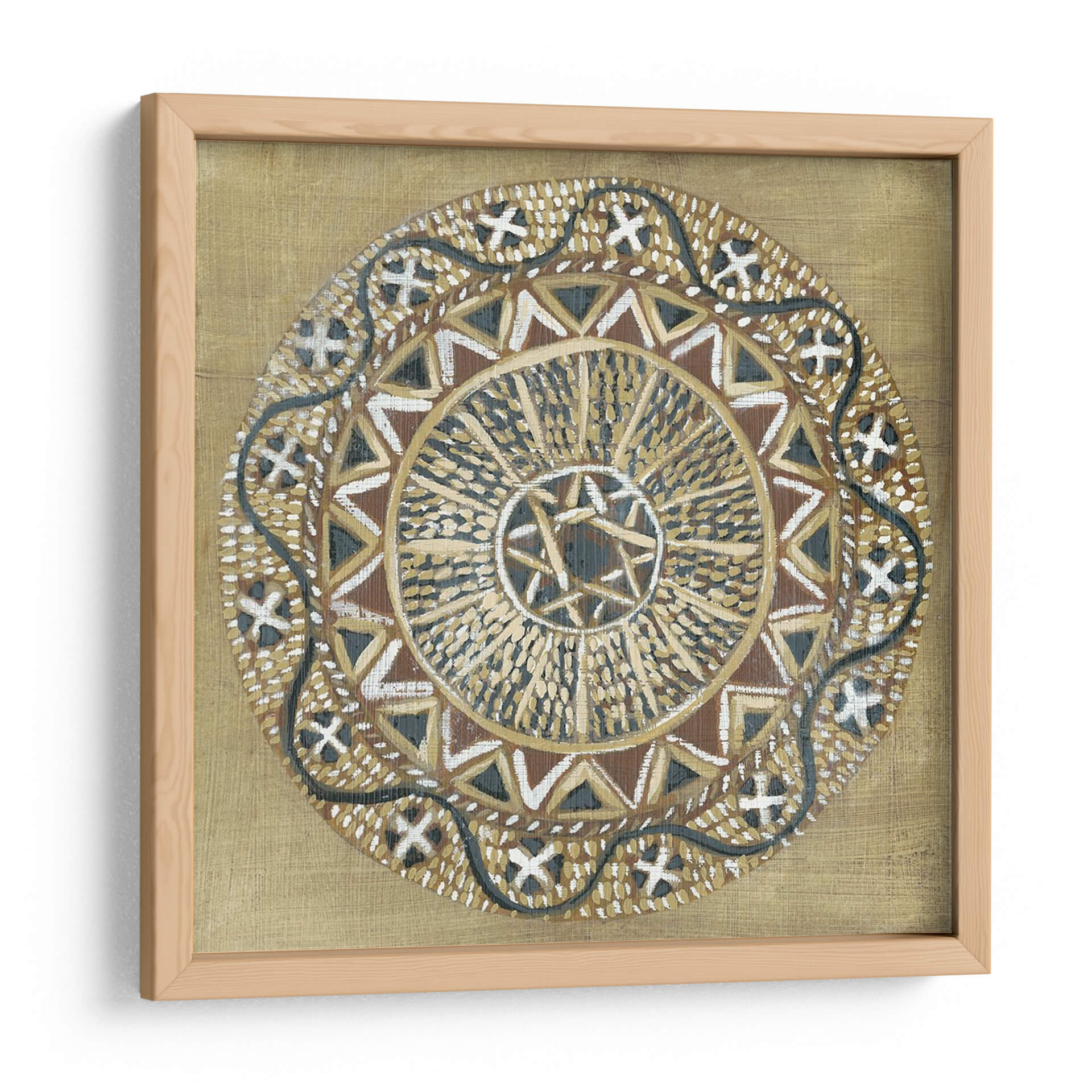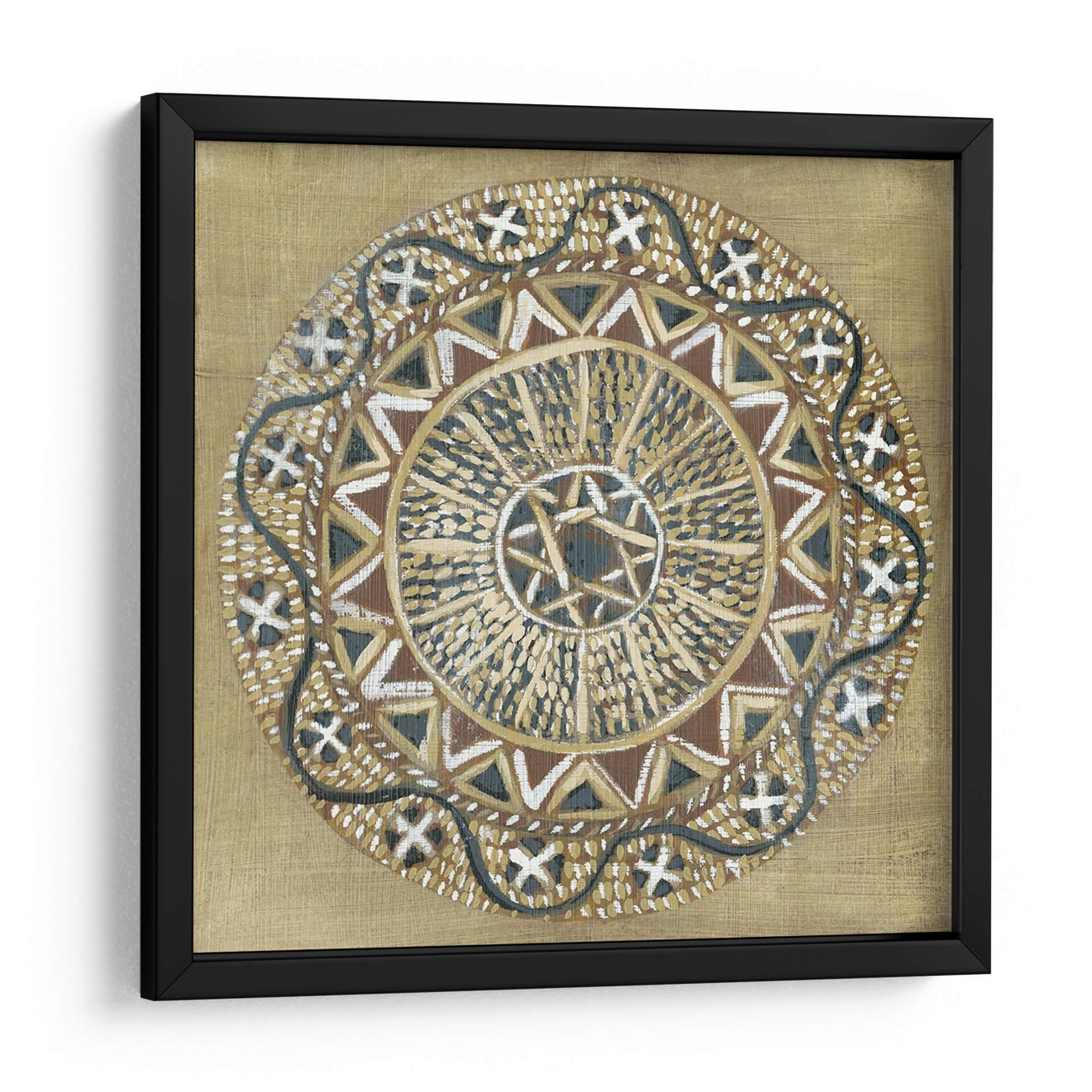 Sumérgete en la riqueza visual del cuadro decorativo "Tejido Alrededor De I" de Chariklia Zarris. Esta obra abstracta, con su intrincado diseño circular y una paleta de tonos tierra cálidos, evoca una sensación de conexión ancestral y artesanía. La composición simétrica, que recuerda a un mandala o un patrón textil antiguo, se despliega en capas de texturas y formas geométricas. Los detalles en blanco, marrón oscuro y gris azulado contrastan sutilmente con el fondo dorado, creando un efecto visual dinámico y a la vez armonioso. "Tejido Alrededor De I" es ideal para añadir un toque de sofisticación y profundidad a salones modernos, estudios o cualquier espacio que busque un punto focal que inspire calma y reflexión. Su estilo único lo convierte en una pieza versátil, perfecta para complementar decoraciones rústicas, bohemias o contemporáneas, invitando a la contemplación y al aprecio por el arte detallado y con alma.