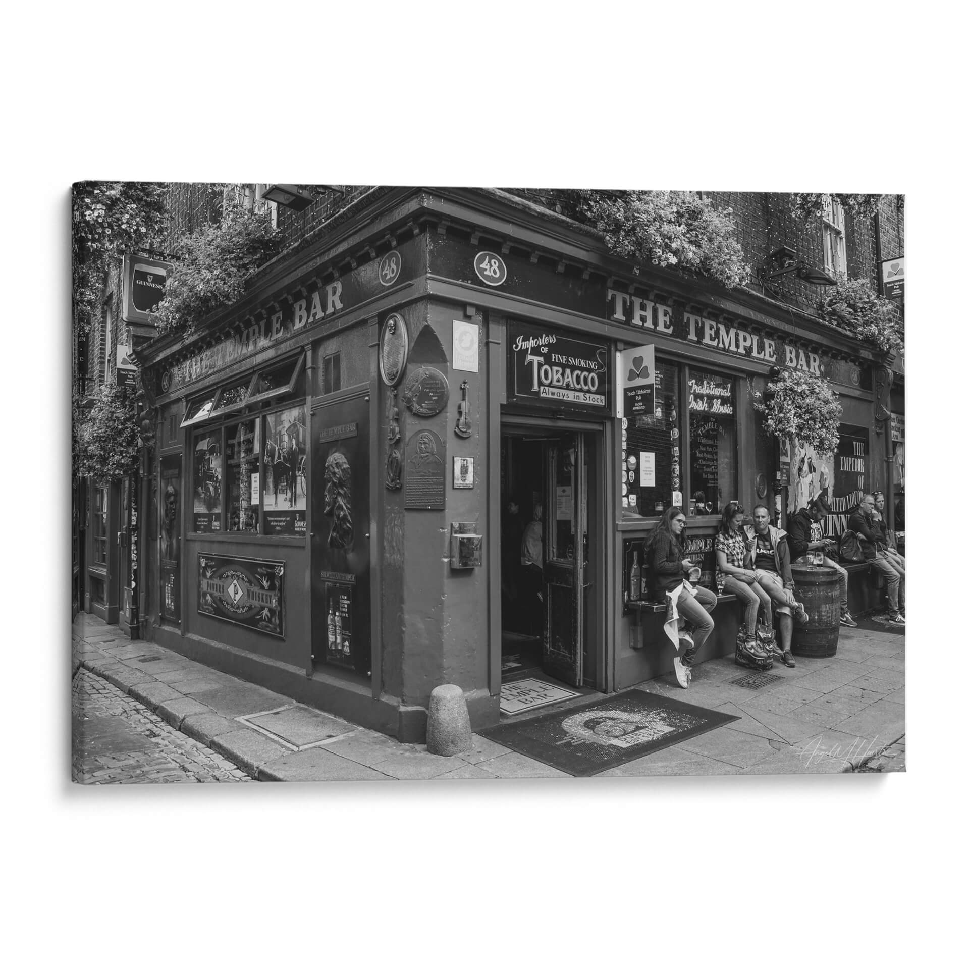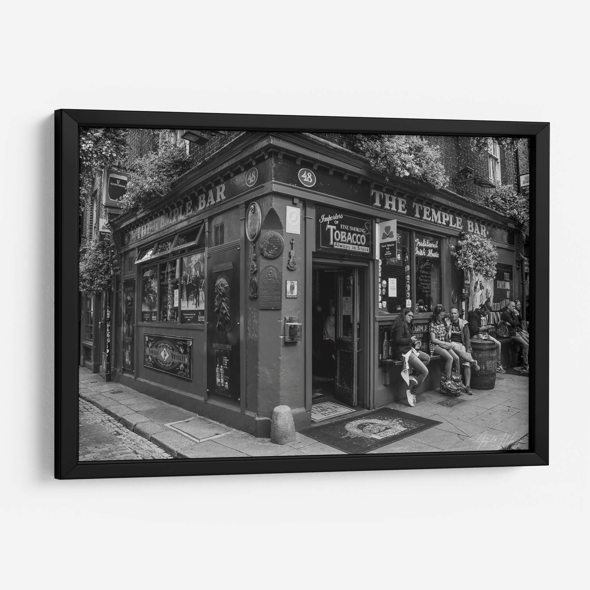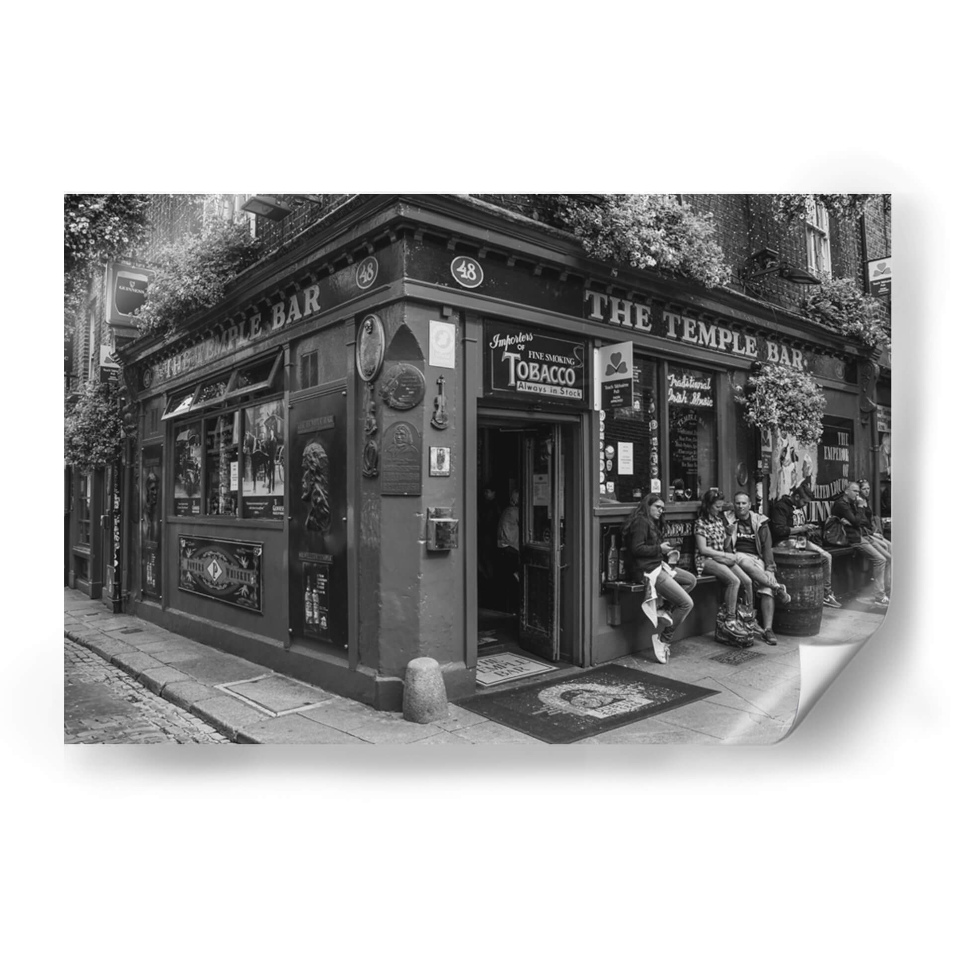 Captura la esencia vibrante de la vida urbana con este evocador cuadro decorativo, 'The Temple Bar', del artista Ángel M. Huerta. Esta obra en blanco y negro transporta al espectador a una escena callejera llena de carácter y atmósfera, centrada en la icónica fachada de un pub irlandés. La composición destaca la arquitectura detallada, la vegetación exuberante que enmarca la entrada y la presencia de personas en el exterior, sugiriendo una narrativa de encuentros y momentos cotidianos. El uso del blanco y negro añade una cualidad atemporal y dramática, resaltando texturas y contrastes que invitan a la contemplación. Es una pieza ideal para quienes buscan añadir un toque de historia, cultura y sofisticación a su hogar u oficina. Este cuadro decorativo es perfecto para crear un punto focal en salones, comedores, estudios o incluso espacios comerciales como cafeterías o bares. Su estilo fotográfico realista, con un aire clásico y a la vez moderno, lo convierte en una adición versátil que complementa una amplia gama de decoraciones, desde las más tradicionales hasta las contemporáneas. Sumérgete en la atmósfera única de 'The Temple Bar' y transforma tu espacio con arte que cuenta historias y evoca emociones.