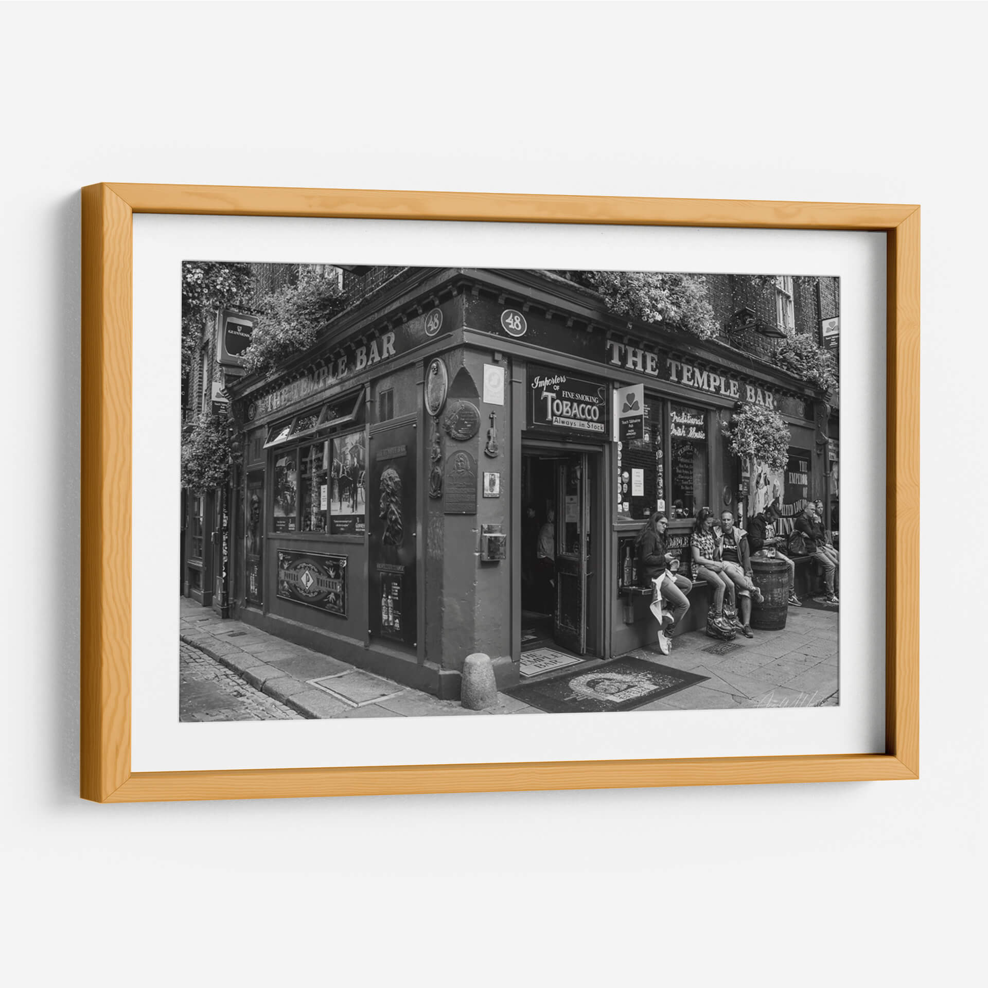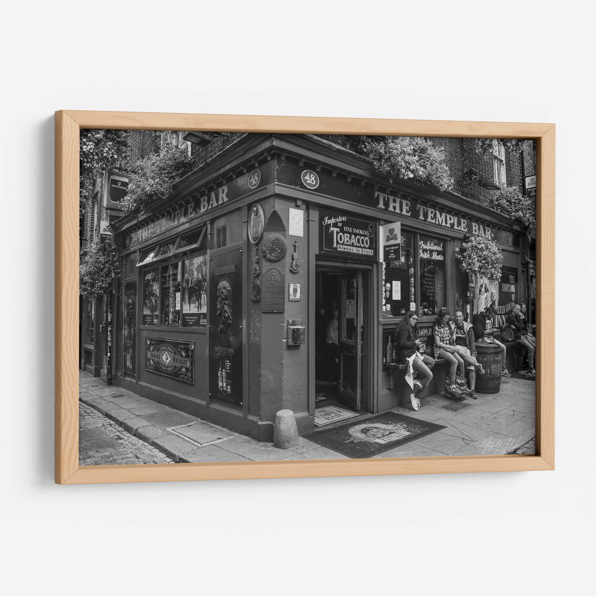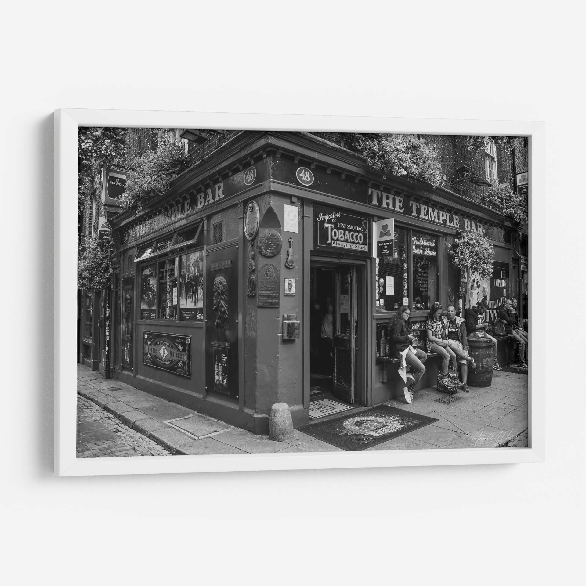 Captura la esencia vibrante de la vida urbana con este evocador cuadro decorativo, 'The Temple Bar', del artista Ángel M. Huerta. Esta obra en blanco y negro transporta al espectador a una escena callejera llena de carácter y atmósfera, centrada en la icónica fachada de un pub irlandés. La composición destaca la arquitectura detallada, la vegetación exuberante que enmarca la entrada y la presencia de personas en el exterior, sugiriendo una narrativa de encuentros y momentos cotidianos. El uso del blanco y negro añade una cualidad atemporal y dramática, resaltando texturas y contrastes que invitan a la contemplación. Es una pieza ideal para quienes buscan añadir un toque de historia, cultura y sofisticación a su hogar u oficina. Este cuadro decorativo es perfecto para crear un punto focal en salones, comedores, estudios o incluso espacios comerciales como cafeterías o bares. Su estilo fotográfico realista, con un aire clásico y a la vez moderno, lo convierte en una adición versátil que complementa una amplia gama de decoraciones, desde las más tradicionales hasta las contemporáneas. Sumérgete en la atmósfera única de 'The Temple Bar' y transforma tu espacio con arte que cuenta historias y evoca emociones.