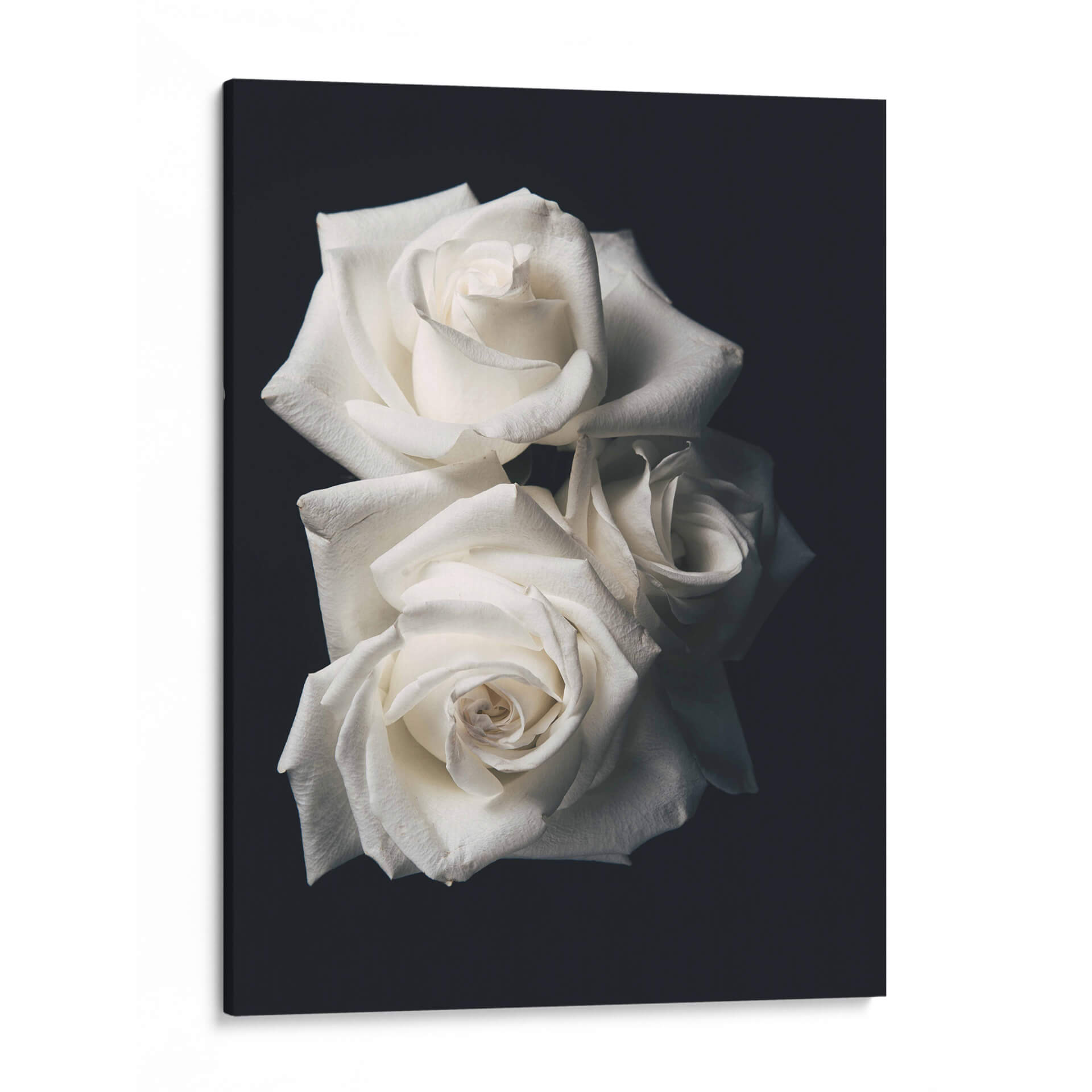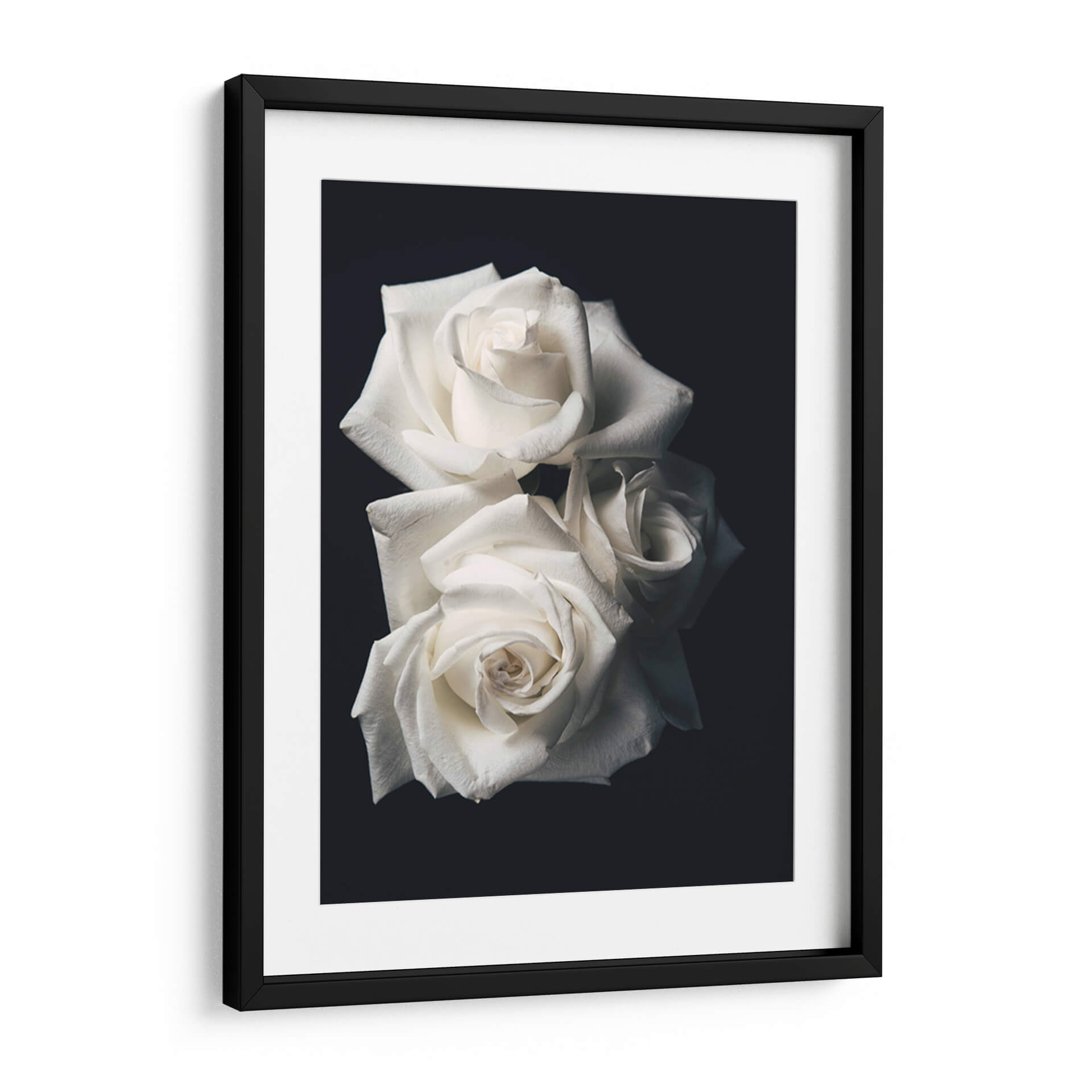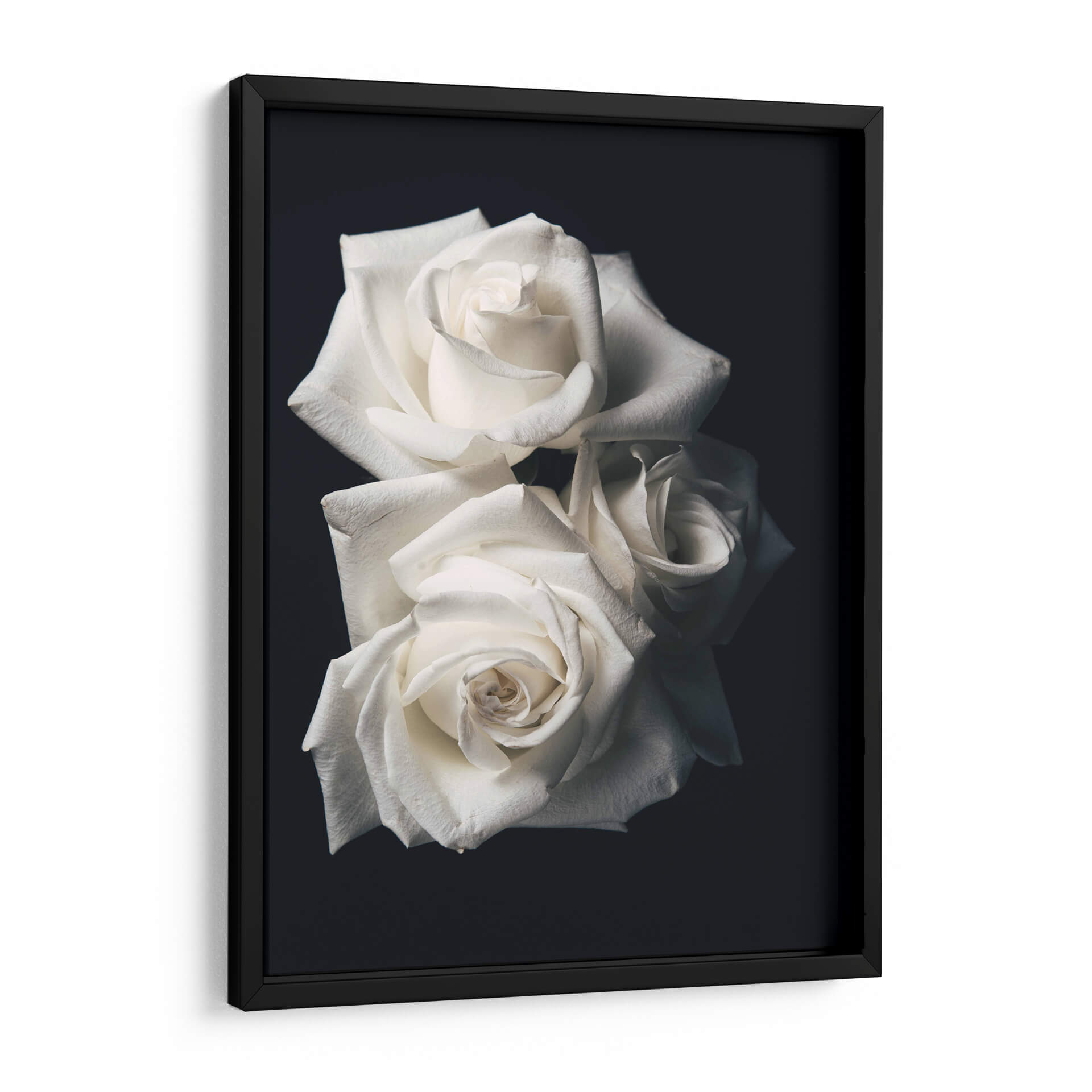 Sumérgete en la delicadeza y elegancia de "Tres Rosas Blancas en Fondo Negro", una obra de arte que captura la esencia pura de estas flores icónicas. Este cuadro decorativo presenta tres rosas blancas de pétalos aterciopelados, dispuestas con una composición armoniosa sobre un fondo profundo y oscuro que resalta su luminosidad. La luz se posa suavemente sobre cada rosa, creando sutiles sombras y volumen que invitan a la contemplación. El estilo fotográfico y el enfoque detallado en la textura de los pétalos confieren a la pieza una atmósfera de calma y sofisticación. Ideal para añadir un toque de serenidad y belleza atemporal a cualquier espacio, ya sea un dormitorio acogedor, un elegante salón o un estudio que busque inspiración. Esta pieza es perfecta para amantes de la naturaleza y del arte minimalista, aportando un aire de pureza y refinamiento. Transforma tu hogar u oficina con la belleza clásica de estas rosas, un recordatorio constante de la elegancia simple y el encanto duradero.