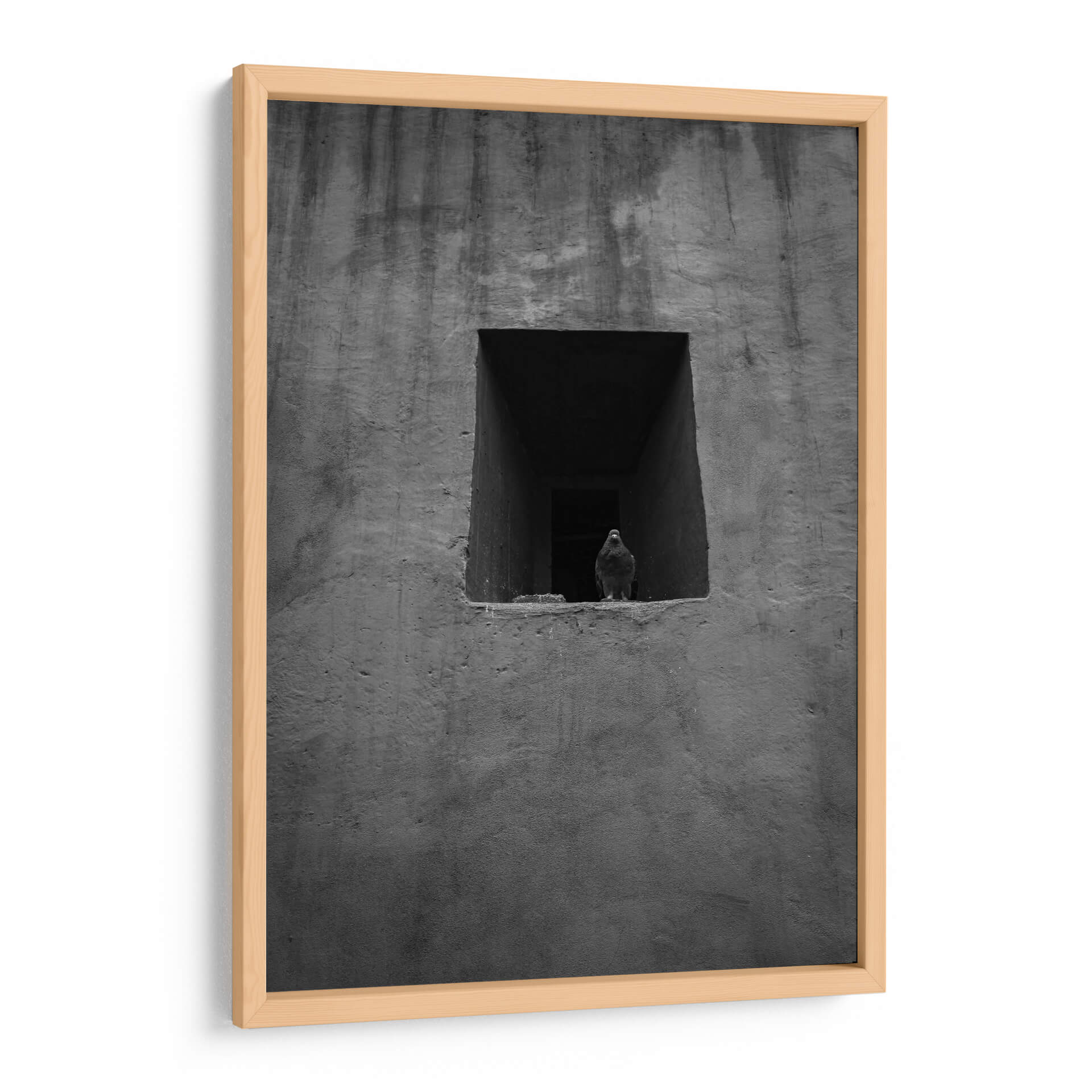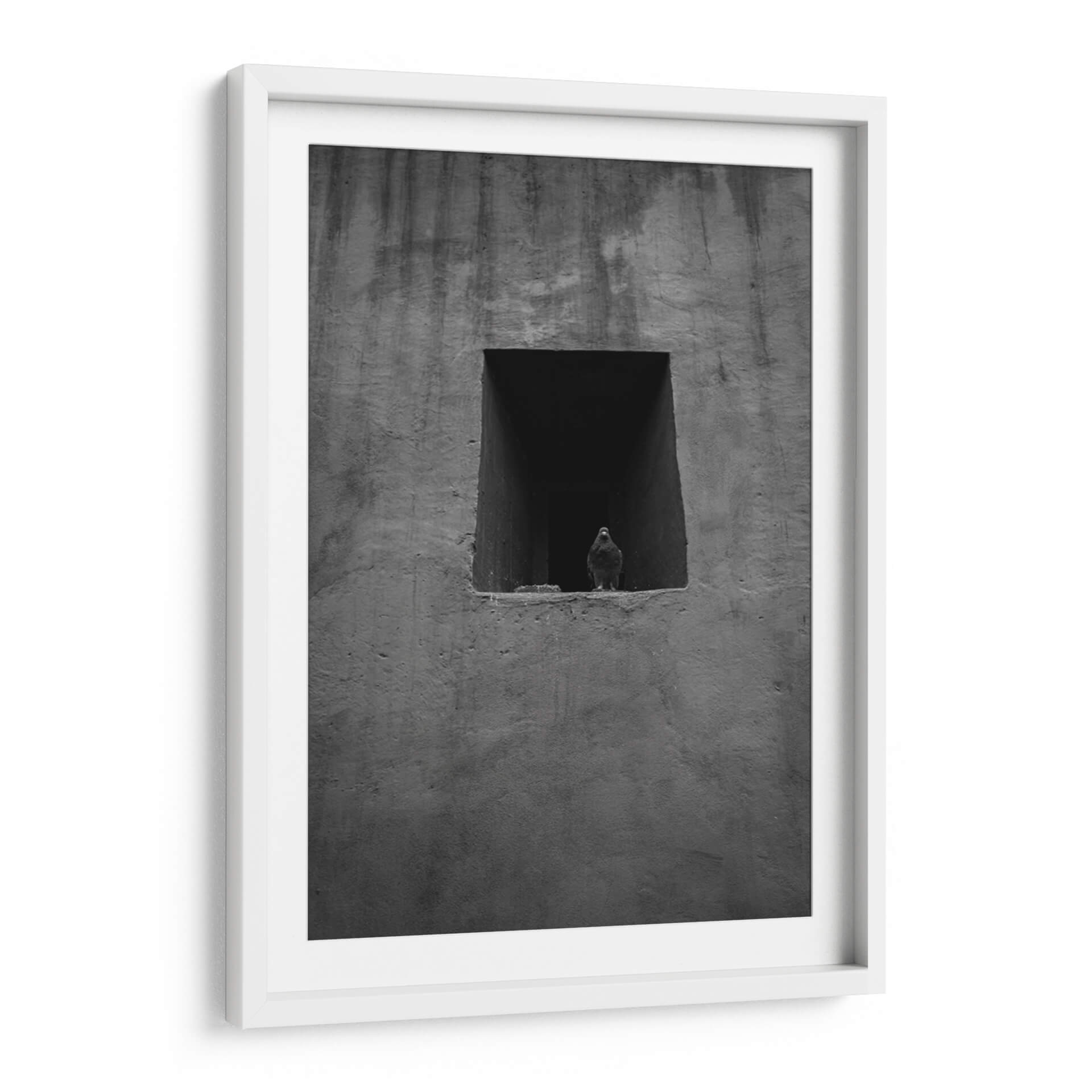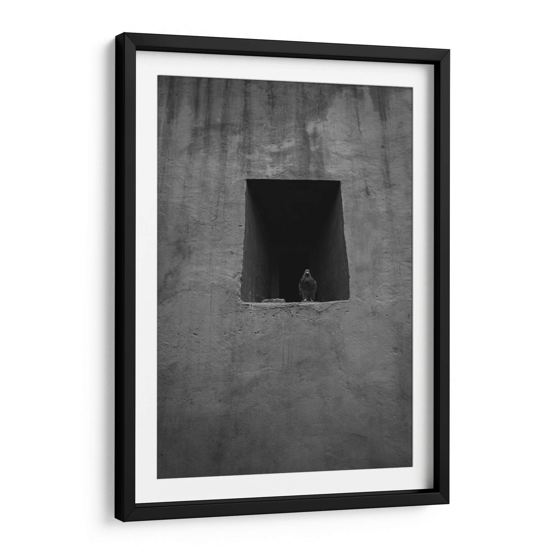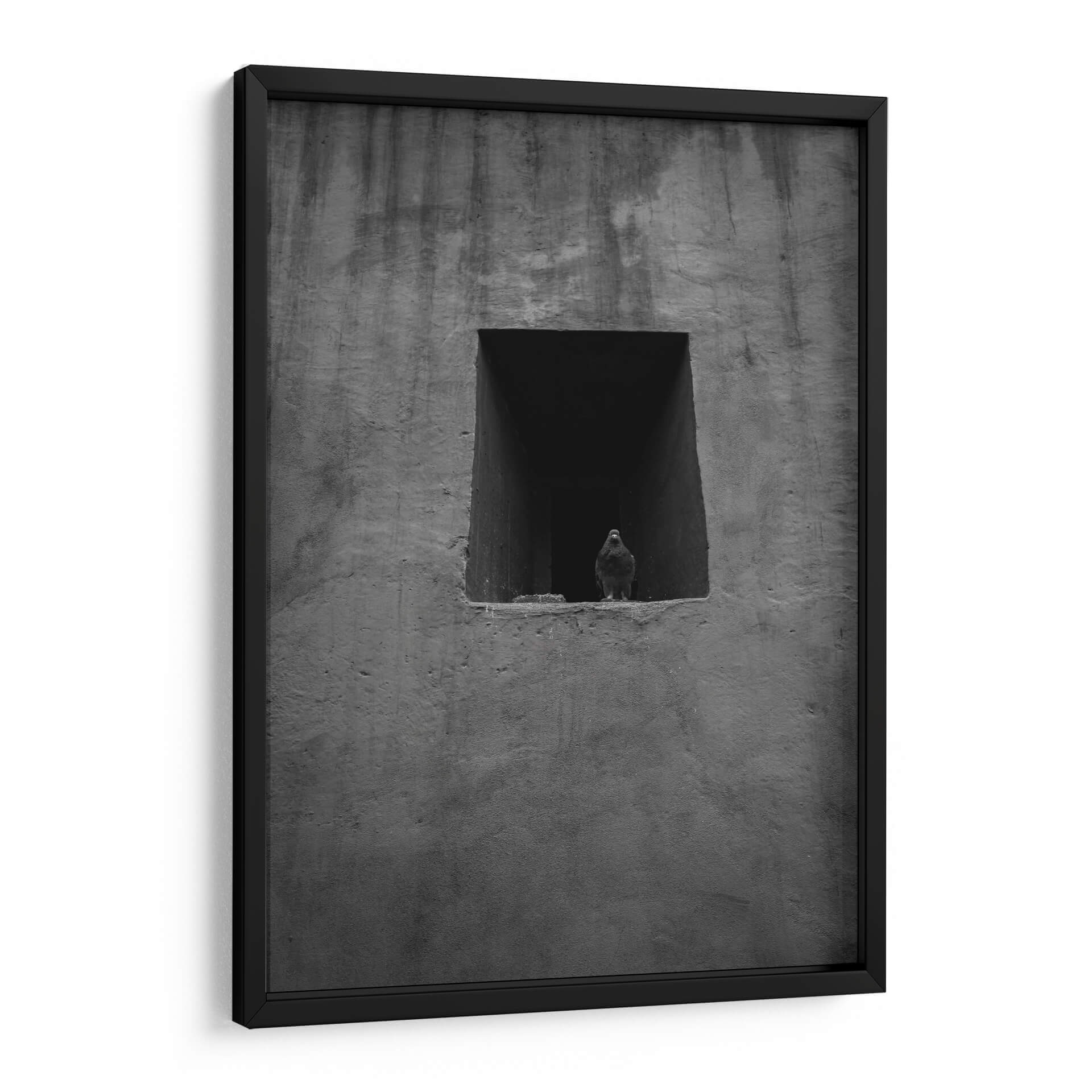 Captura la esencia de la vida urbana con este evocador cuadro decorativo en blanco y negro, 'Urban Messenger: Pigeon in Black and White' de Ani Coloca. La obra presenta una paloma solitaria enmarcada en una ventana o hueco arquitectónico, contrastando con la textura rugosa y sombría del muro circundante. La composición minimalista y el uso de tonos grises profundos crean una atmósfera de introspección y melancolía, invitando a la reflexión sobre la presencia de la naturaleza en entornos urbanos. Ideal para espacios que buscan un toque de misterio y sofisticación, este cuadro decorativo es perfecto para salas de estar modernas, estudios o incluso oficinas que deseen transmitir un aire de calma y contemplación. Su estilo fotográfico y su paleta monocromática lo convierten en una pieza versátil, capaz de complementar una amplia gama de decoraciones interiores, desde las más contemporáneas hasta las industriales. Añade un elemento visualmente impactante y lleno de significado a tu pared con esta obra única que dialoga con la soledad y la resistencia en el corazón de la ciudad.