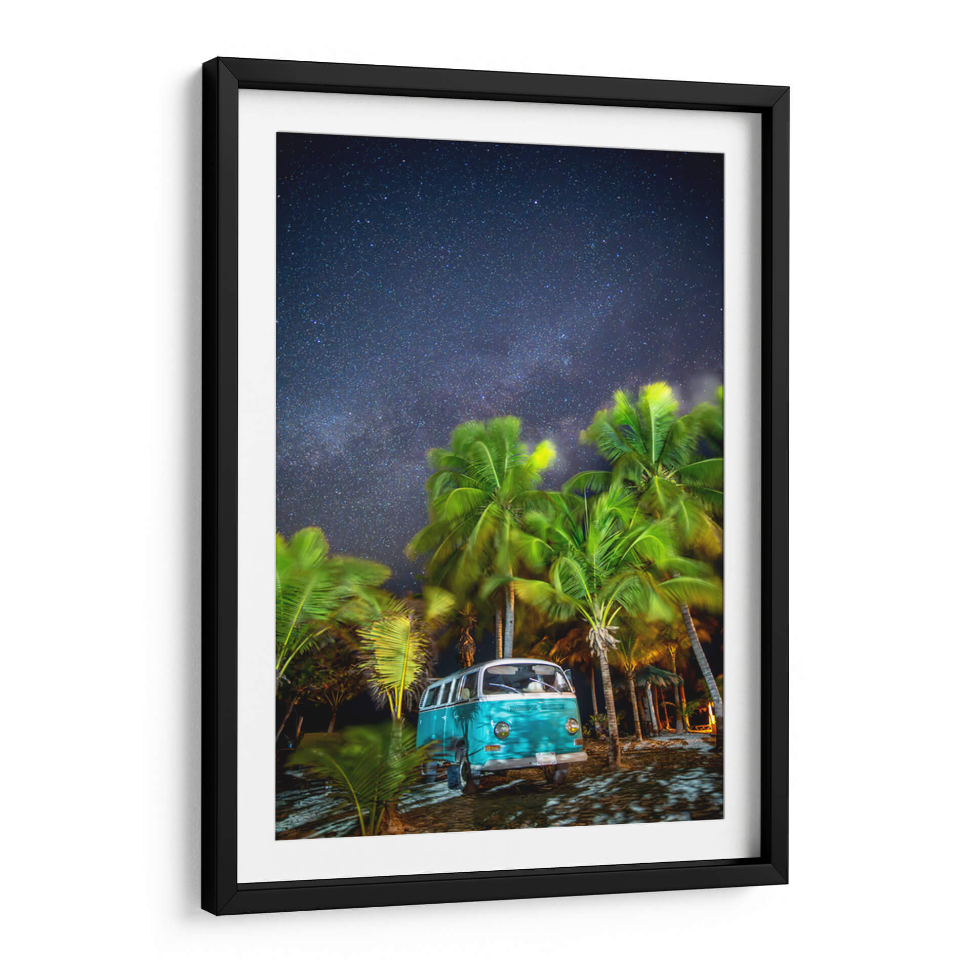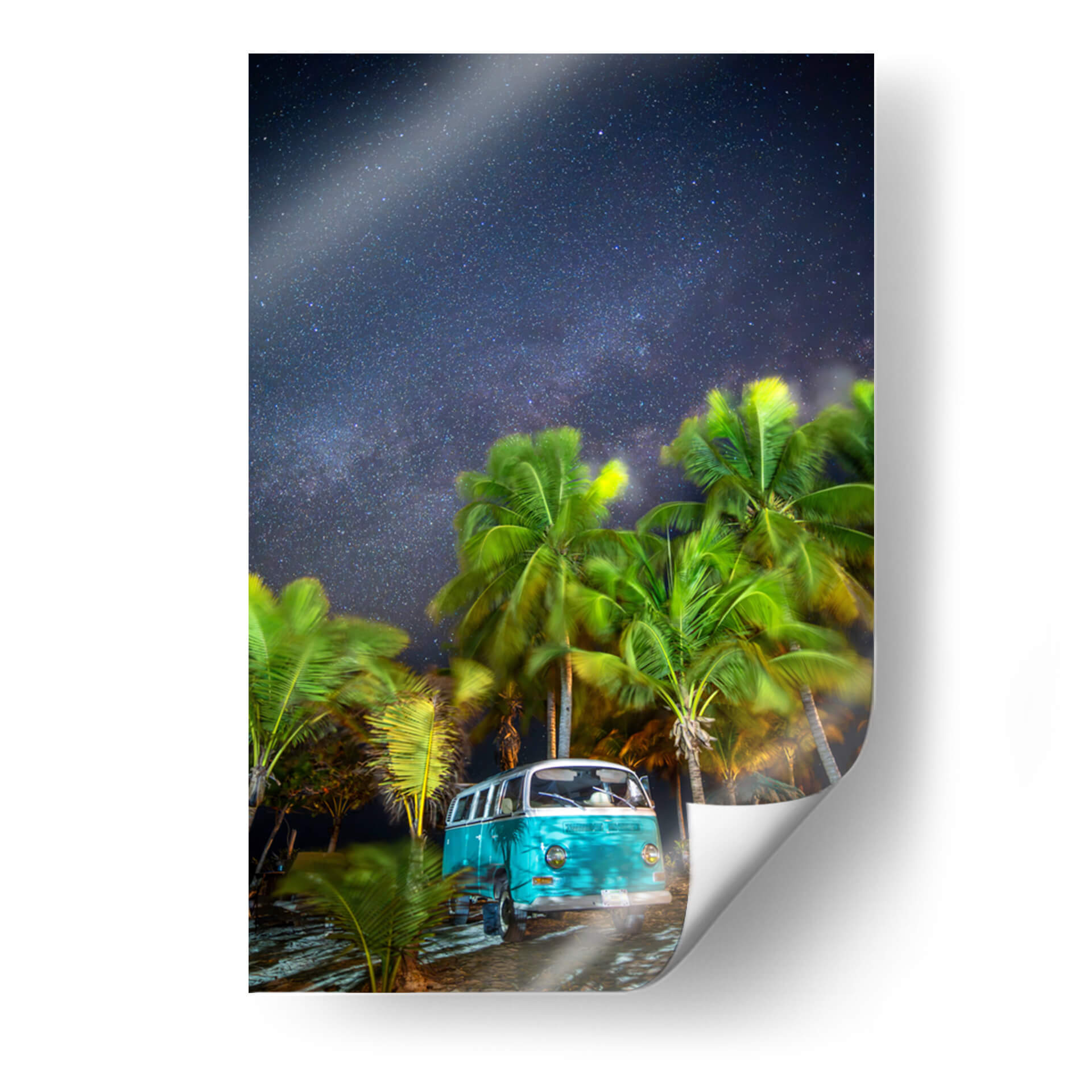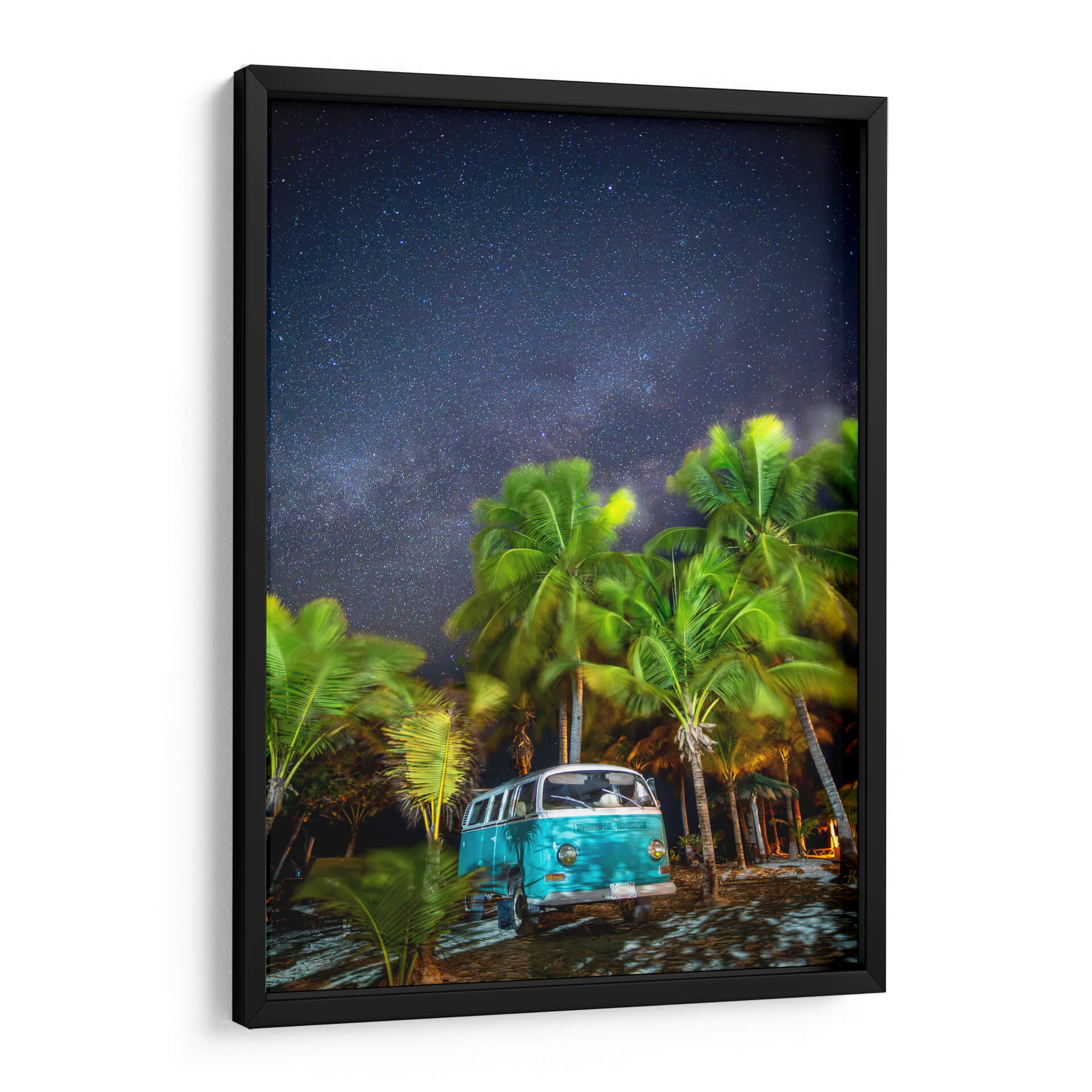Sumérgete en la majestuosidad del cosmos con este cautivador cuadro decorativo, "Van de viajero con Vía Láctea de fondo", obra del artista Fernando Lopez. La pieza captura un momento de serenidad y aventura, donde una icónica furgoneta turquesa se detiene a contemplar la inmensidad de la Vía Láctea. El cielo nocturno, salpicado de innumerables estrellas y el resplandor lechoso de nuestra galaxia, crea un telón de fondo etéreo y asombroso. Rodeada por la exuberante vegetación de palmeras, cuya silueta se recorta contra la oscuridad, la furgoneta invita a la reflexión sobre los viajes, la libertad y la conexión con la naturaleza y el universo. Los vibrantes tonos verdes de las palmeras contrastan sutilmente con el azul profundo del cielo y el turquesa vintage del vehículo, generando una atmósfera envolvente y ligeramente nostálgica. Este cuadro decorativo es perfecto para añadir un toque de encanto bohemio y cósmico a tu sala de estar, dormitorio u oficina, inspirando sueños y escapadas. Ideal para amantes de los viajes, la astronomía y el arte contemporáneo que buscan una pieza única para embellecer su hogar.