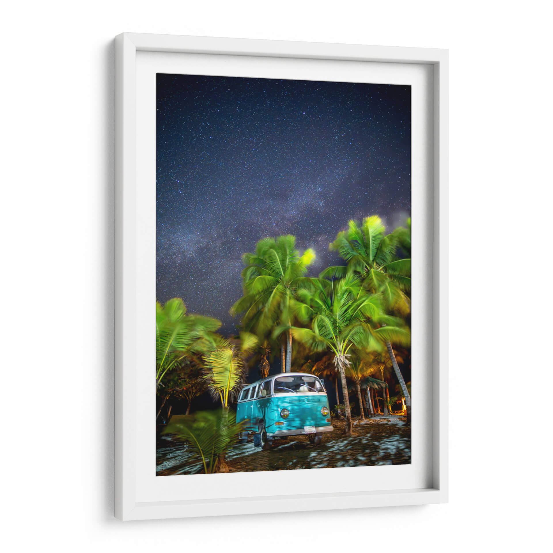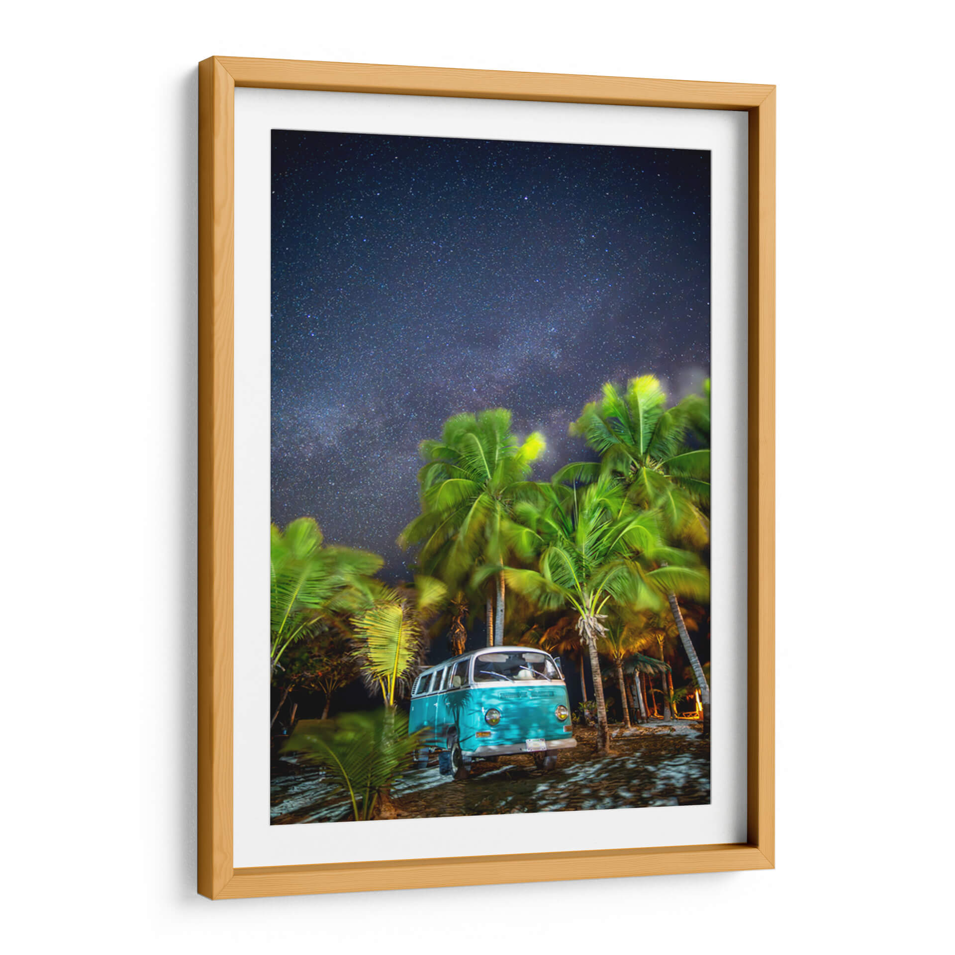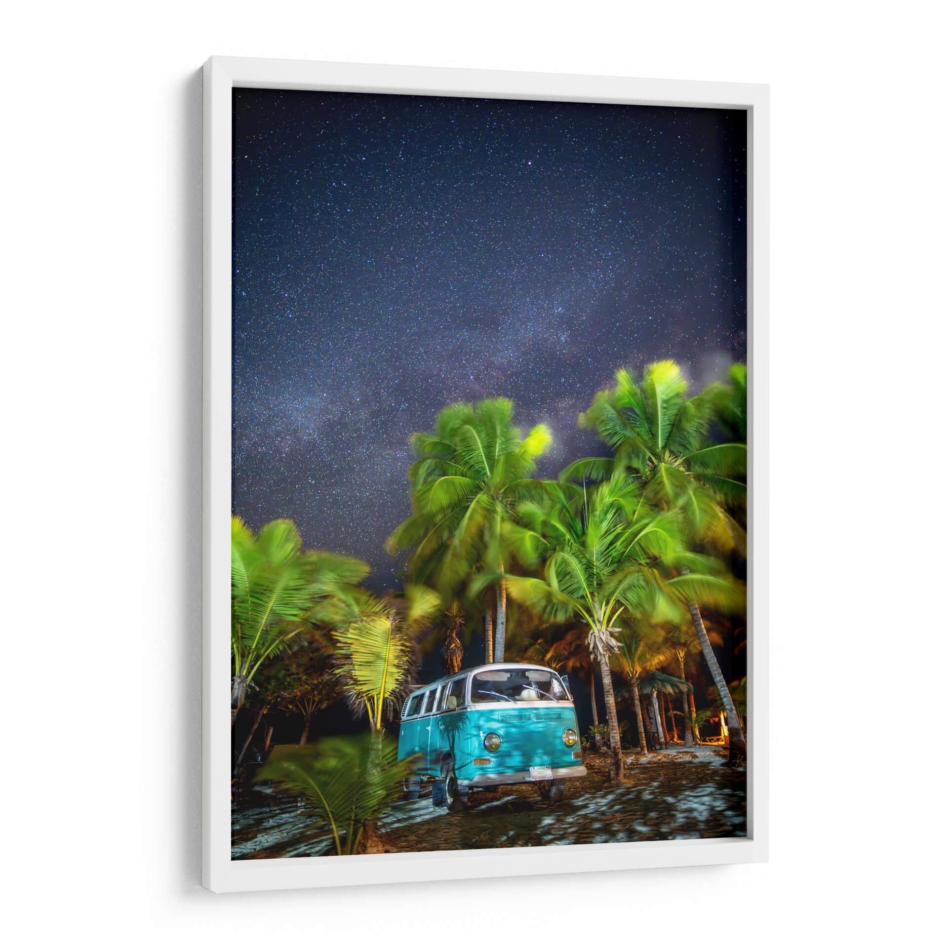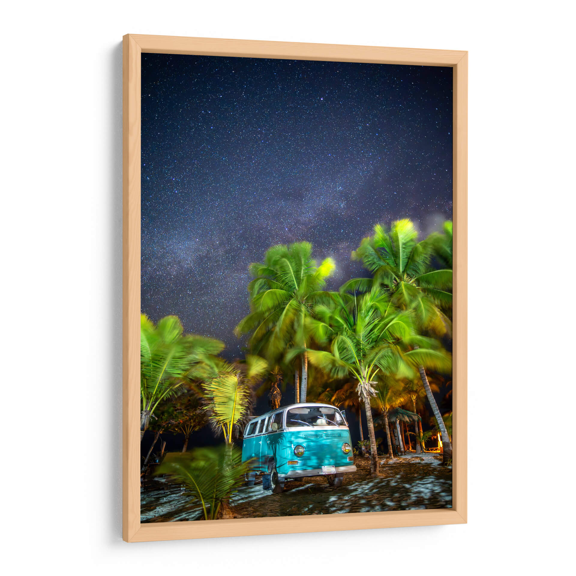 Sumérgete en la majestuosidad del cosmos con este cautivador cuadro decorativo, "Van de viajero con Vía Láctea de fondo", obra del artista Fernando Lopez. La pieza captura un momento de serenidad y aventura, donde una icónica furgoneta turquesa se detiene a contemplar la inmensidad de la Vía Láctea. El cielo nocturno, salpicado de innumerables estrellas y el resplandor lechoso de nuestra galaxia, crea un telón de fondo etéreo y asombroso. Rodeada por la exuberante vegetación de palmeras, cuya silueta se recorta contra la oscuridad, la furgoneta invita a la reflexión sobre los viajes, la libertad y la conexión con la naturaleza y el universo. Los vibrantes tonos verdes de las palmeras contrastan sutilmente con el azul profundo del cielo y el turquesa vintage del vehículo, generando una atmósfera envolvente y ligeramente nostálgica. Este cuadro decorativo es perfecto para añadir un toque de encanto bohemio y cósmico a tu sala de estar, dormitorio u oficina, inspirando sueños y escapadas. Ideal para amantes de los viajes, la astronomía y el arte contemporáneo que buscan una pieza única para embellecer su hogar.