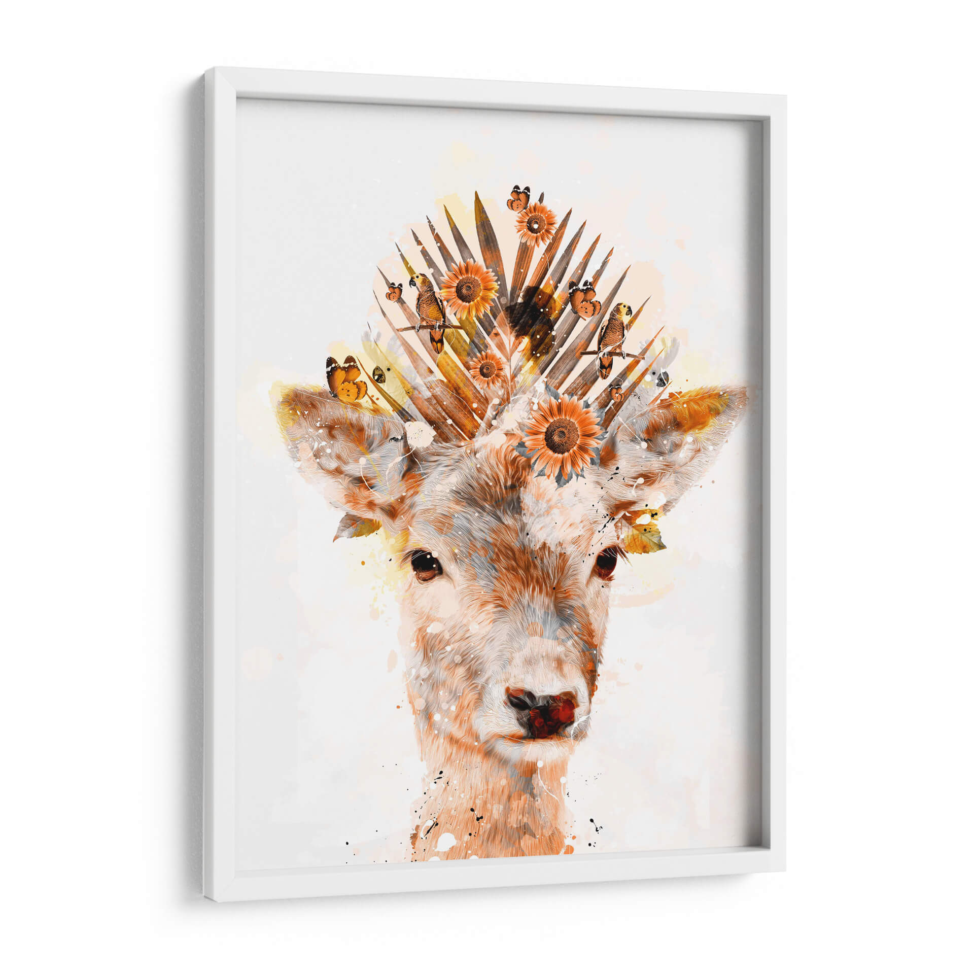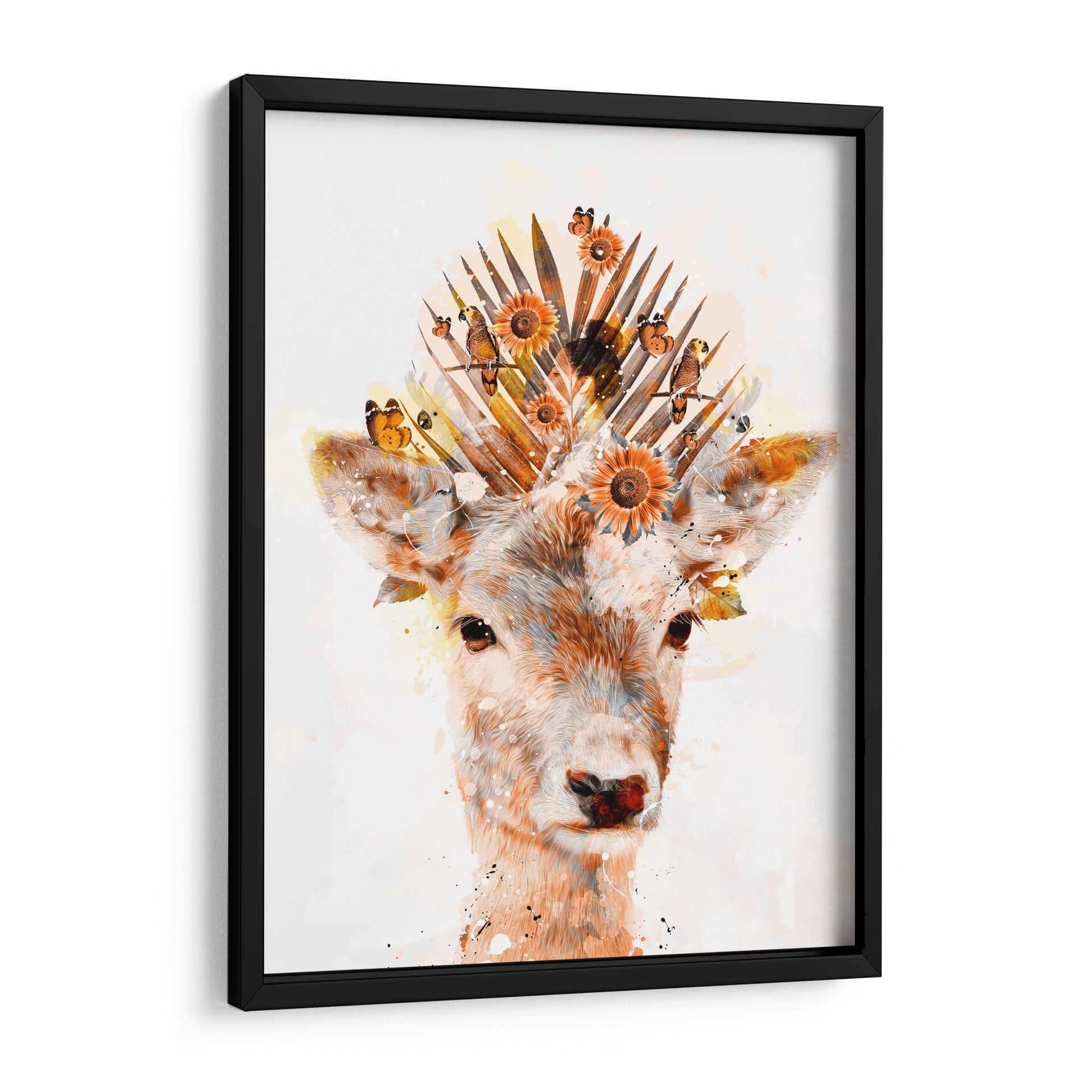 Sumérgete en la serena belleza de la naturaleza con nuestro cautivador cuadro decorativo "Venado, Aves y Flores". Esta obra maestra contemporánea presenta un retrato íntimo de un venado, adornado con una corona de hojas exóticas, girasoles vibrantes y delicadas mariposas revoloteando. La paleta de colores, dominada por tonos tierra cálidos y toques de naranja y amarillo, evoca una sensación de tranquilidad y conexión con el mundo natural. El estilo artístico, que fusiona elementos de acuarela y detalles intrincados, crea una atmósfera etérea y soñadora. Ideal para añadir un toque de encanto salvaje y serenidad a tu sala de estar, dormitorio o estudio, este cuadro decorativo es una pieza que inspira contemplación y admiración. Su composición equilibrada y la delicadeza de los elementos lo convierten en un punto focal que embellecerá cualquier espacio, aportando una dosis de naturaleza y arte único a tu hogar. Descubre la magia de la fauna y la flora representada con sensibilidad artística.