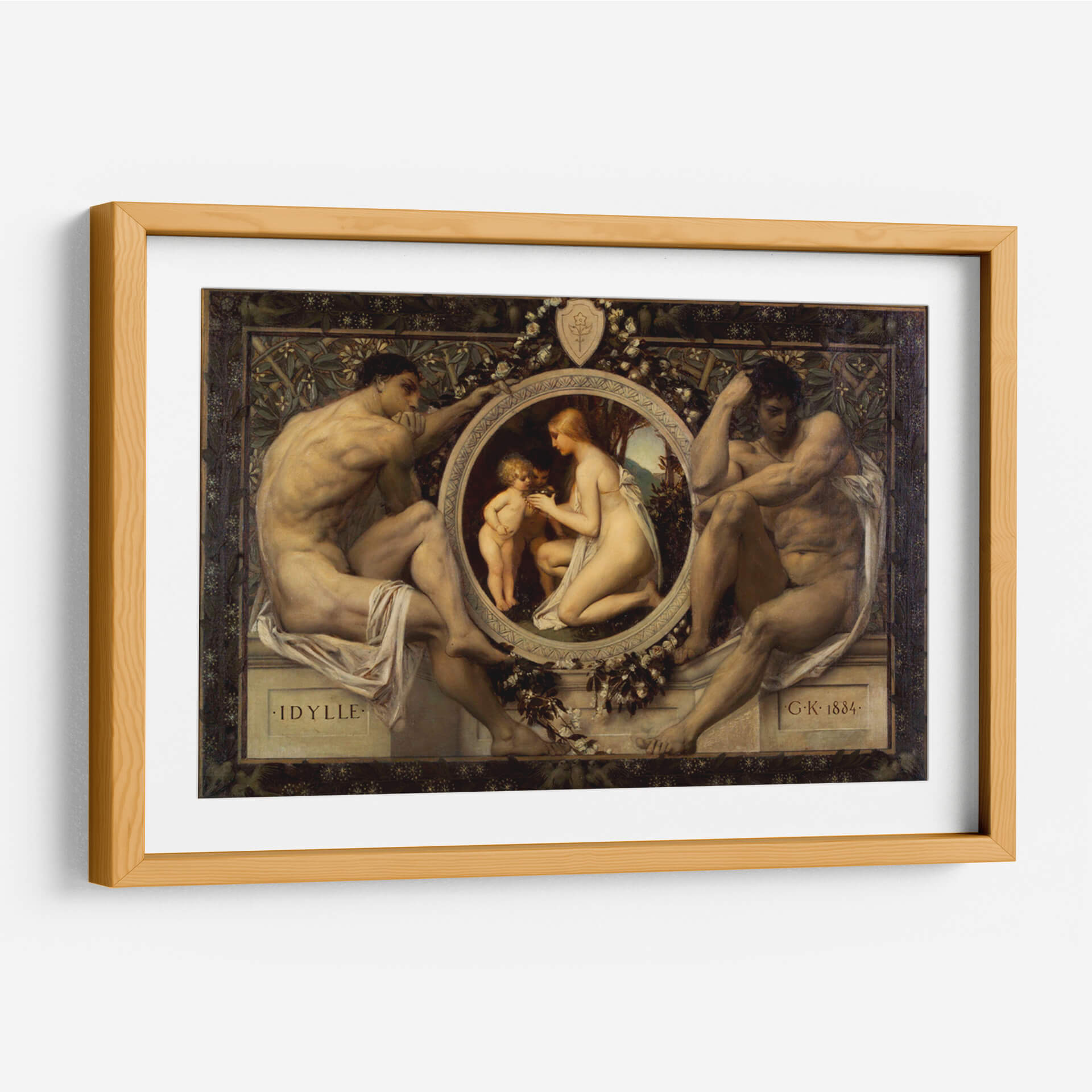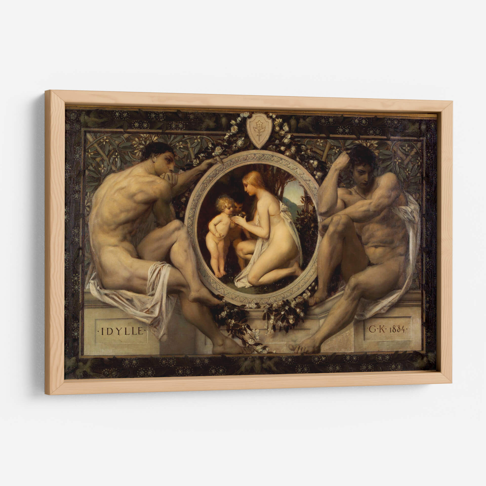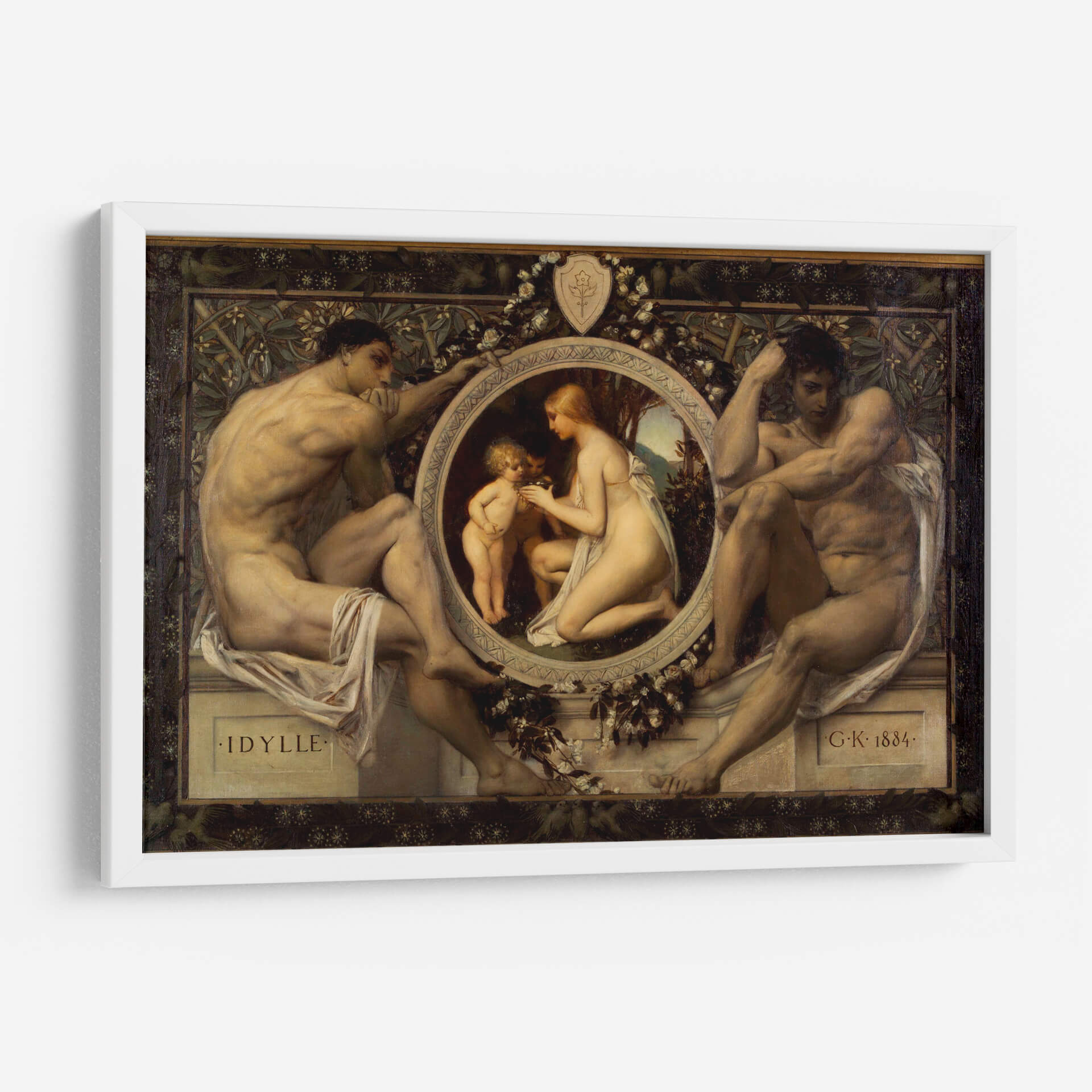 Sumérgete en la serenidad y la belleza atemporal de "Idilio", una obra maestra que captura la esencia de la conexión humana y la naturaleza. Este cuadro decorativo presenta una composición clásica con figuras masculinas robustas flanqueando un medallón central donde una mujer y un niño interactúan tiernamente, rodeados de motivos florales y vegetales. La paleta de colores, rica en tonos terrosos y pieles luminosas, aporta una calidez y profundidad inigualables, mientras que la detallada representación anatómica y la atmósfera evocadora transportan al espectador a un momento de paz idílica. Inspirado en el estilo simbolista, "Idilio" es una pieza que invita a la contemplación y añade un toque de sofisticación clásica a cualquier espacio. Perfecto para salones, estudios o dormitorios, este cuadro decorativo de Gustav Klimt es una adición exquisita para quienes aprecian el arte con profundidad emocional y estética refinada. Transforme su hogar en una galería personal con esta representación sublime de la armonía y la ternura.