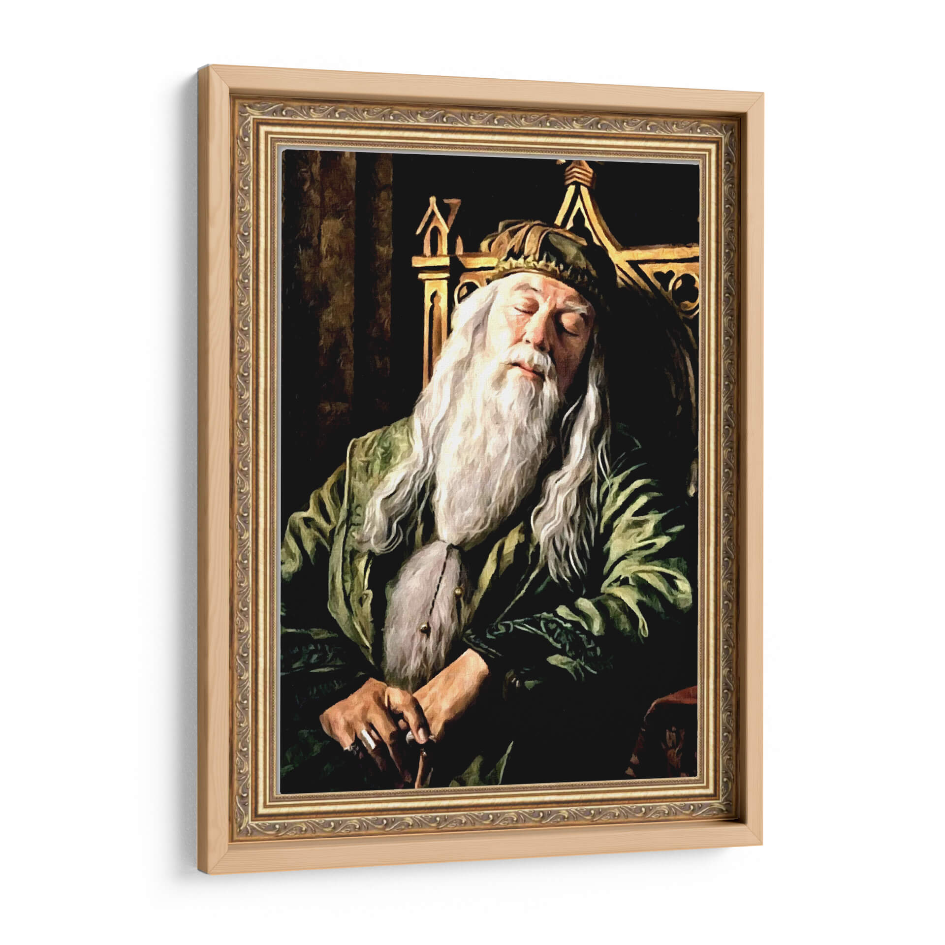 Sumérgete en la sabiduría y el misterio con este cautivador cuadro decorativo, una representación artística de Dumbledore, el icónico director de Hogwarts. La obra captura un momento de profunda reflexión, con el personaje principal retratado en un entorno que evoca solemnidad y poder. Los tonos verdes profundos de su vestimenta contrastan sutilmente con los detalles dorados y oscuros del fondo, creando una atmósfera rica y envolvente. La expresión serena del personaje, con los ojos cerrados, invita a la contemplación y añade una capa de profundidad emocional a la pieza. Este cuadro decorativo es perfecto para aquellos que aprecian la fantasía, la literatura clásica y el arte que cuenta una historia. Su estilo pictórico, con pinceladas visibles que aportan textura y vida, lo convierte en una adición sofisticada para cualquier estudio, biblioteca o sala de estar que busque un toque de carácter y distinción. Ideal para inspirar conversaciones y añadir un elemento de intriga a tu decoración.