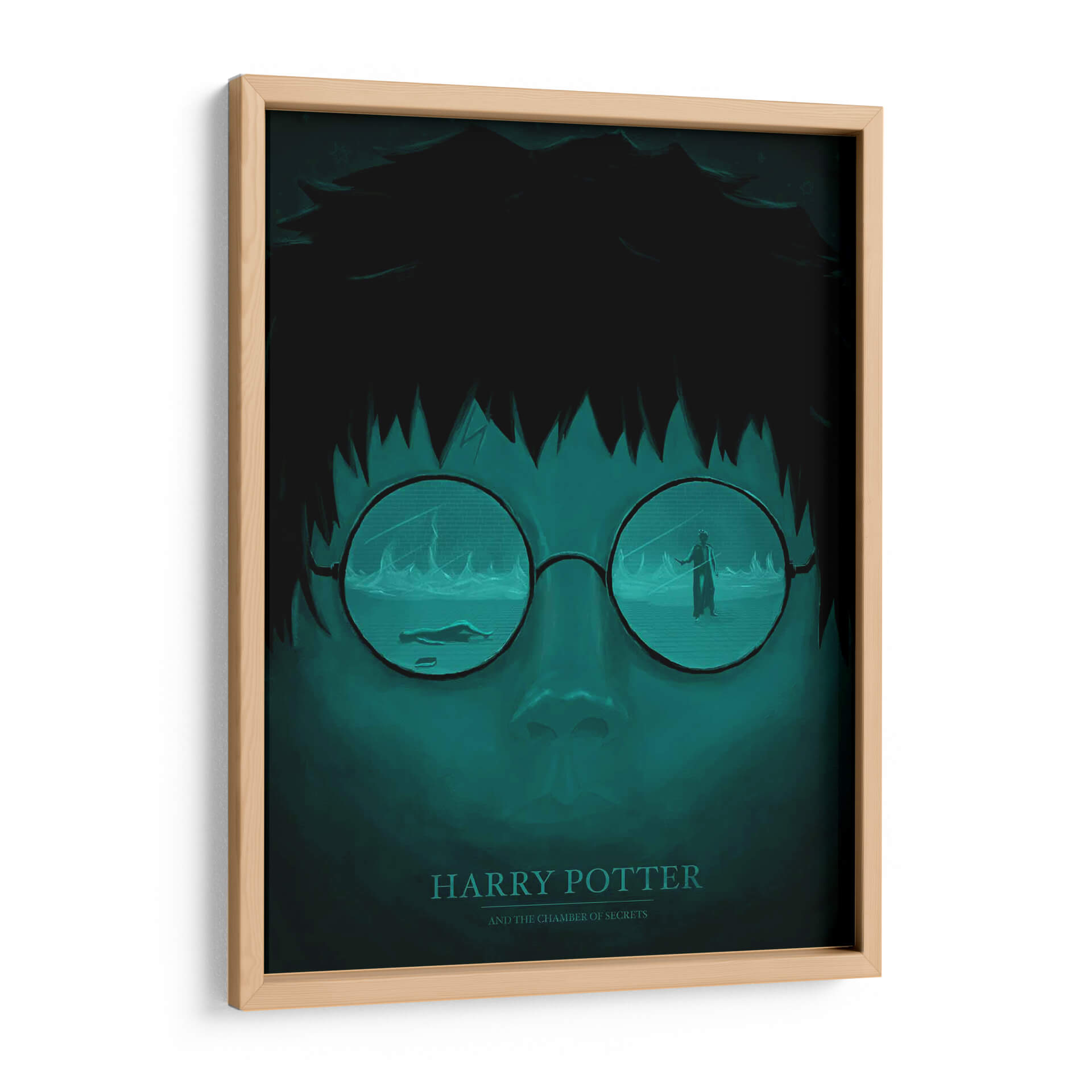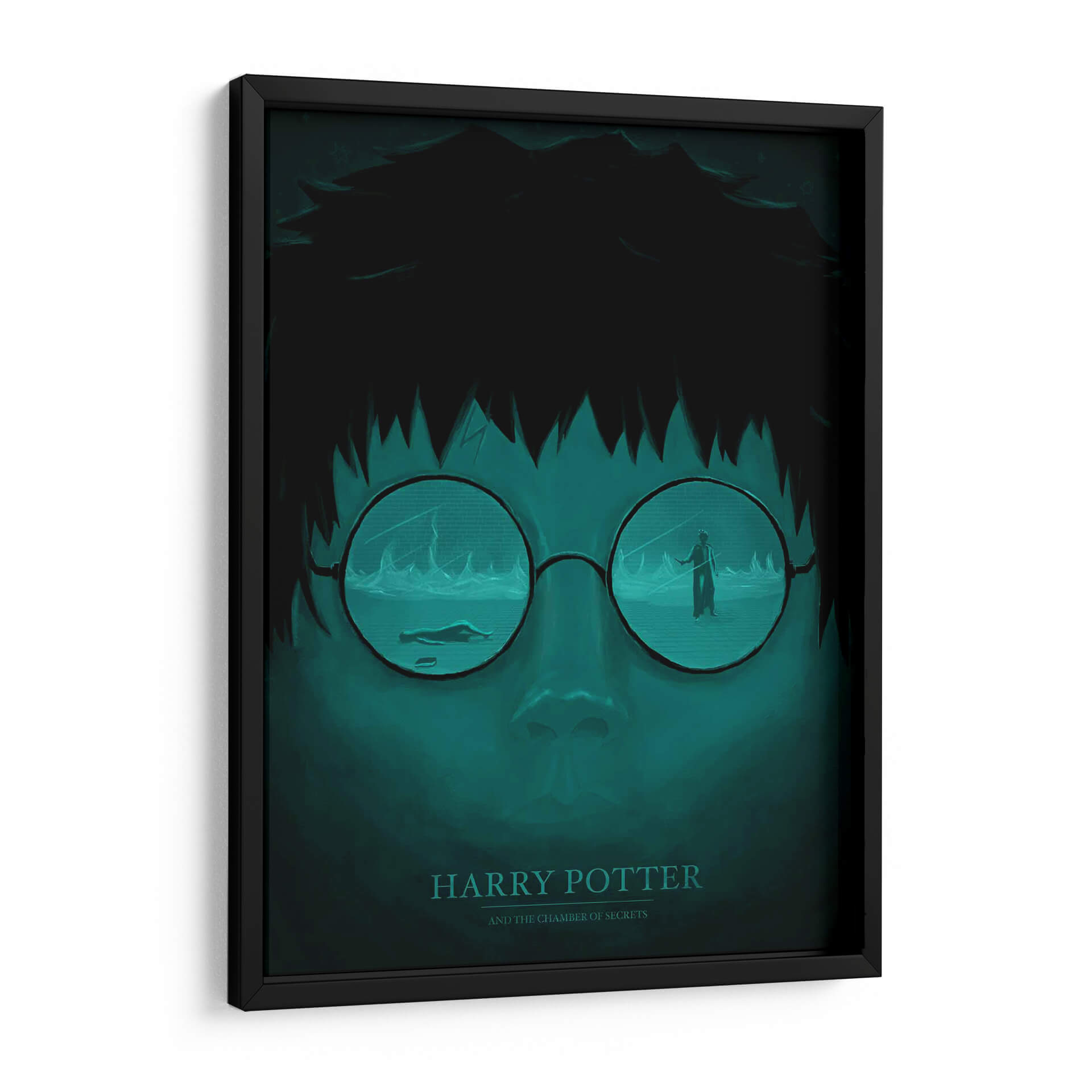 Sumérgete en el mundo mágico con este cautivador cuadro decorativo inspirado en "Harry Potter y la Cámara Secreta". La obra presenta un primer plano icónico del rostro de Harry Potter, con sus características gafas redondas que actúan como portales a escenas clave de la película. Los tonos profundos de verde azulado y negro crean una atmósfera de misterio y aventura, perfecta para evocar la emoción de la saga. Dentro de las lentes, se vislumbra la emblemática escena de la Cámara de los Secretos, con Harry en acción y las huellas del peligro. Esta pieza es ideal para cualquier fanático de Harry Potter que desee añadir un toque de fantasía y nostalgia a su hogar u oficina. Su diseño estilizado y evocador la convierte en un punto focal intrigante para salas de estar, estudios o dormitorios, invitando a la reflexión y a revivir los momentos más emocionantes del joven mago. Añade un toque de magia a tu decoración con este imprescindible cuadro decorativo de pared que captura la esencia de la aventura y el misterio.