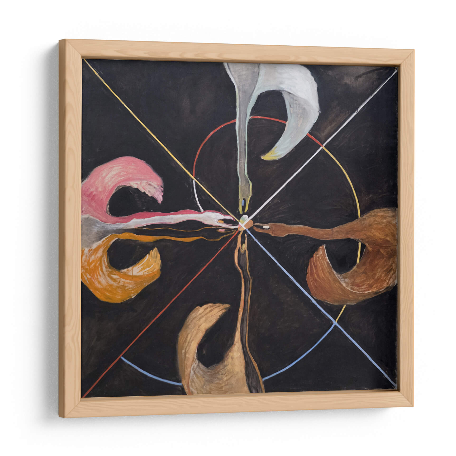 Sumérgete en la enigmática belleza de "Grupo IX-SUW, El cisne, No. 7", una obra maestra abstracta del renombrado artista Hilma af Klint. Este cuadro decorativo, con su profunda paleta de colores y composición dinámica, es una invitación a la contemplación. Las líneas fluidas y las formas orgánicas se entrelazan en un fondo oscuro, creando una sensación de misterio y movimiento etéreo. Los sutiles toques de color, desde el suave rosa y naranja hasta el blanco cremoso y tonos terrosos, añaden profundidad y complejidad a la pieza, evocando una atmósfera de calma introspectiva y conexión espiritual. "El cisne, No. 7" es más que una simple decoración de pared; es una ventana a un universo interior, ideal para espacios que buscan un toque de sofisticación y profundidad emocional. Ya sea en tu sala de estar, estudio u oficina, este lienzo abstracto transformará tu entorno, invitando a la reflexión y al asombro. Su diseño cautivador lo convierte en un punto focal perfecto para cualquier decoración contemporánea o ecléctica.