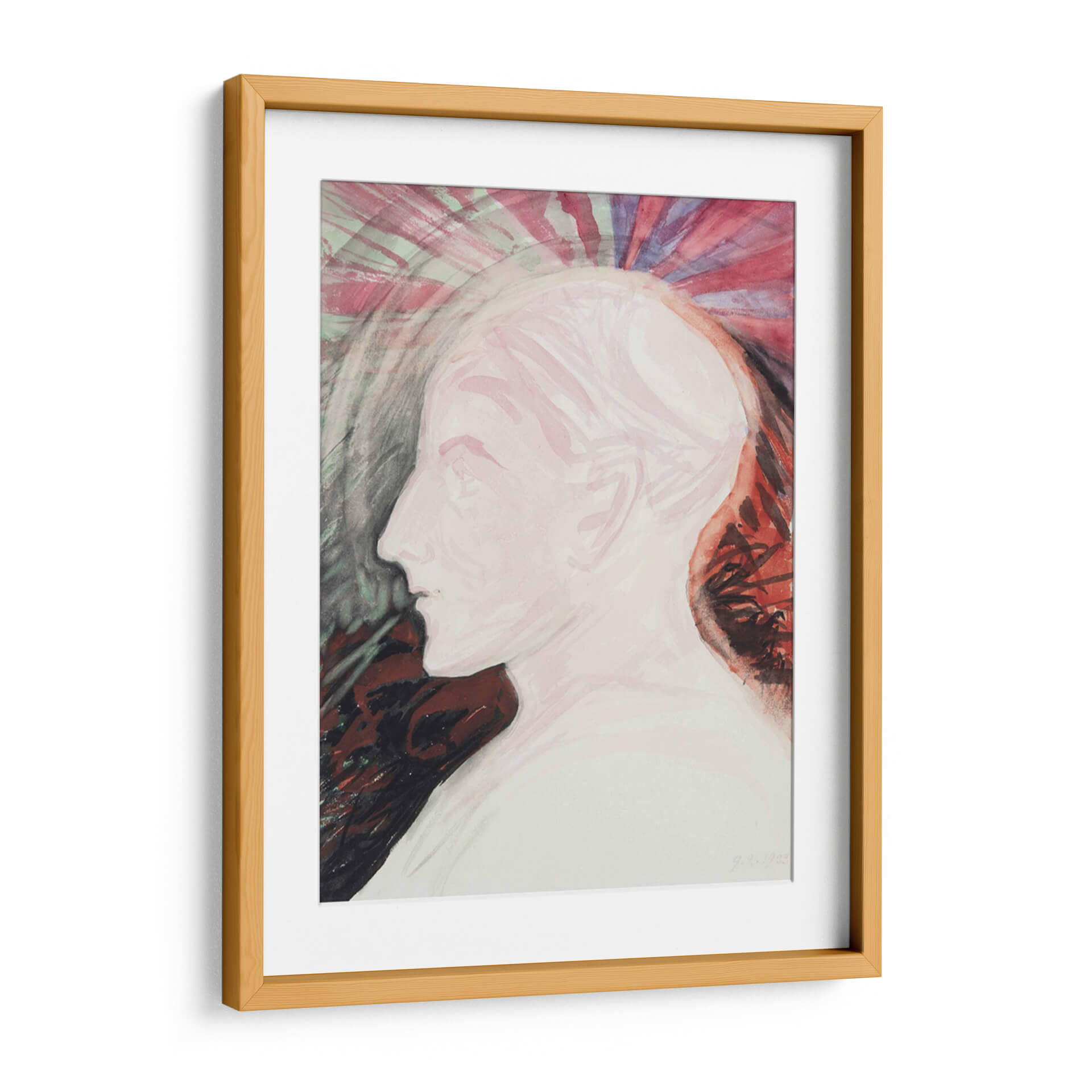 Sumérgete en la etérea belleza de este cuadro decorativo, una obra que captura la esencia de la introspección y la espiritualidad. La pieza presenta el perfil de una figura femenina, representada con trazos suaves y una paleta de colores dominada por tonos pálidos y rosados, que evocan una sensación de calma y serenidad. Un halo radiante de colores vibrantes, que van desde el rojo intenso hasta el púrpura y el verde menta, emana desde la cabeza, sugiriendo un despertar espiritual o una profunda conexión interna. El fondo, con sus contrastes oscuros y texturas sugerentes, añade profundidad y misterio a la composición. Este cuadro abstracto es ideal para crear un ambiente de meditación en tu estudio, aportar un toque de elegancia serena a tu dormitorio o servir como un punto de conversación intrigante en tu sala de estar. Su estilo único, que recuerda a las visiones místicas del arte espiritual, invita a la contemplación y eleva el espíritu. Añade esta pieza inspiradora a tu colección de arte de pared y transforma tu espacio en un santuario de paz y belleza. Es una obra que dialoga con el alma, perfecta para quienes buscan significado y conexión en su entorno.