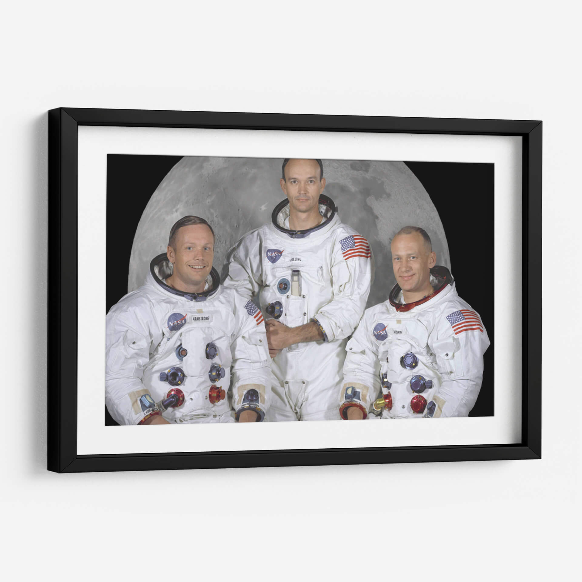 Este cuadro decorativo captura un momento icónico de la exploración espacial, presentando a los astronautas Neil Armstrong, Michael Collins y Buzz Aldrin. La composición muestra a los tres héroes espaciales con sus trajes de astronauta, luciendo orgullosamente la bandera estadounidense y los emblemas de la NASA. Detrás de ellos, la luna se cierne como un telón de fondo majestuoso, añadiendo una dimensión de grandeza y aventura a la pieza. La paleta de colores se centra en los blancos de los trajes, el gris sutil de la luna y el negro profundo del espacio, creando un contraste visual impactante y una atmósfera de seriedad y logro. Este cuadro es perfecto para los entusiastas del espacio, la historia o para aquellos que buscan inspirar un sentido de ambición y descubrimiento en sus espacios. Ideal para salas de estar, oficinas o cualquier lugar donde se desee un toque de historia y heroísmo moderno. Añade una pieza de conversación que celebre uno de los mayores hitos de la humanidad.