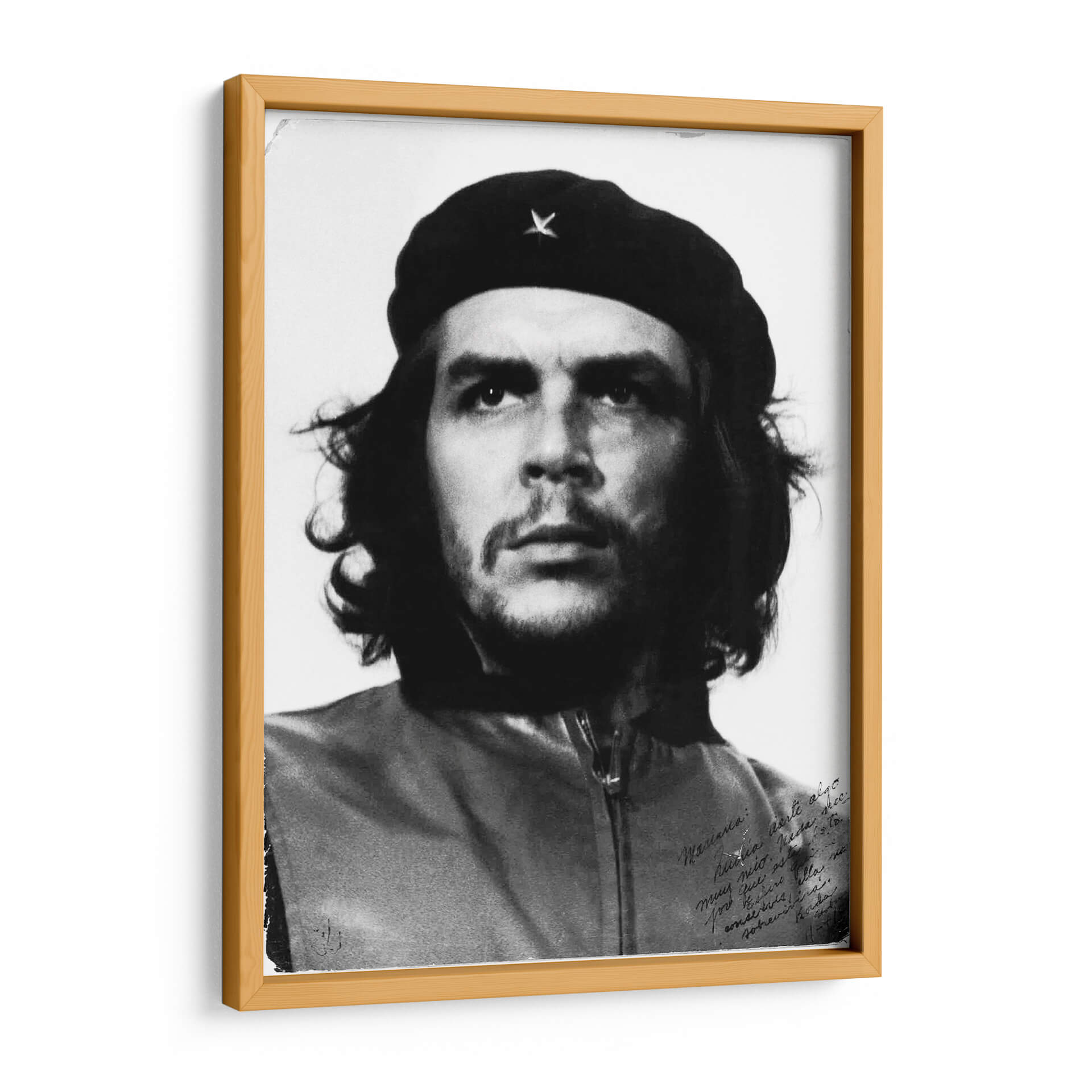 Transforma tu espacio con este icónico cuadro decorativo del Che Guevara, una obra que evoca poder, idealismo y un espíritu revolucionario inquebrantable. Capturando la intensidad de la figura histórica, este retrato en blanco y negro destaca por su poderosa composición y el carisma innegable del sujeto. La imagen, con su iluminación dramática y los profundos contrastes, crea una atmósfera de reflexión y admiración. La boina con la estrella y la mirada penetrante del Che son elementos centrales que confieren a la pieza una fuerte carga simbólica, ideal para inspirar y generar conversación. Este cuadro decorativo es perfecto para salones, estudios u oficinas, aportando un toque de carácter y audacia a cualquier ambiente. Su diseño atemporal lo convierte en una adición versátil a decoraciones modernas, industriales o incluso clásicas, funcionando como un punto focal que no pasará desapercibido. Añade una dosis de historia y conciencia social a tu hogar o lugar de trabajo con esta representación artística que trasciende el tiempo, resonando con quienes valoran la figura y el legado del Che Guevara.