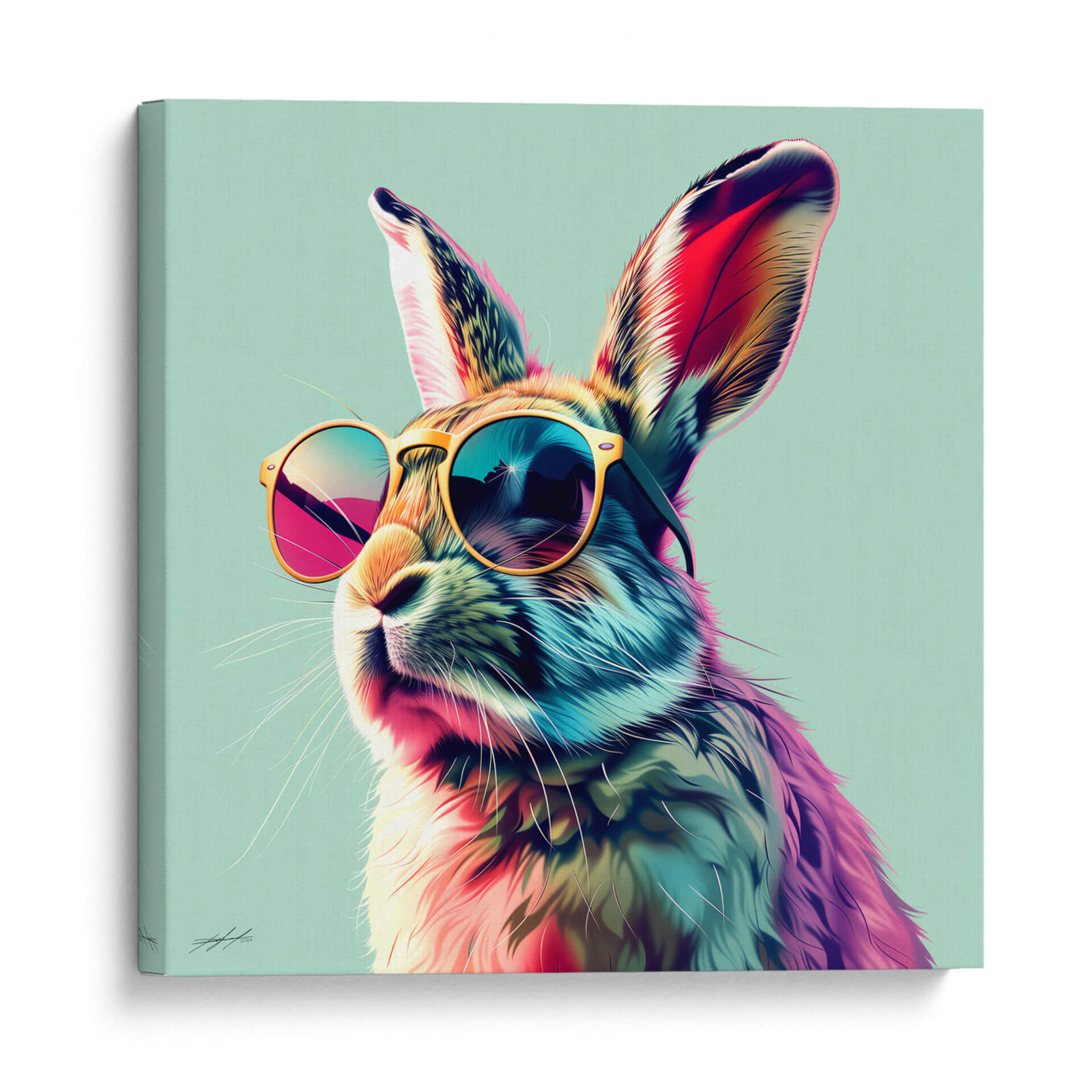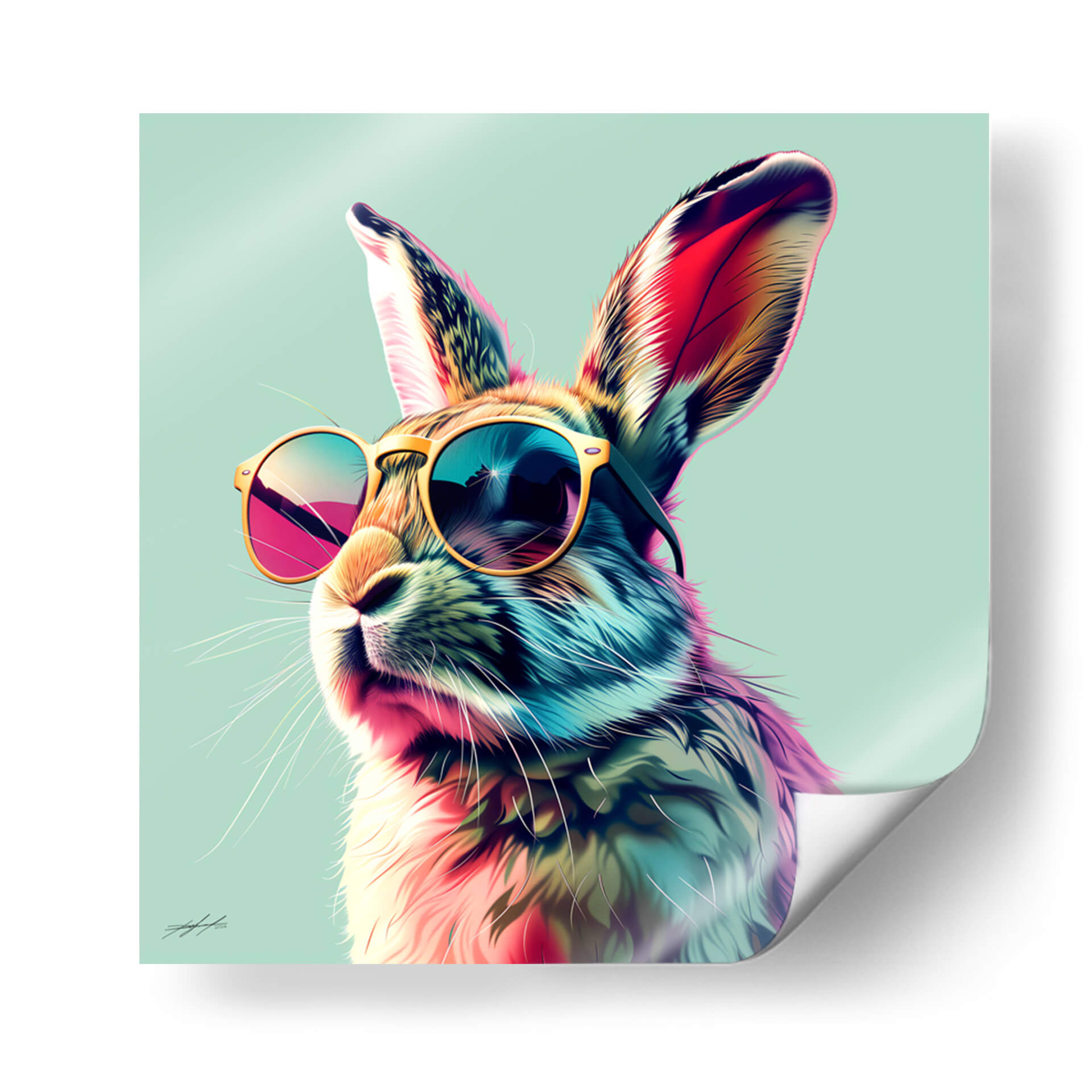 Aporta un toque de color y personalidad a tu espacio con "Animales Veraniegos - Conejo", una obra de arte digital vibrante y llena de vida. Este cuadro decorativo presenta un conejo con gafas de sol, capturado en un estilo pop art moderno que irradia alegría y un aire despreocupado. La paleta de colores es audaz y ecléctica, con vibrantes tonos de rosa, azul, amarillo y naranja que contrastan maravillosamente sobre un fondo de aguamarina suave. La técnica digital resalta la textura del pelaje y los reflejos en las gafas, creando una pieza visualmente impactante. Ideal para quienes buscan inyectar energía y un toque lúdico en su hogar u oficina, este cuadro es perfecto para salones, estudios o habitaciones juveniles. "Animales Veraniegos - Conejo" no es solo una decoración, es una declaración de estilo que evoca la despreocupación del verano y la individualidad. Su composición centrada y el carismático sujeto lo convierten en un punto focal instantáneo, capaz de transformar cualquier ambiente en un lugar más alegre y moderno. Añade esta pieza única a tu colección y deja que su carisma ilumine tu día a día.