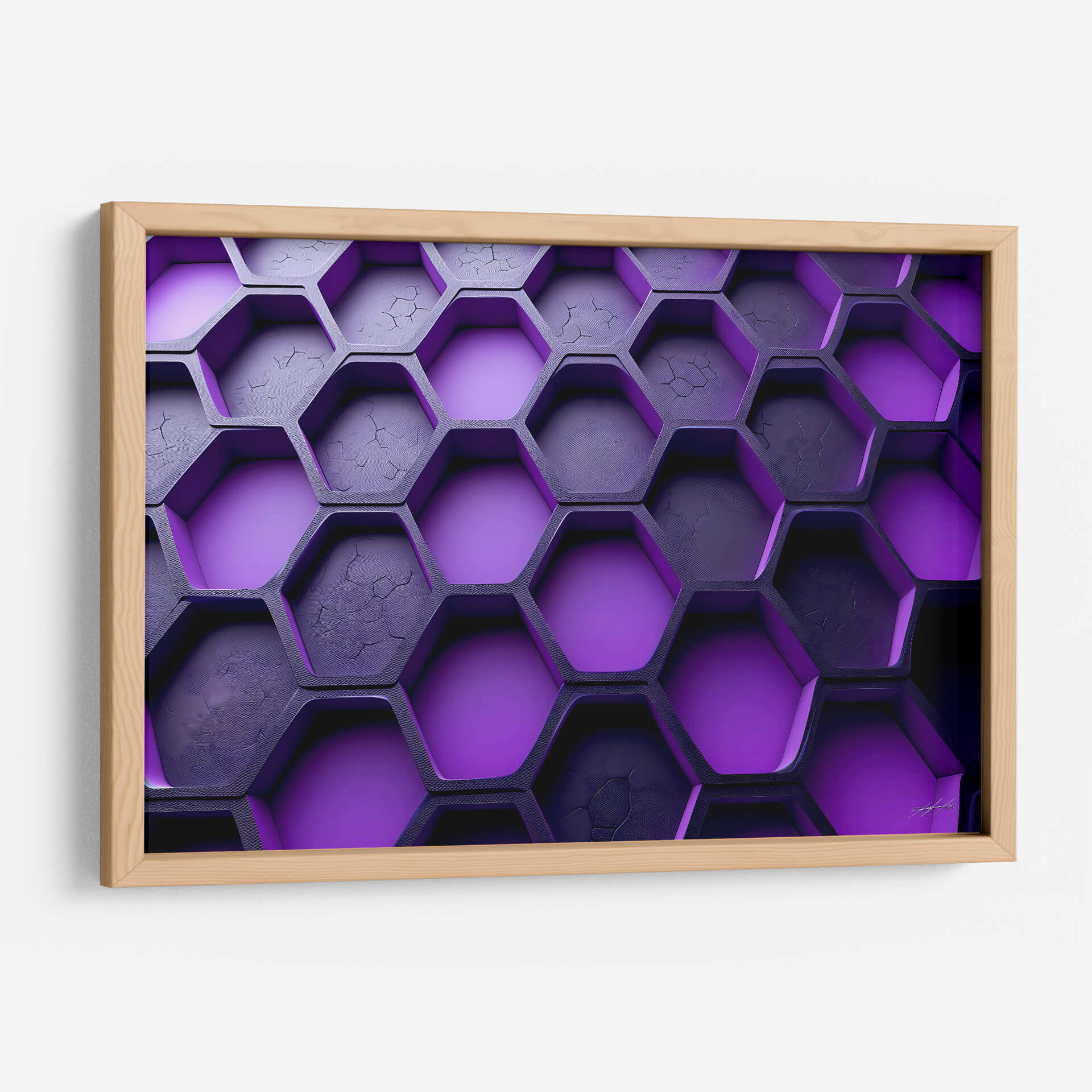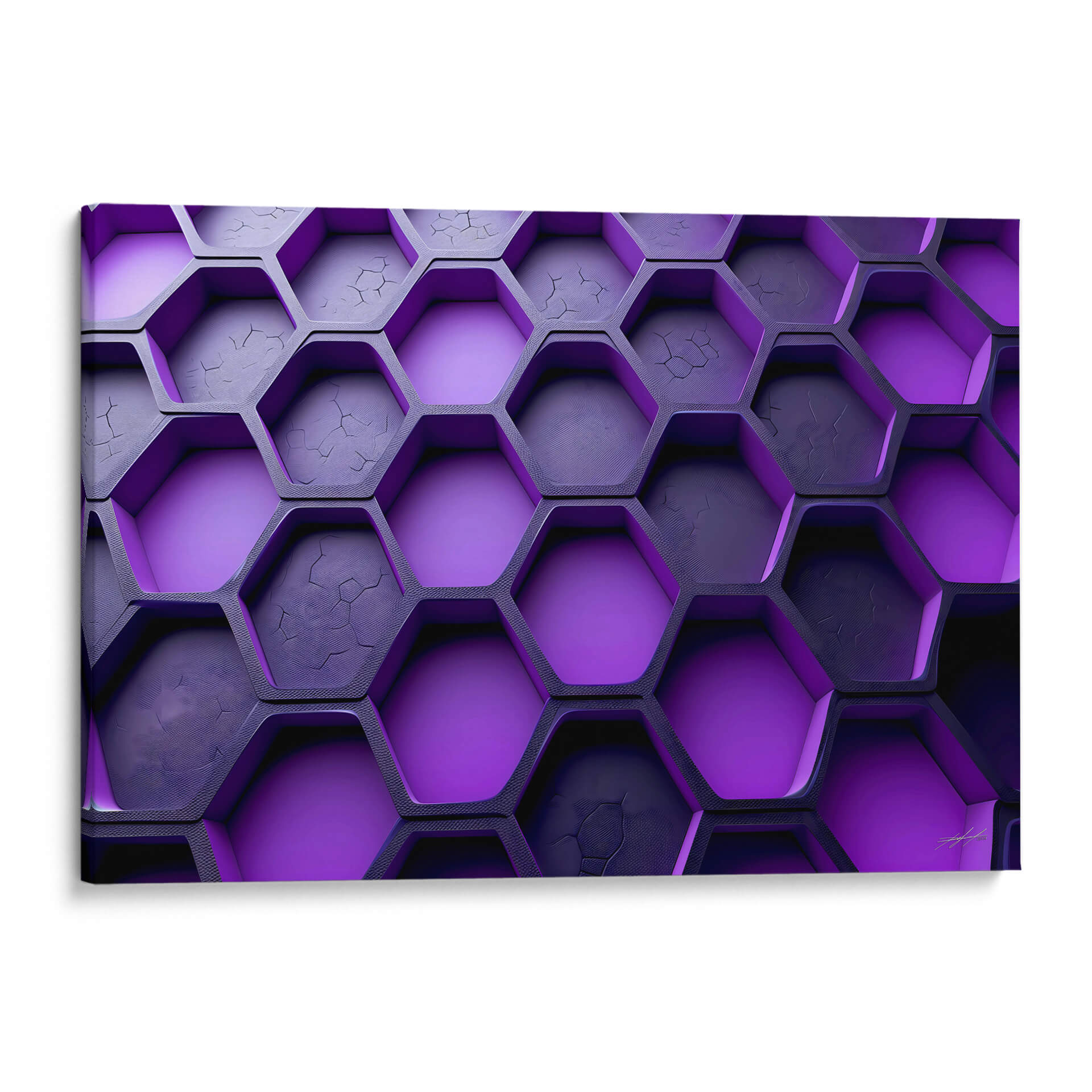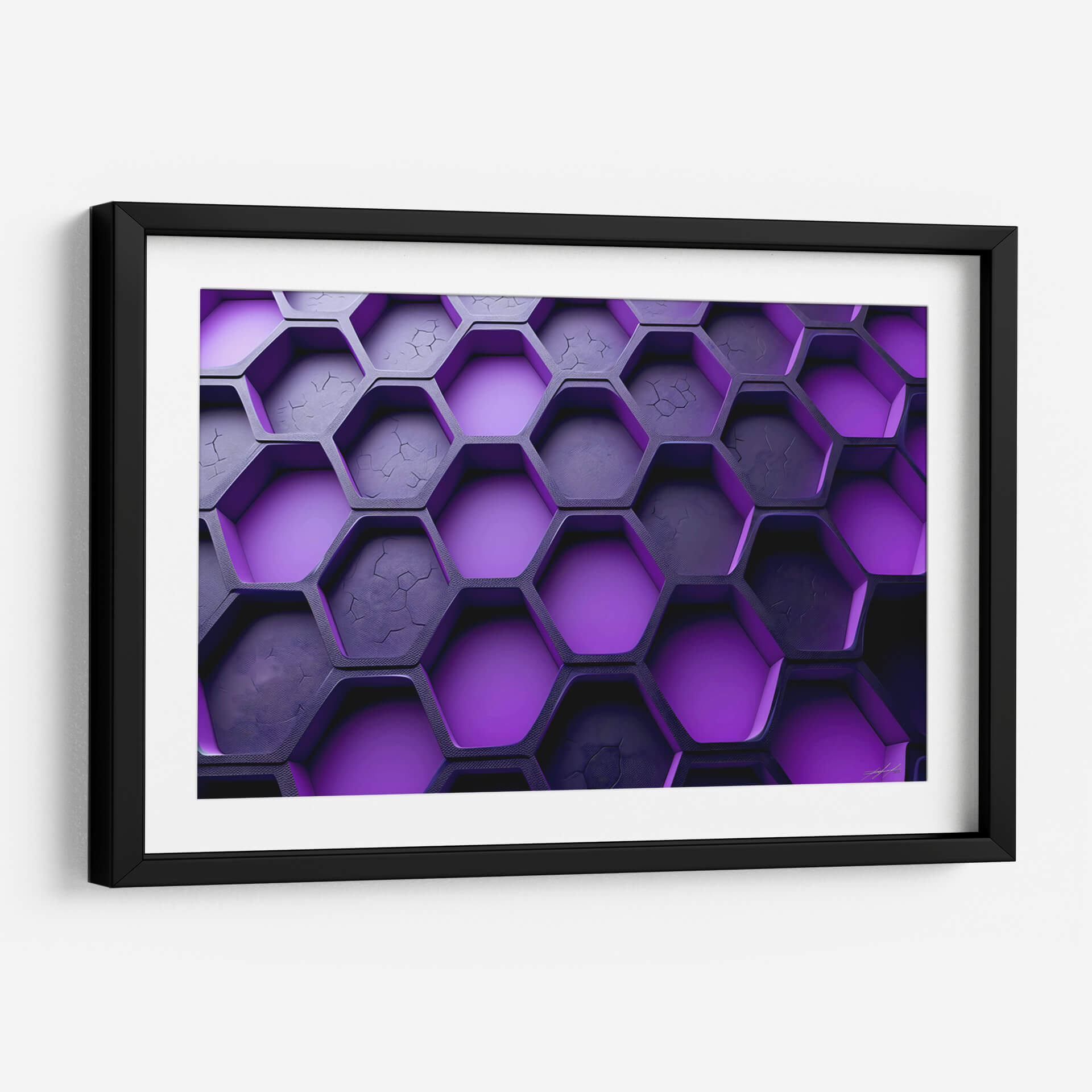 Sumérgete en la fascinante estructura geométrica de "B-HIVE - 10", una obra de arte digital que redefine la estética contemporánea. Este cuadro decorativo presenta un patrón hipnótico de hexágonos interconectados, creando una ilusión de profundidad y movimiento que cautiva la mirada. Los tonos vibrantes de púrpura y azul profundo se entrelazan, generando una atmósfera dinámica y moderna. La textura sutilmente agrietada en algunas de las superficies de los hexágonos añade un toque de intriga y sofisticación, contrastando maravillosamente con los contornos limpios y definidos. "B-HIVE - 10" es una pieza audaz y contemporánea, ideal para quienes buscan un punto focal en su sala de estar, un toque de energía en su oficina o un elemento de diseño vanguardista en cualquier espacio. Su composición abstracta y su paleta de colores audaz la convierten en una elección perfecta para interiores modernos y minimalistas, añadiendo carácter y una dimensión visual única a la decoración de tu hogar o lugar de trabajo.