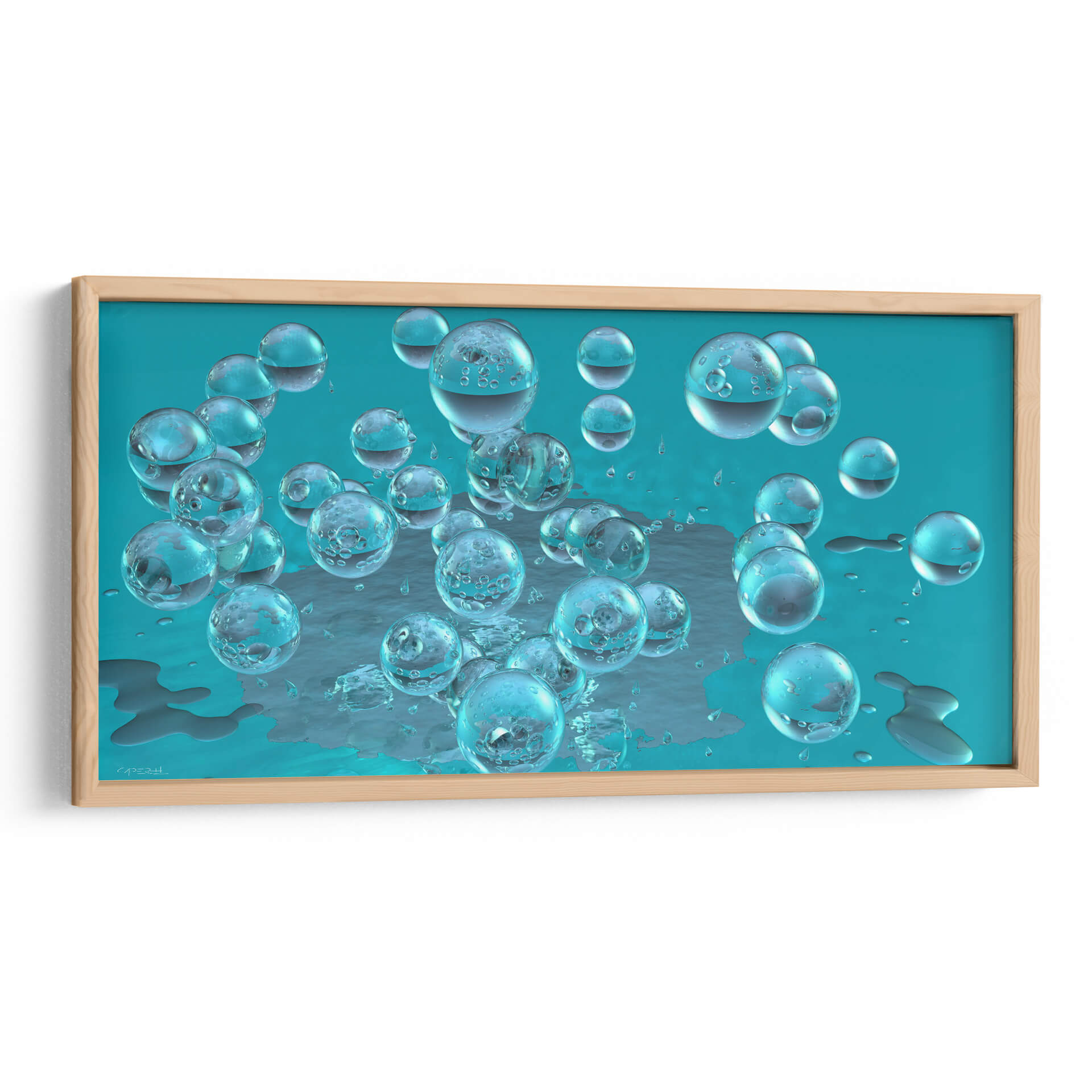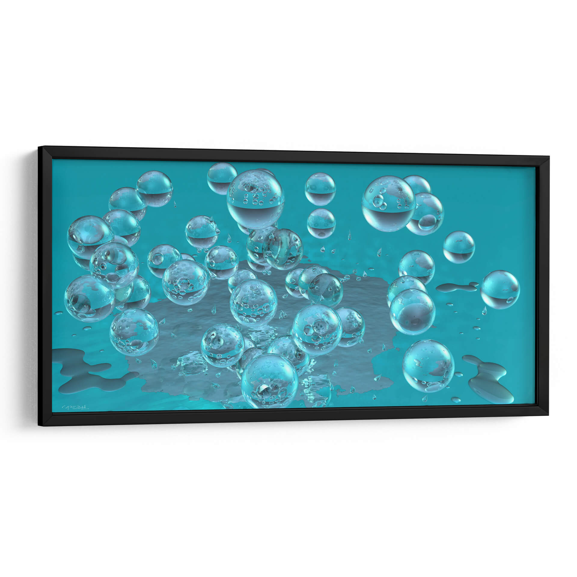 Sumérgete en la serenidad y la frescura con "Burbujas de agua", una obra de arte digital que captura la esencia etérea de las gotas de agua en suspensión. Los tonos de azul turquesa crean un fondo vibrante y a la vez calmante, mientras que las esferas transparentes, llenas de detalles internos y reflejos sutiles, invitan a la contemplación. Cada burbuja es un microcosmos de luz y claridad, sugiriendo pureza y movimiento. La composición, con su dispersión orgánica de elementos, evoca una sensación de ligereza y fluidez, perfecta para añadir un toque de modernidad y tranquilidad a cualquier espacio. Este cuadro decorativo es ideal para salas de estar, oficinas o dormitorios donde se busca una atmósfera de paz y sofisticación. Su estilo abstracto y contemporáneo lo convierte en una pieza versátil que complementará una amplia gama de estilos de decoración, desde minimalista hasta escandinavo. Deja que "Burbujas de agua" transforme tu hogar en un oasis de calma visual, aportando un soplo de aire fresco y naturalidad a tu día a día.