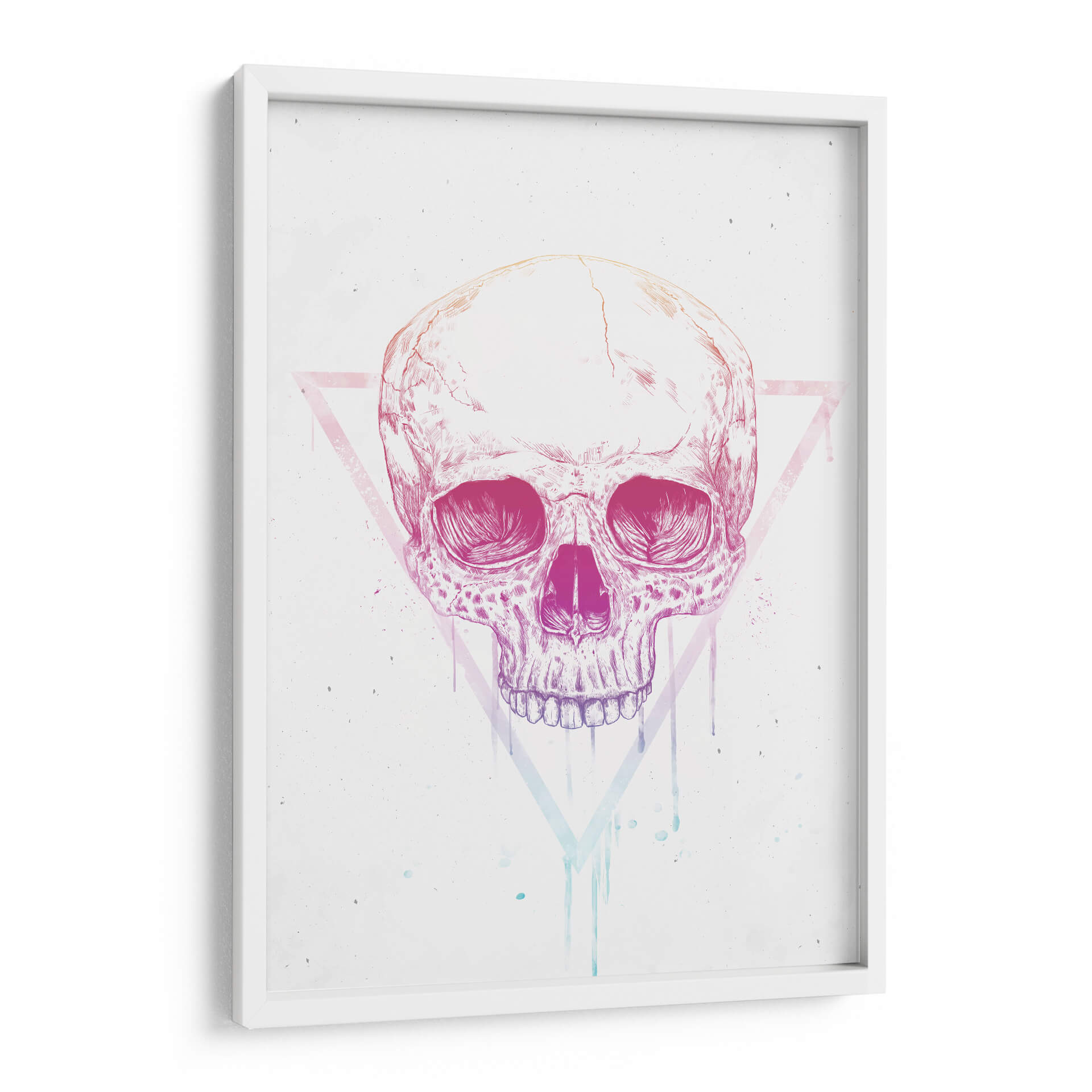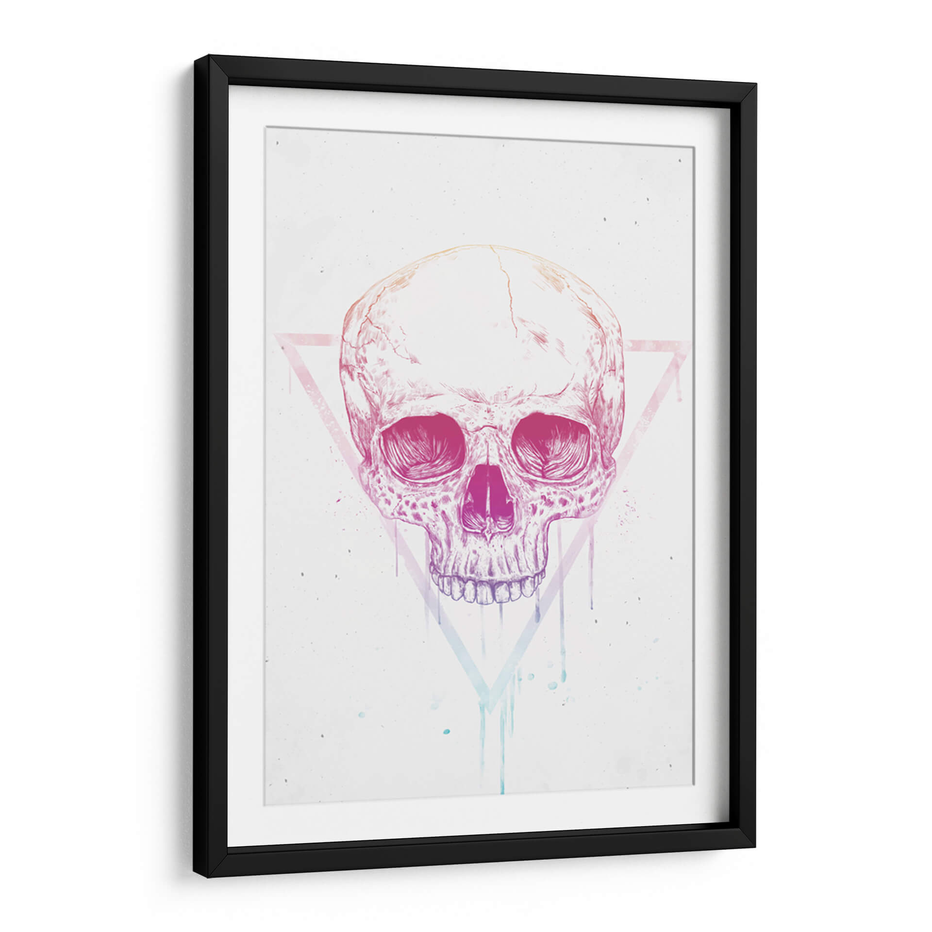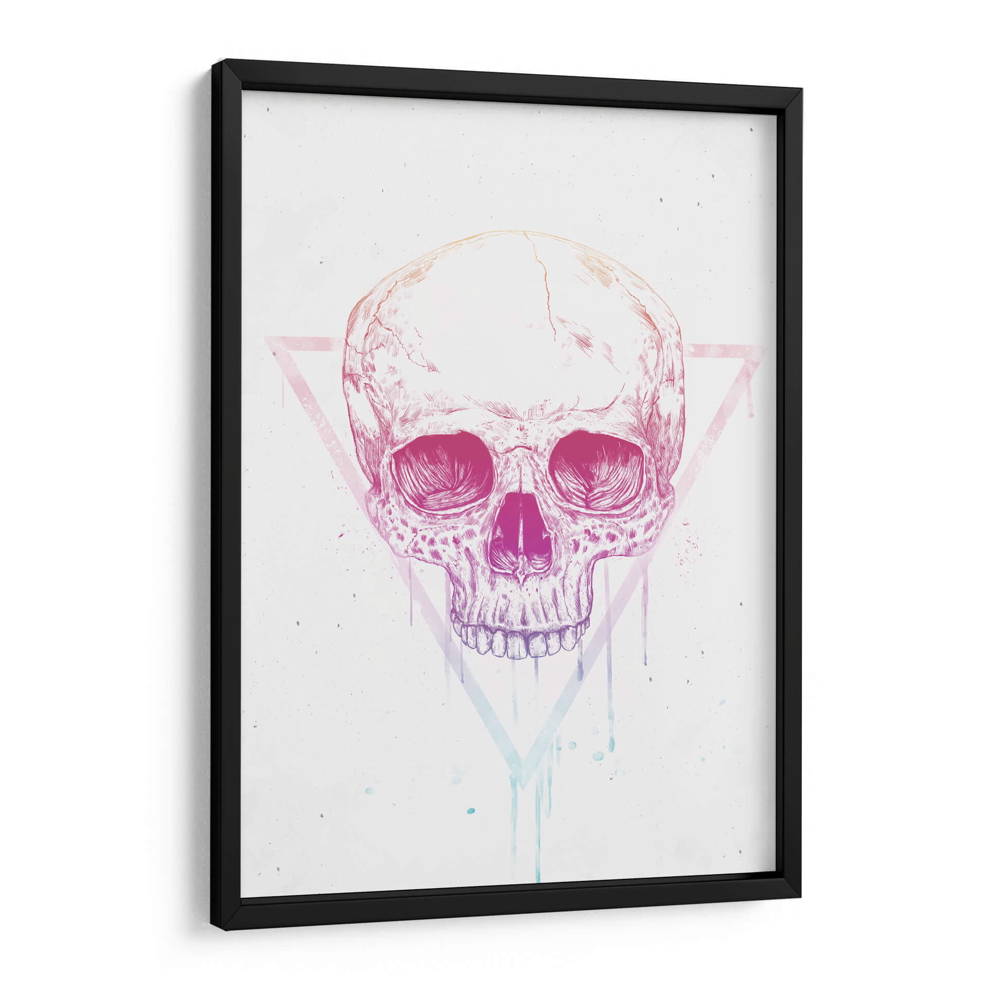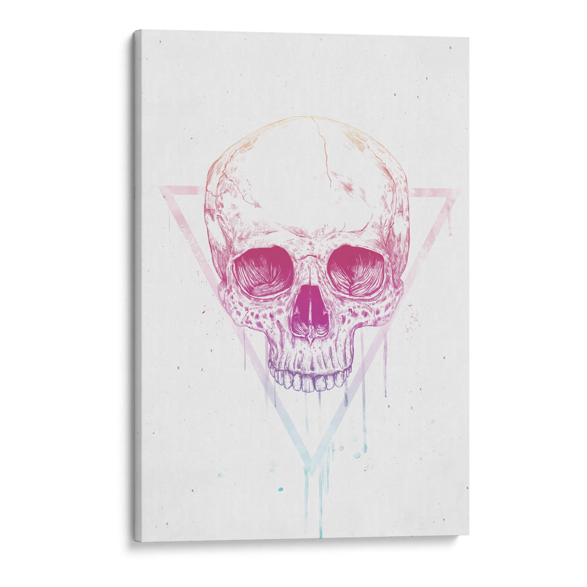 Introduce un toque de misterio y arte contemporáneo en tu espacio con este impactante cuadro decorativo "Cráneo en un triángulo" del artista Balazs Solti. La obra presenta un detallado cráneo dibujado a mano, cuya estructura ósea se fusiona con una paleta de colores vibrantes y degradados que van desde el fucsia intenso hasta tonos morados y celestes sutiles. El cráneo está enmarcado dentro de un triángulo geométrico, un elemento que aporta una sensación de orden y modernidad a la pieza, contrastando con la organicidad del sujeto. Las salpicaduras y goteos de pintura que emanan del triángulo sugieren una fusión de lo orgánico y lo abstracto, creando una dinámica visual única. Este cuadro es ideal para aquellos que buscan una pieza de arte audaz y llena de carácter, perfecta para salas de estar modernas, estudios creativos u oficinas que deseen reflejar una estética vanguardista. Su composición central y el uso de colores contrastantes lo convierten en un punto focal que invita a la reflexión y la conversación. Añade un elemento distintivo y lleno de personalidad a tu decoración.
