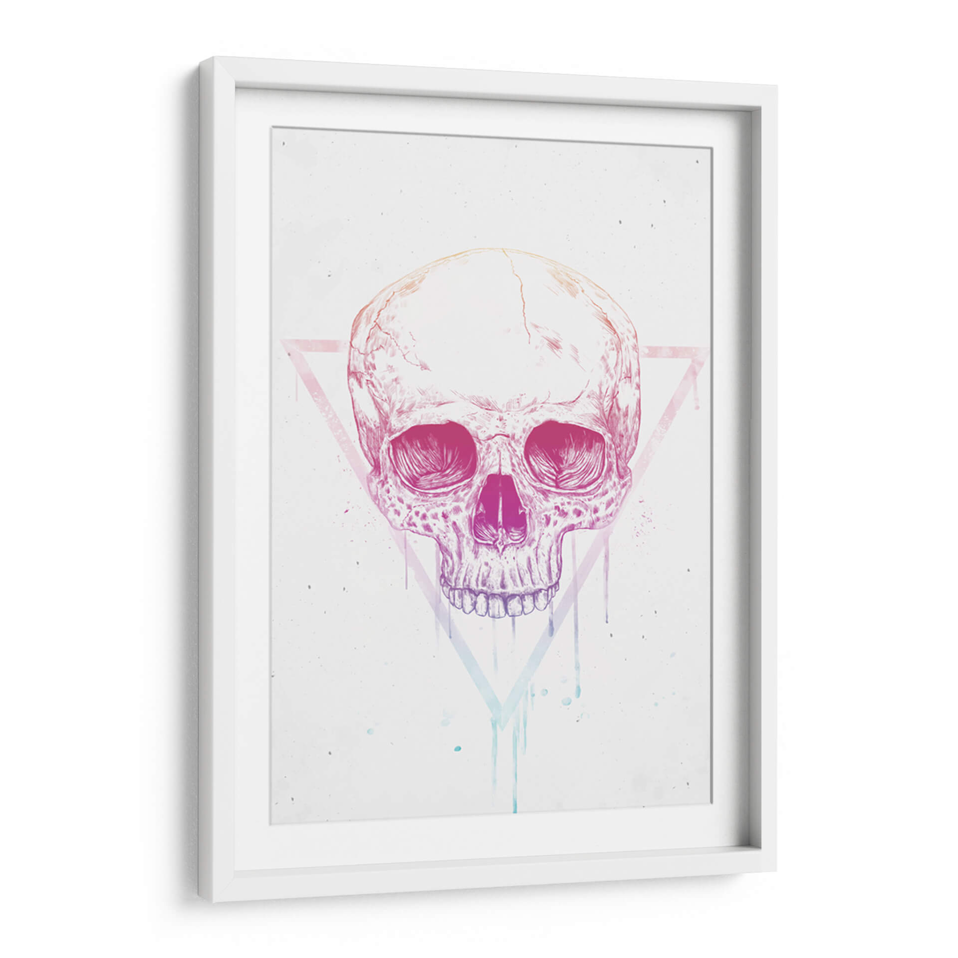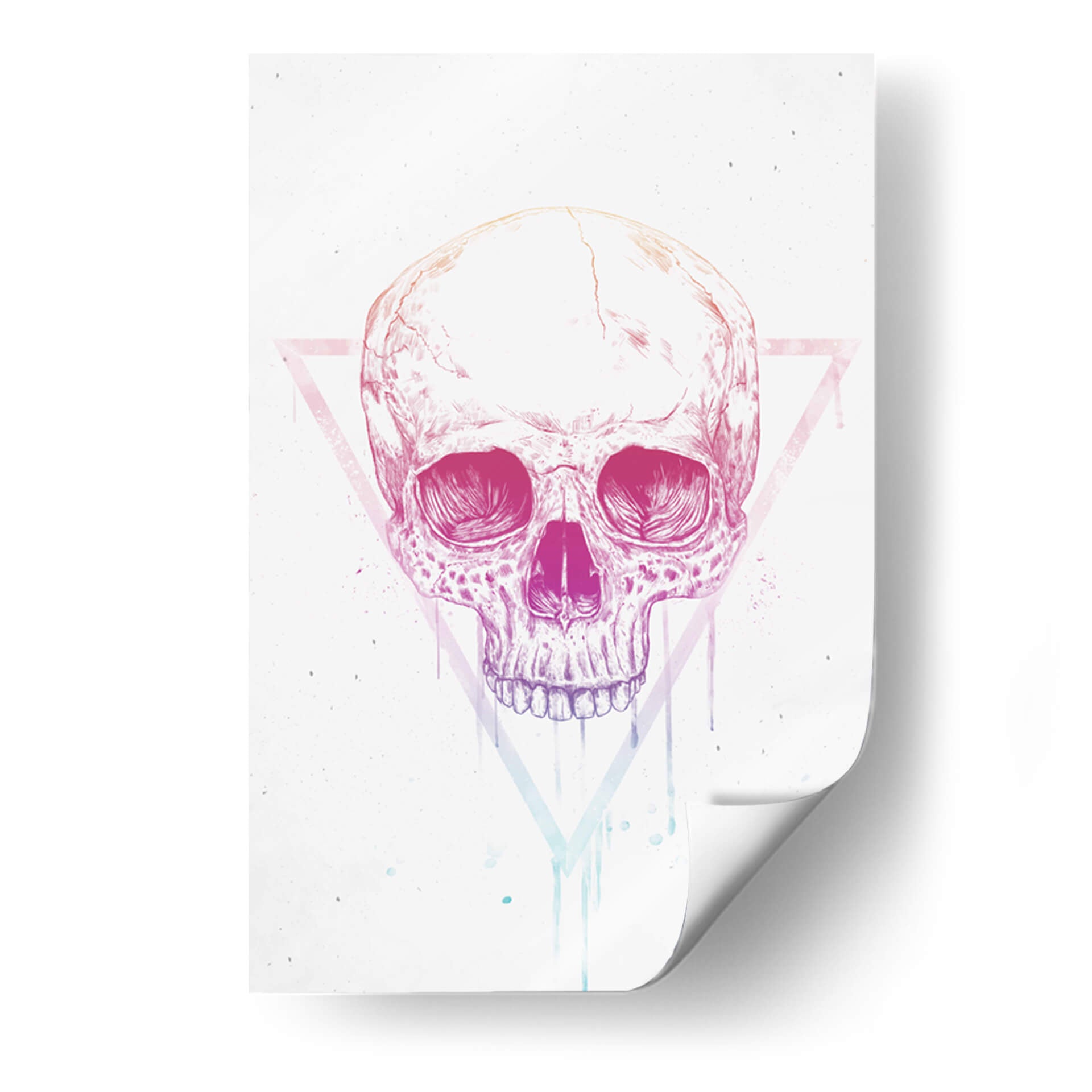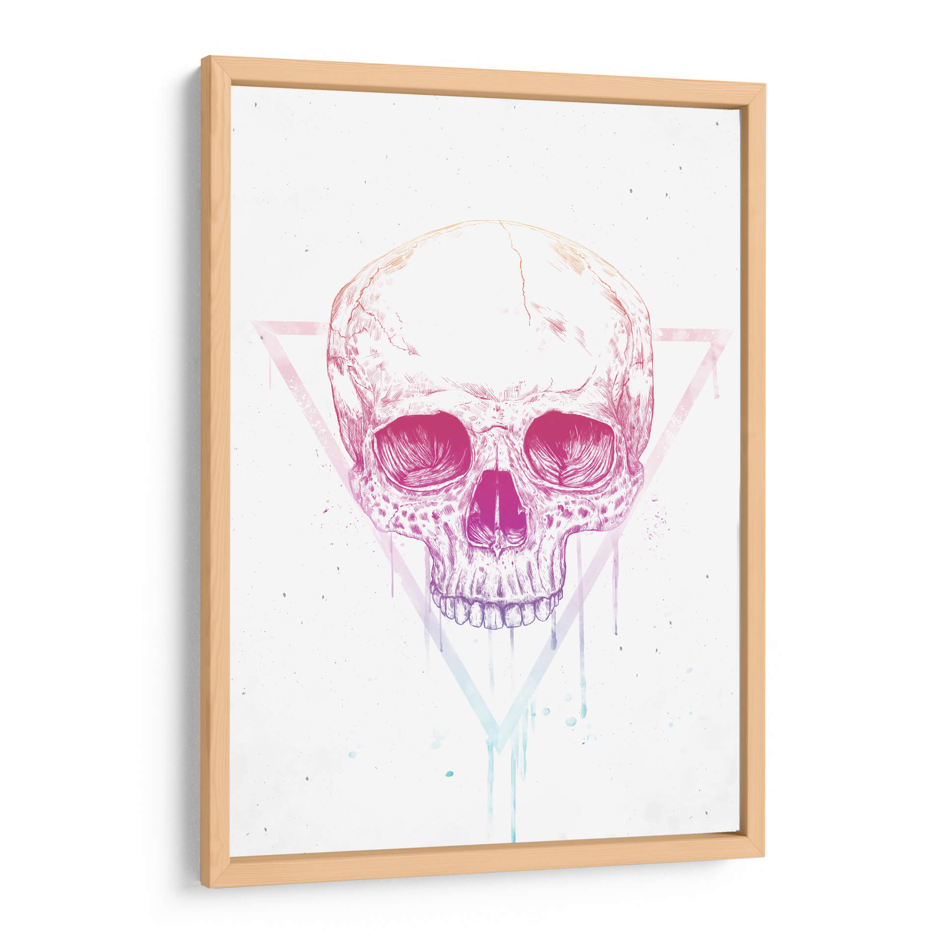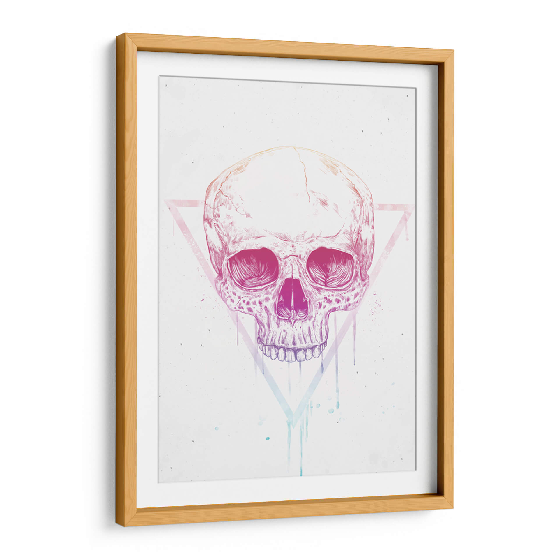 Introduce un toque de misterio y arte contemporáneo en tu espacio con este impactante cuadro decorativo "Cráneo en un triángulo" del artista Balazs Solti. La obra presenta un detallado cráneo dibujado a mano, cuya estructura ósea se fusiona con una paleta de colores vibrantes y degradados que van desde el fucsia intenso hasta tonos morados y celestes sutiles. El cráneo está enmarcado dentro de un triángulo geométrico, un elemento que aporta una sensación de orden y modernidad a la pieza, contrastando con la organicidad del sujeto. Las salpicaduras y goteos de pintura que emanan del triángulo sugieren una fusión de lo orgánico y lo abstracto, creando una dinámica visual única. Este cuadro es ideal para aquellos que buscan una pieza de arte audaz y llena de carácter, perfecta para salas de estar modernas, estudios creativos u oficinas que deseen reflejar una estética vanguardista. Su composición central y el uso de colores contrastantes lo convierten en un punto focal que invita a la reflexión y la conversación. Añade un elemento distintivo y lleno de personalidad a tu decoración.
