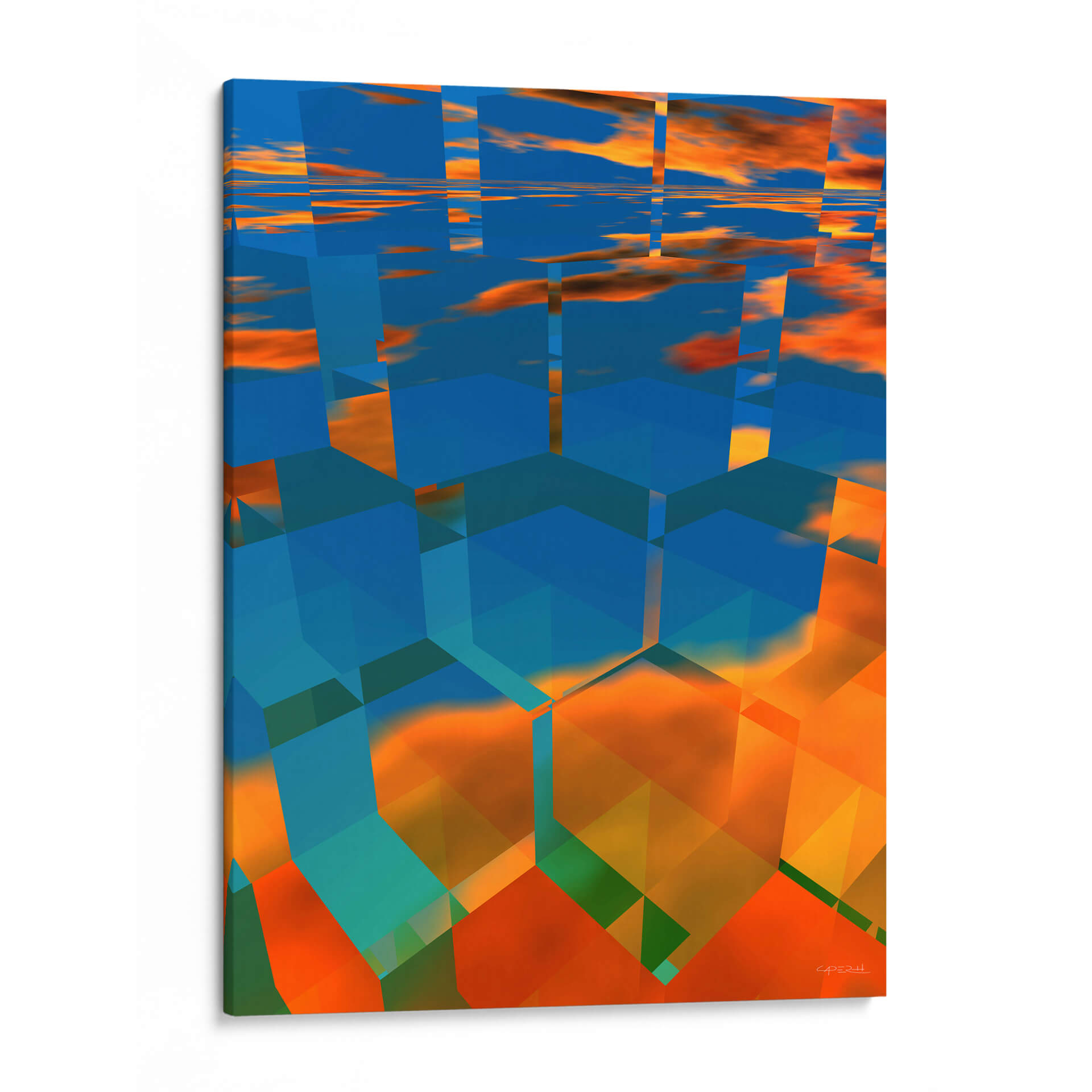 Sumérgete en la vibrante energía de "Cubos de Fuego", una obra de arte contemporáneo que fusiona la abstracción geométrica con la intensidad de un atardecer ardiente. Este cuadro decorativo presenta una composición audaz donde formas cúbicas translúcidas se entrelazan, reflejando un cielo dramático teñido de naranjas intensos y azules profundos. La paleta de colores, dominada por cálidos tonos de fuego y fríos contrastes de azul, crea una atmósfera de dinamismo y pasión, ideal para infundir vida a cualquier espacio. La técnica digital utilizada por el artista Caperh logra una profundidad visual sorprendente, invitando al espectador a explorar la relación entre la estructura geométrica y la fluidez del cielo. Este impresionante cuadro es perfecto para añadir un toque de modernidad y audacia a salas de estar, oficinas o cualquier ambiente que busque ser transformado por el arte. "Cubos de Fuego" no es solo una pieza decorativa, es una declaración de estilo y una ventana a un mundo de imaginación y color. Descubre cómo esta obra puede convertirse en el punto focal de tu hogar, generando conversación y admiración.