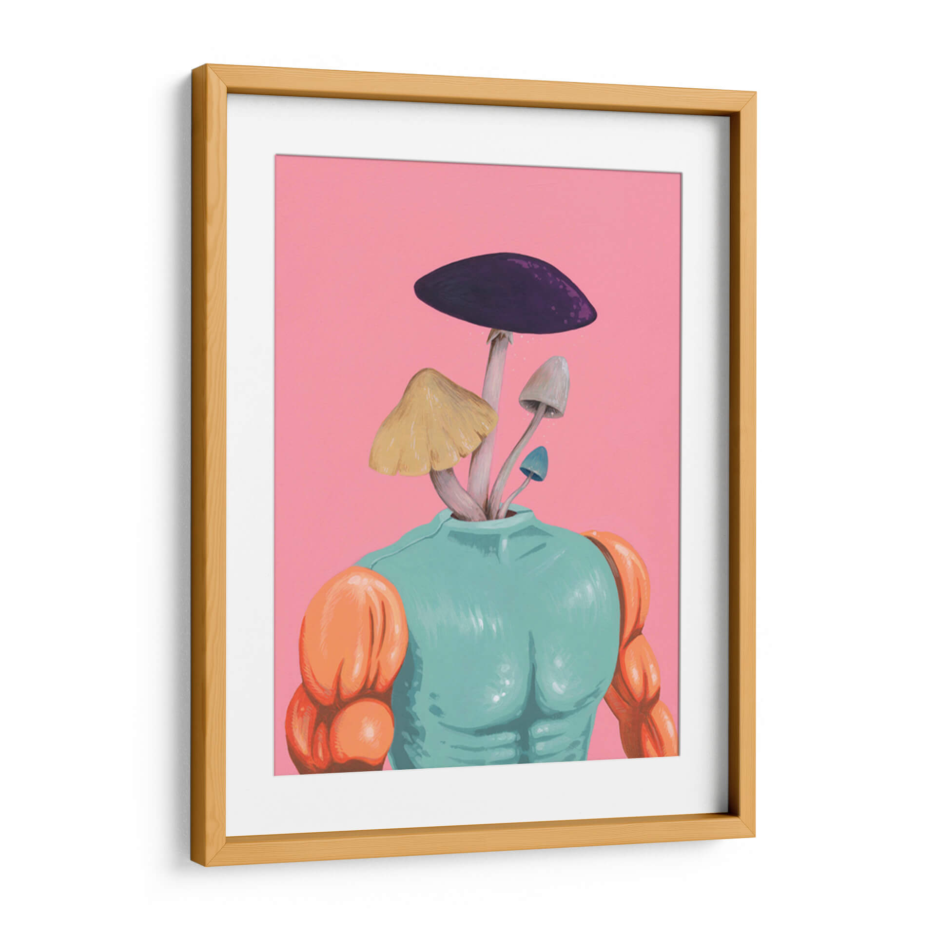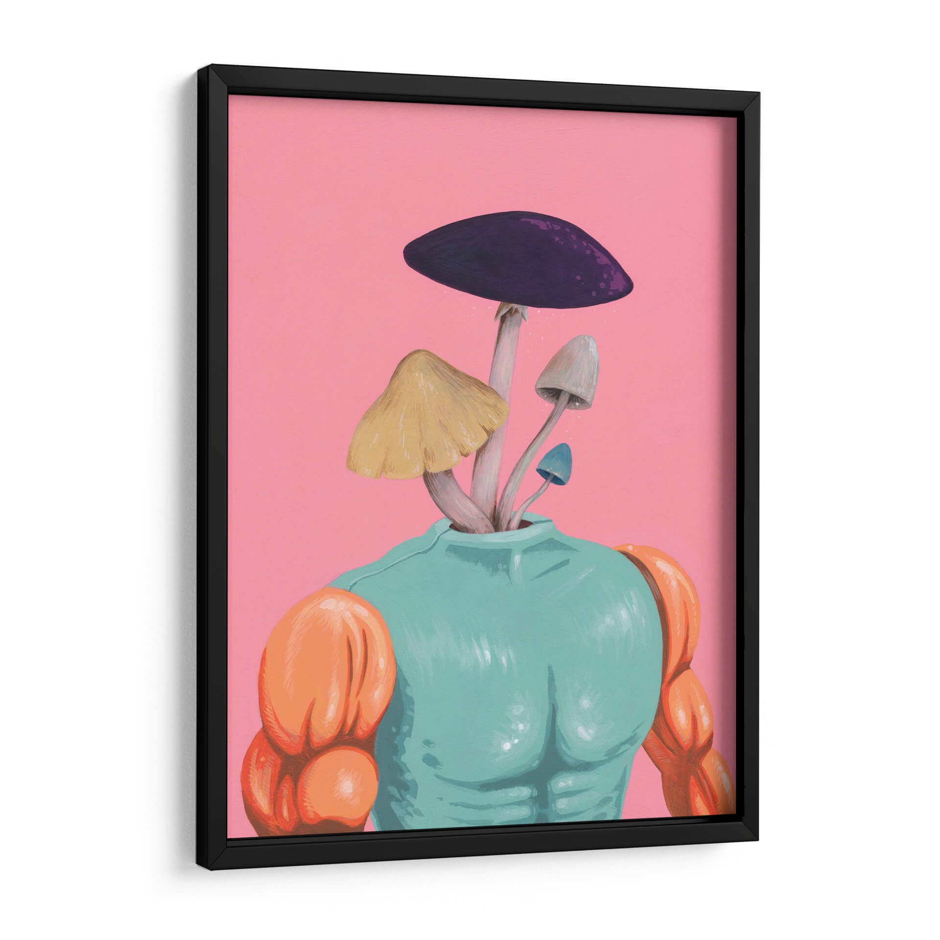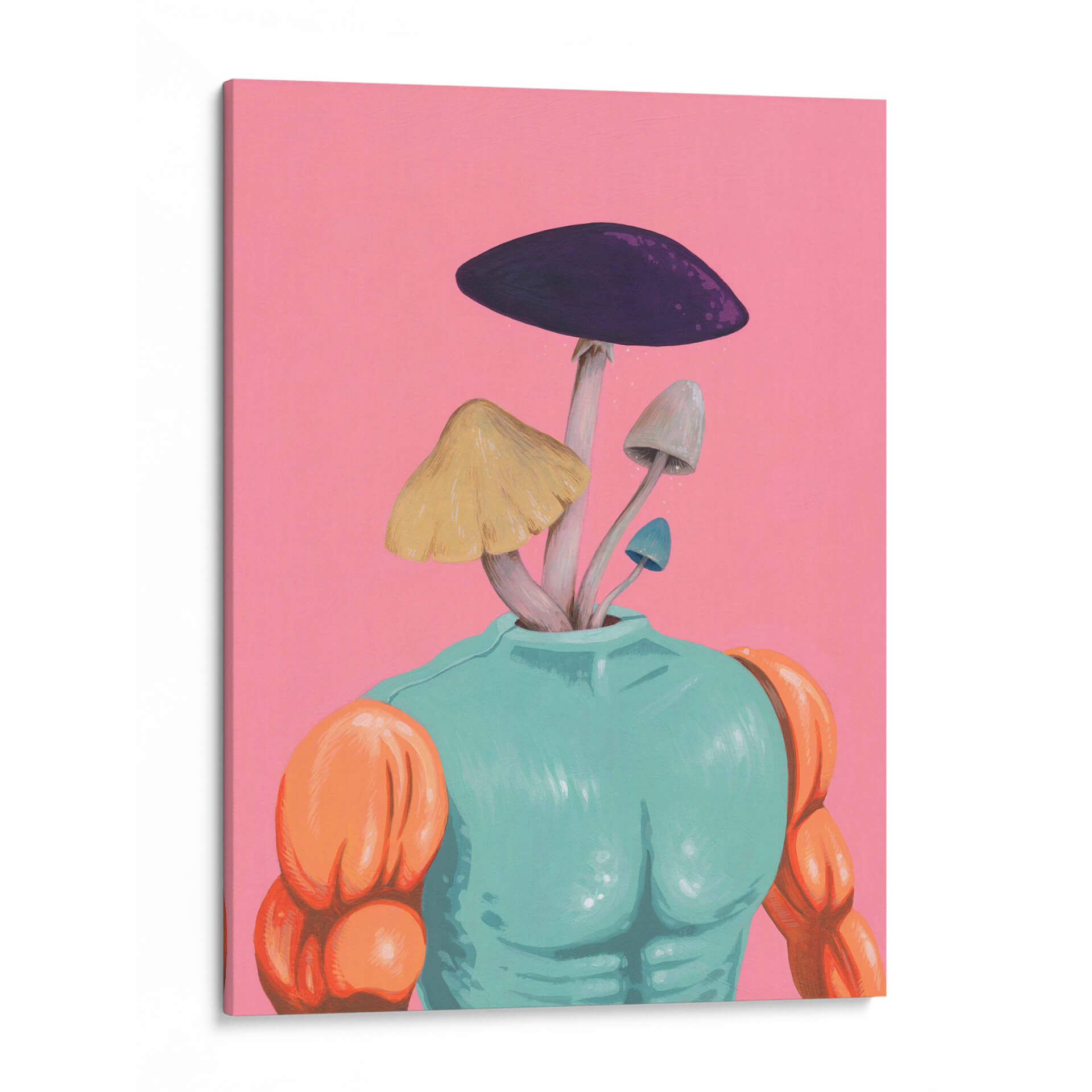 Sumérgete en la enigmática obra 'Dr. Fun Guy' del artista Famous When Dead, una pieza que desafía convenciones y estimula la imaginación. Este cuadro decorativo presenta una figura masculina estilizada, con un torso musculoso en un vibrante tono turquesa, del cual emergen delicadamente varios hongos. La paleta de colores, dominada por un fondo rosa chicle que contrasta audazmente con los tonos tierra y morados de los hongos y los naranjas intensos de los brazos, crea una atmósfera surrealista y juguetona. La composición es audaz y simétrica, atrayendo la mirada hacia el punto focal de la fusión entre lo orgánico y lo antropomórfico. 'Dr. Fun Guy' es una invitación a reflexionar sobre la naturaleza, el crecimiento y la transformación, presentada con un estilo artístico contemporáneo que podría adornar desde un espacio de trabajo creativo hasta una sala de estar moderna. Su singularidad la convierte en un punto de conversación y una adición memorable a cualquier colección de arte decorativo. Ideal para quienes buscan arte con personalidad y un toque de humor inesperado, este cuadro decorativo es una elección audaz para expresar individualidad y añadir un elemento surrealista a tu decoración.