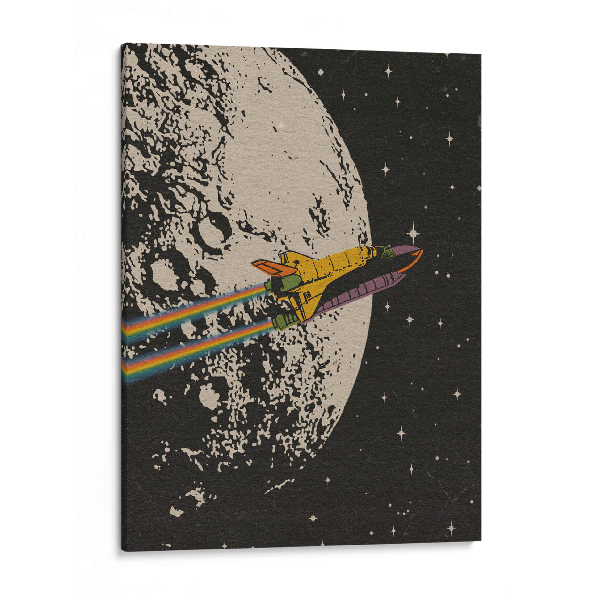 Embárcate en un viaje cósmico con "El Cohete", una obra de arte contemporáneo que captura la maravilla de la exploración espacial y la fantasía. Esta pieza presenta un vibrante cohete amarillo surcando el espacio, dejando tras de sí un rastro de arcoíris, con la imponente silueta de la luna y un cielo estrellado como telón de fondo. La paleta de colores, que combina tonos tierra y grises texturizados de la luna con el negro profundo del cosmos y los destellos coloridos del arcoíris, crea una atmósfera nostálgica y a la vez soñadora. El estilo retro-futurista evoca una sensación de aventura y optimismo, ideal para espacios que buscan un toque de originalidad y audacia. "El Cohete" es perfecto para añadir un punto focal inspirador a una sala de estar moderna, una oficina creativa o un dormitorio temático. Su diseño único lo convierte en un cuadro decorativo que estimula la imaginación y celebra la curiosidad humana por lo desconocido. Añade esta pieza a tu colección y deja que la aventura espacial despegue en tu hogar.