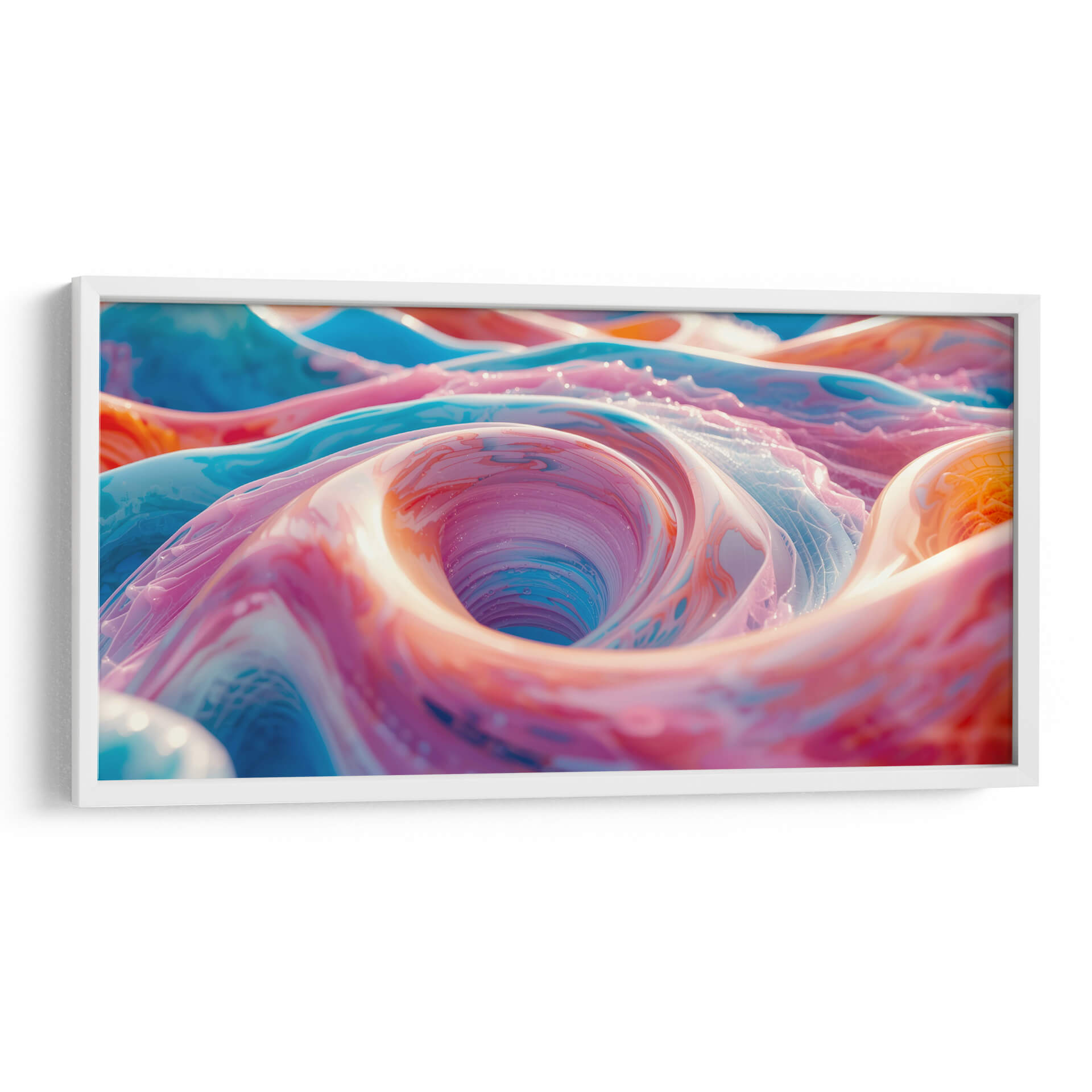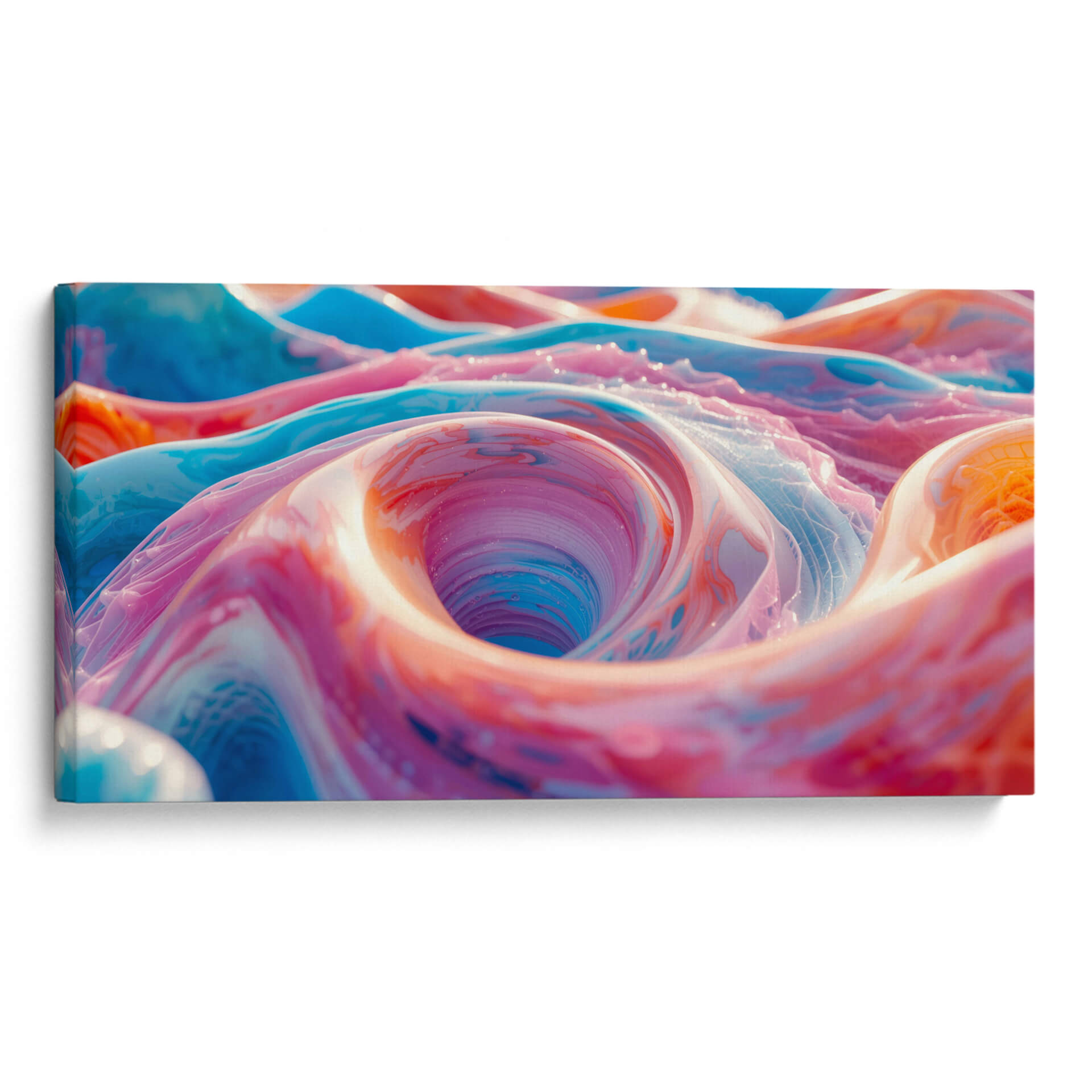Sumérgete en el fascinante mundo de "Espirales de la Mente - Zero", una obra de arte abstracto que desafía la percepción y estimula la imaginación. Este cautivador cuadro decorativo te transportará a un paisaje onírico, donde fluidas espirales de colores vibrantes danzan en armonía. Predominan los tonos azules profundos, rosados etéreos y naranjas energéticos, creando una paleta visualmente impactante que evoca una sensación de movimiento y profundidad. La composición, rica en texturas visuales y remolinos dinámicos, invita a la contemplación, sugiriendo un viaje introspectivo a través de los recovecos de la conciencia. Su estilo moderno y audaz lo convierte en la pieza perfecta para infundir vitalidad y un toque de vanguardia a cualquier espacio, ya sea una sala de estar contemporánea, un estudio creativo o una oficina moderna. "Espirales de la Mente - Zero" no es solo una decoración, es una invitación a explorar la belleza de lo abstracto y a añadir un elemento de intriga y color a tu vida. Ideal para quienes buscan arte que provoque conversación y refleje una personalidad audaz y contemporánea. Transforma tu pared en un portal a la creatividad.