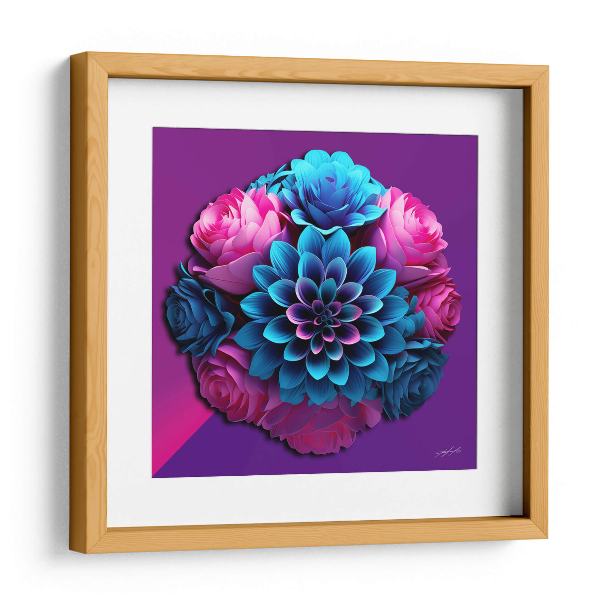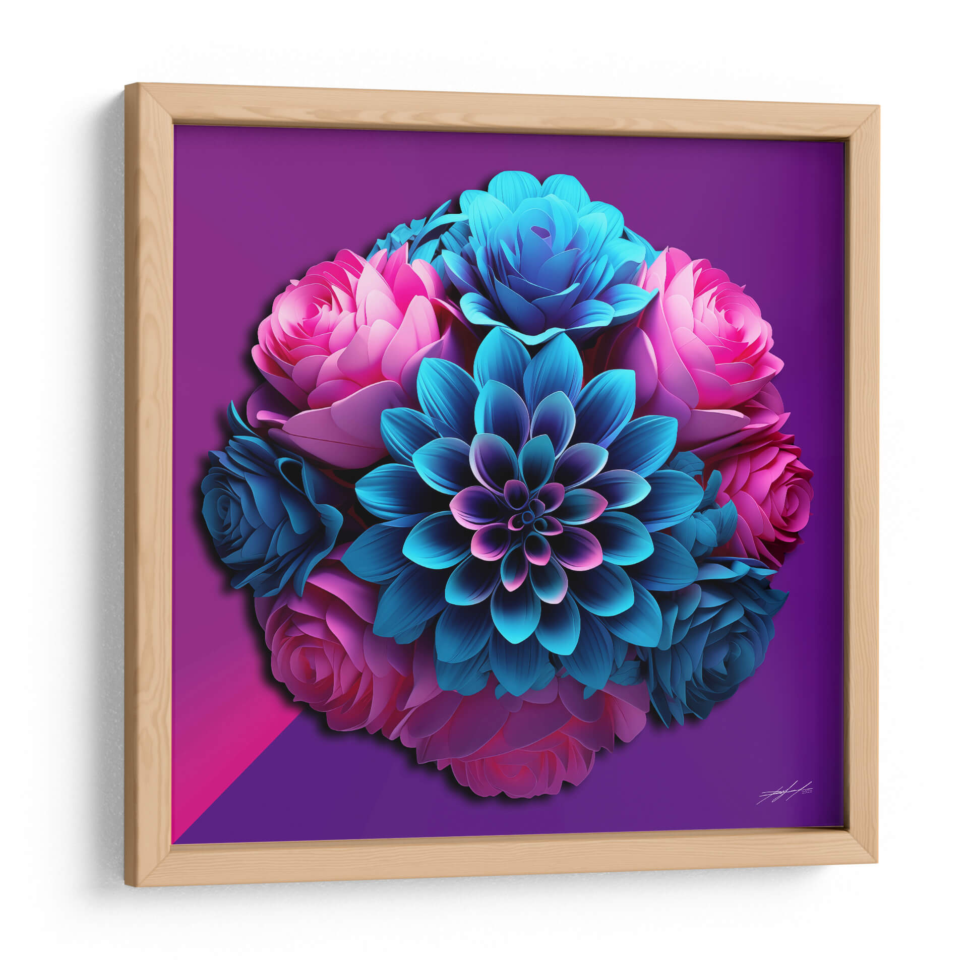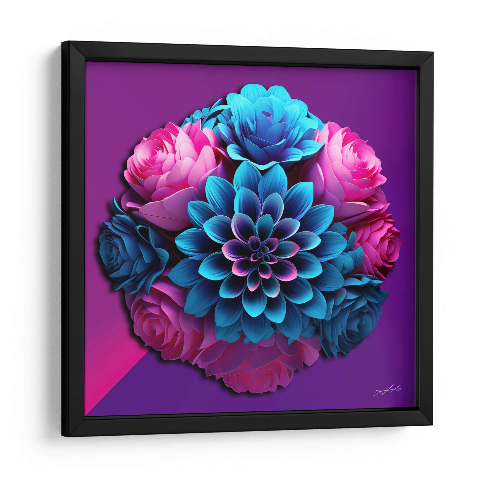 Embellece tu espacio con 'Florece - 2', una obra de arte digital que captura la esencia de la vitalidad y el color. Este cuadro decorativo presenta un vibrante arreglo floral donde las rosas rosadas se entrelazan con flores azules intensas, creando un contraste visual cautivador. La composición, de estilo contemporáneo y abstracto, juega con formas geométricas y volúmenes que dan vida a cada pétalo. El fondo púrpura profundo, con un sutil degradado hacia tonos fucsias, realza la tridimensionalidad de las flores y aporta una sensación de misterio y elegancia. La iluminación, que parece provenir de un foco lateral, acentúa las texturas y los contornos, dotando a la pieza de una profundidad sorprendente. 'Florece - 2' es ideal para añadir un toque de sofisticación moderna a cualquier habitación, desde una sala de estar o un comedor hasta una oficina o un dormitorio. Su paleta de colores audaz y su diseño dinámico lo convierten en un punto focal que inspira alegría y vitalidad. Transforma tu hogar u oficina con este impresionante cuadro decorativo floral que celebra la belleza de la naturaleza a través de una lente artística contemporánea, invitando a la contemplación y al disfrute estético.