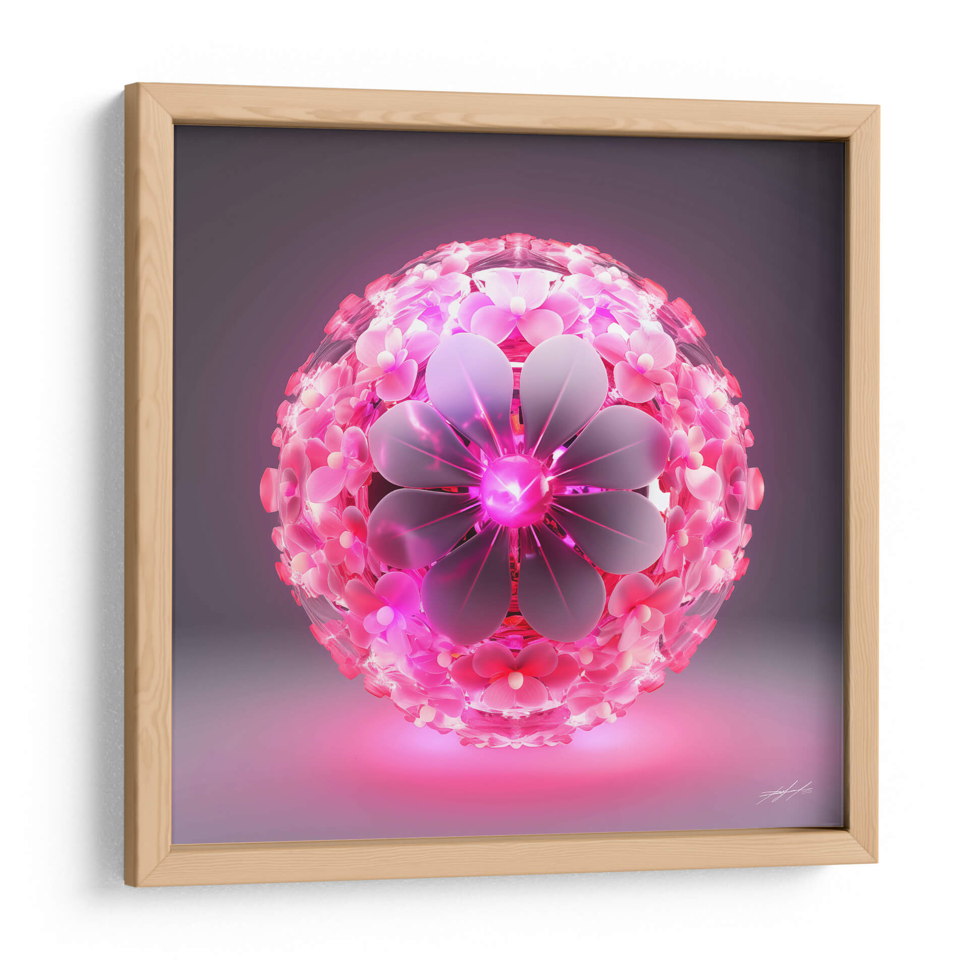 Sumérgete en la vibrante y cautivadora obra de arte 'Florece - 7' del artista DeLaVegaGaming. Esta pieza digital abstracta te transporta a un mundo de color y forma, donde una esfera luminosa se desvela rodeada de delicadas flores en tonos vibrantes de rosa y magenta. La composición central, dominada por pétalos grandes y estilizados que emanan de un núcleo brillante, crea un efecto hipnótico y lleno de energía. La paleta de colores, dominada por el rosa intenso y acentos brillantes, irradia alegría y vitalidad, mientras que el fondo degradado en tonos grises y violetas añade profundidad y un toque de misterio. 'Florece - 7' es una representación moderna y sofisticada de la naturaleza, reinterpretada a través de una lente digital, ideal para añadir un punto focal impactante y lleno de vida a cualquier espacio moderno. Su estilo abstracto y su atmósfera optimista la convierten en la elección perfecta para salones, estudios o cualquier lugar donde se busque inspirar creatividad y optimismo. Este cuadro decorativo es una invitación a contemplar la belleza en su forma más pura y energética, una explosión de color que transformará tu decoración.