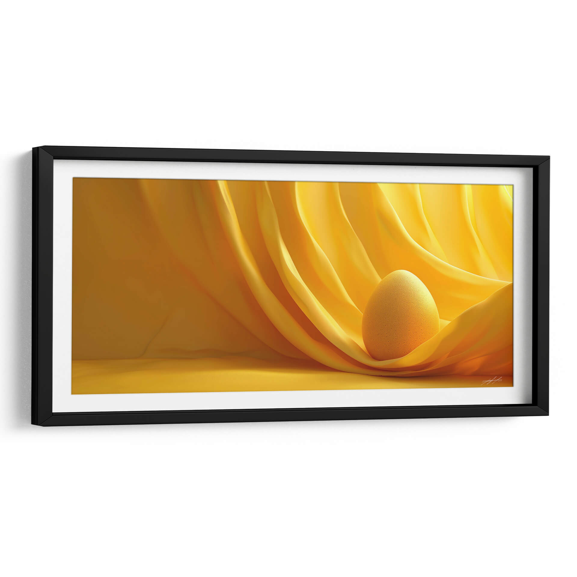 Sumérgete en la vibrante calidez de 'Huevo Abstracto - Amarillo - 1', una obra de arte contemporáneo que irradia positividad y serenidad. Esta pieza visualmente cautivadora presenta un huevo estilizado, sutilmente texturizado, acunado entre pliegues suaves y fluidos de tela de un intenso color amarillo. La iluminación dramática crea un juego de luces y sombras, aportando profundidad y un toque de misterio a la composición. El estilo abstracto y minimalista de la obra permite una interpretación personal, invitando a la reflexión sobre la vida, la creación y la simplicidad. El predominio del amarillo, un color asociado con la alegría, la energía y el optimismo, convierte a este cuadro decorativo en el punto focal perfecto para revitalizar cualquier espacio. Ideal para salones modernos, dormitorios acogedores, oficinas creativas o incluso como un toque inspirador en cocinas. Su diseño limpio y su paleta de colores audaz pero armoniosa la hacen versátil, complementando una amplia gama de decoraciones interiores, desde las más sobrias hasta las más audaces. Añade un toque de luz y sofisticación a tu hogar u oficina con este impresionante cuadro abstracto que promete ser una fuente constante de inspiración y buen ánimo. La obra 'Huevo Abstracto - Amarillo - 1' es una elección excelente para quienes buscan arte que combine estética moderna con un mensaje emocional positivo.