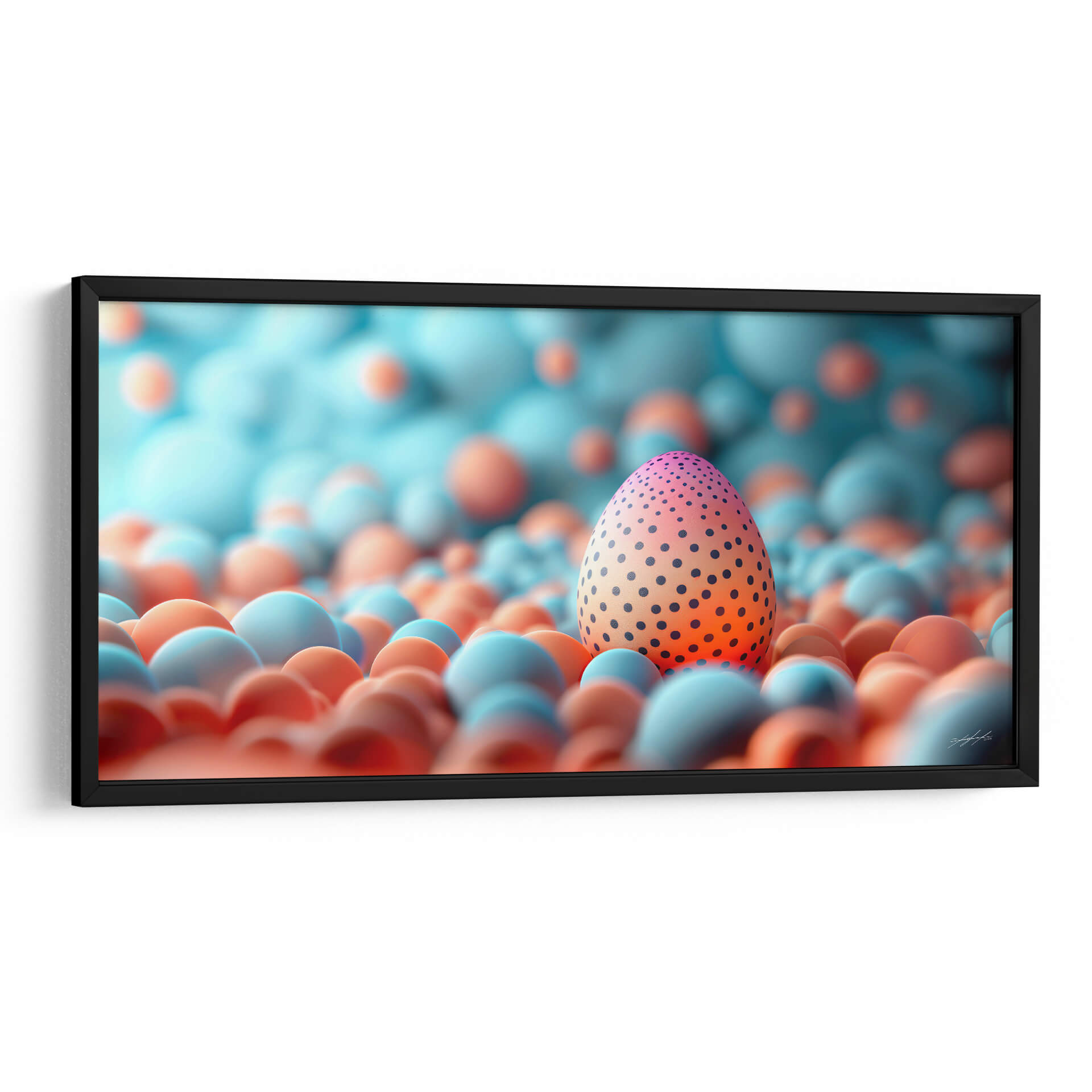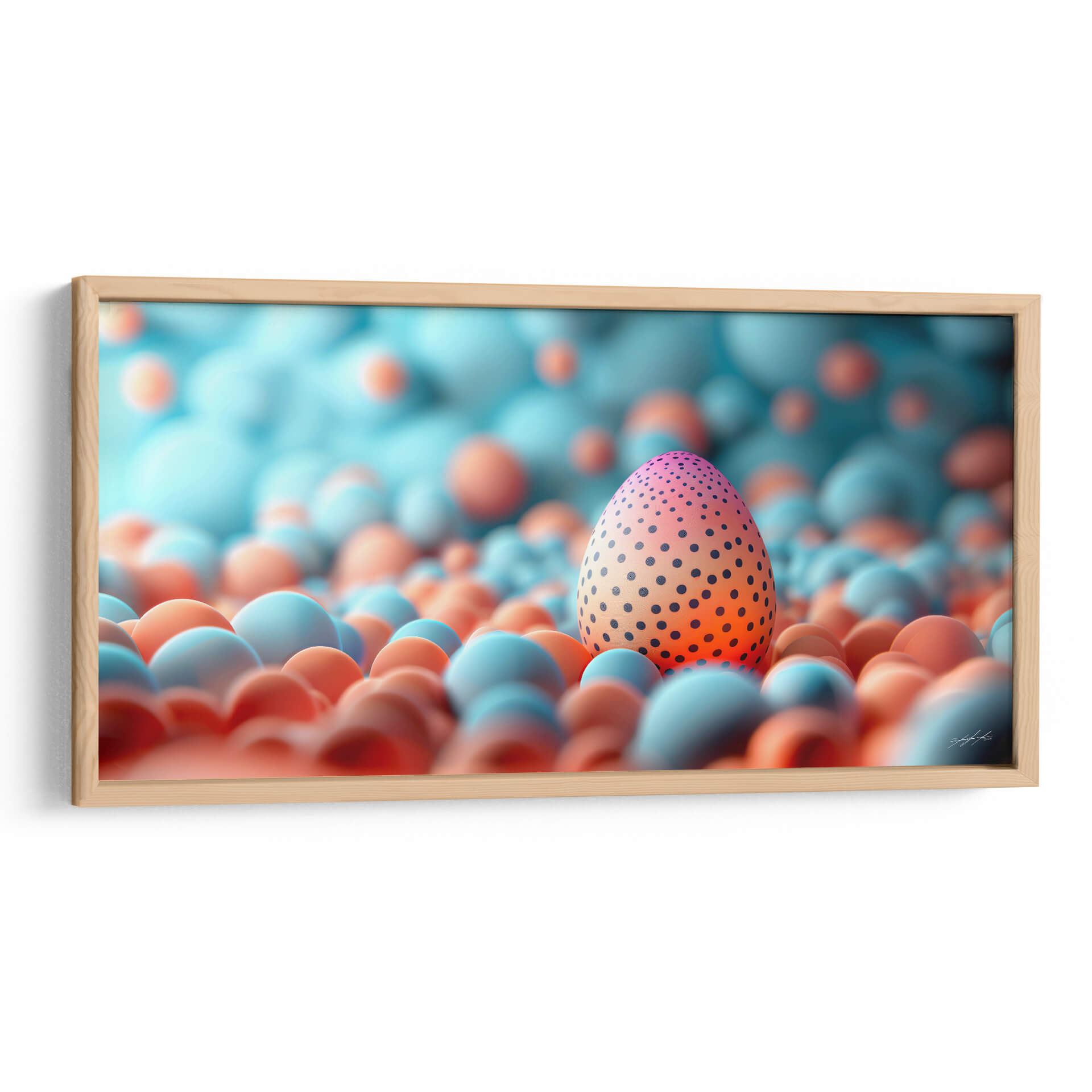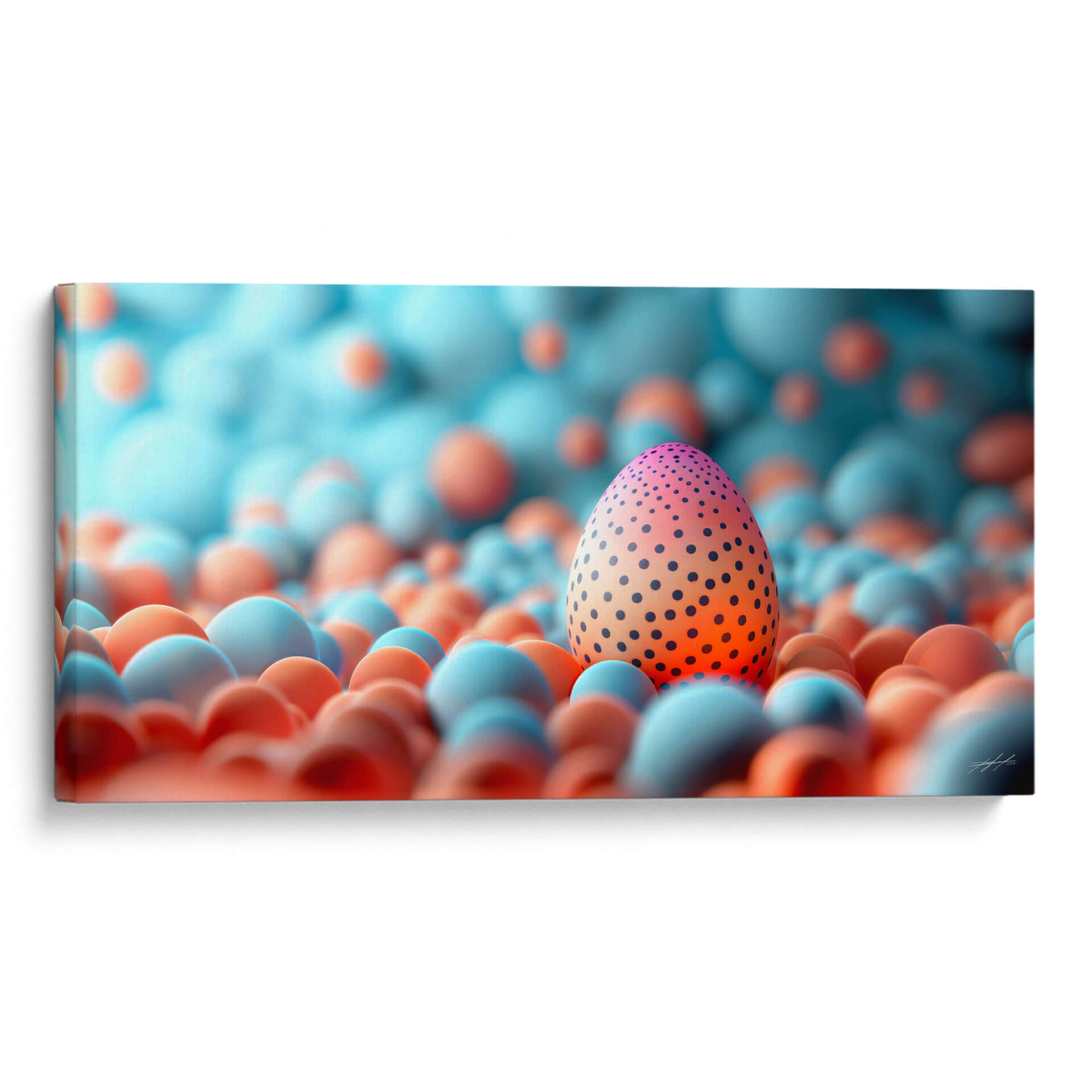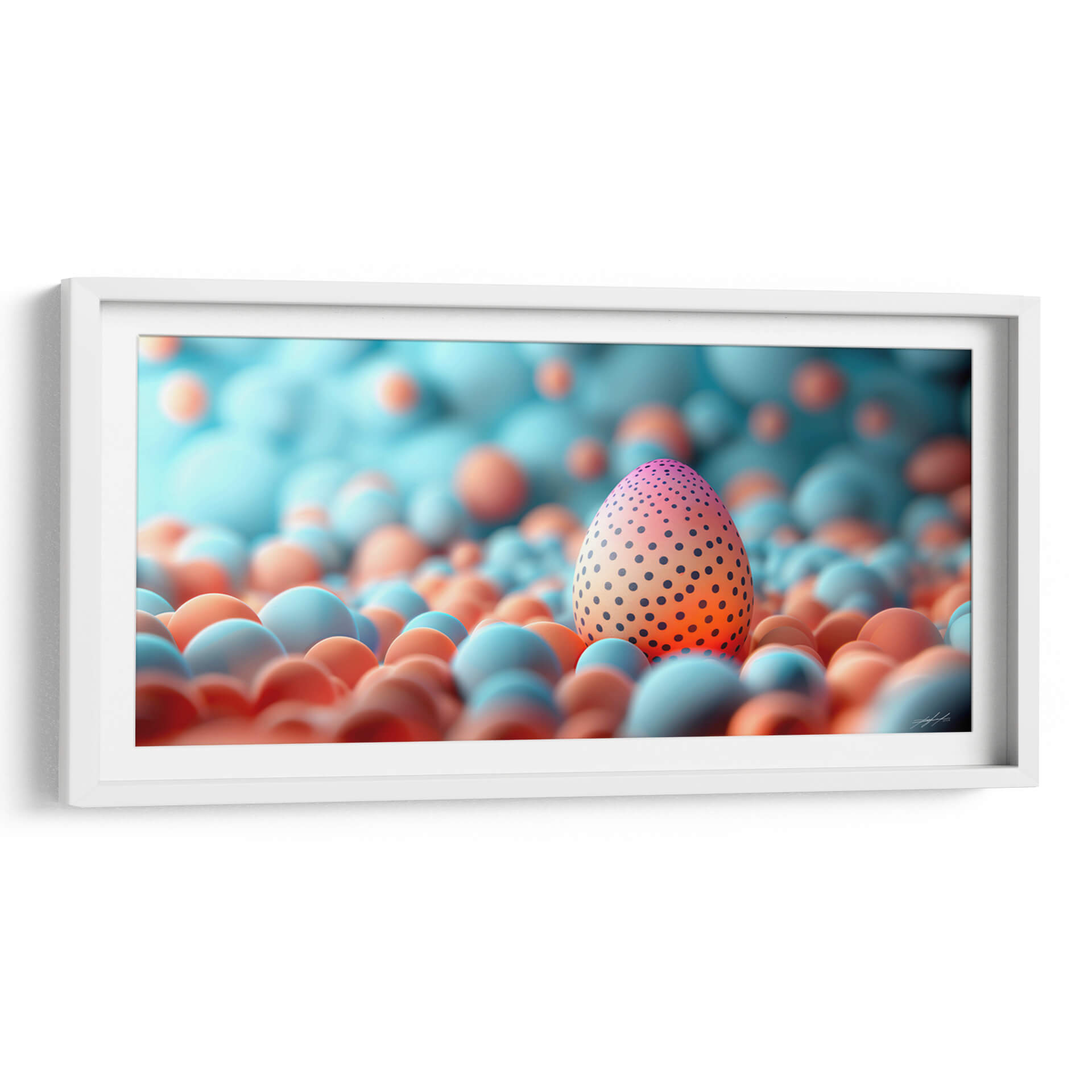 Sumérgete en un mundo de formas vibrantes y texturas cautivadoras con nuestro cuadro decorativo "Huevo Abstracto - Multicolor - 2" del artista DeLaVegaGaming. Esta obra de arte digital trasciende lo convencional, presentando un huevo solitario, adornado con un patrón hipnótico de puntos negros sobre un degradado que va del naranja cálido al rosa vibrante. La pieza se encuentra rodeada por una multitud de esferas abstractas, unas en tonos de azul cielo sereno y otras en un coral energético, creando un contraste visual fascinante. La profundidad de campo, con un suave desenfoque en el fondo, atrae la mirada hacia el protagonista, invitando a la contemplación y al asombro. Los colores contrastantes y las formas orgánicas generan una atmósfera de energía juguetona y modernidad, ideal para espacios que buscan un toque de originalidad y un punto focal audaz. Este cuadro decorativo es perfecto para salas de estar, oficinas o cualquier lugar donde desees inyectar vitalidad y un aire contemporáneo. Su estilo abstracto y su composición única lo convierten en una pieza de conversación, capaz de inspirar creatividad y alegría. Añade una dimensión de color y forma a tu decoración con esta obra maestra digital que celebra la belleza de lo inesperado.
