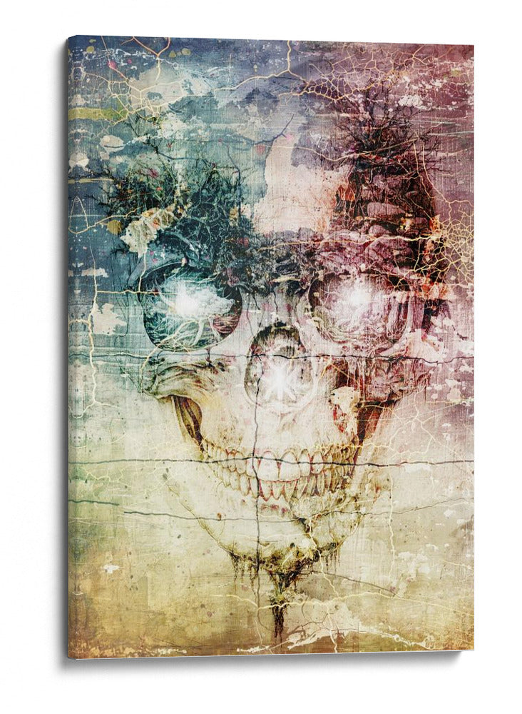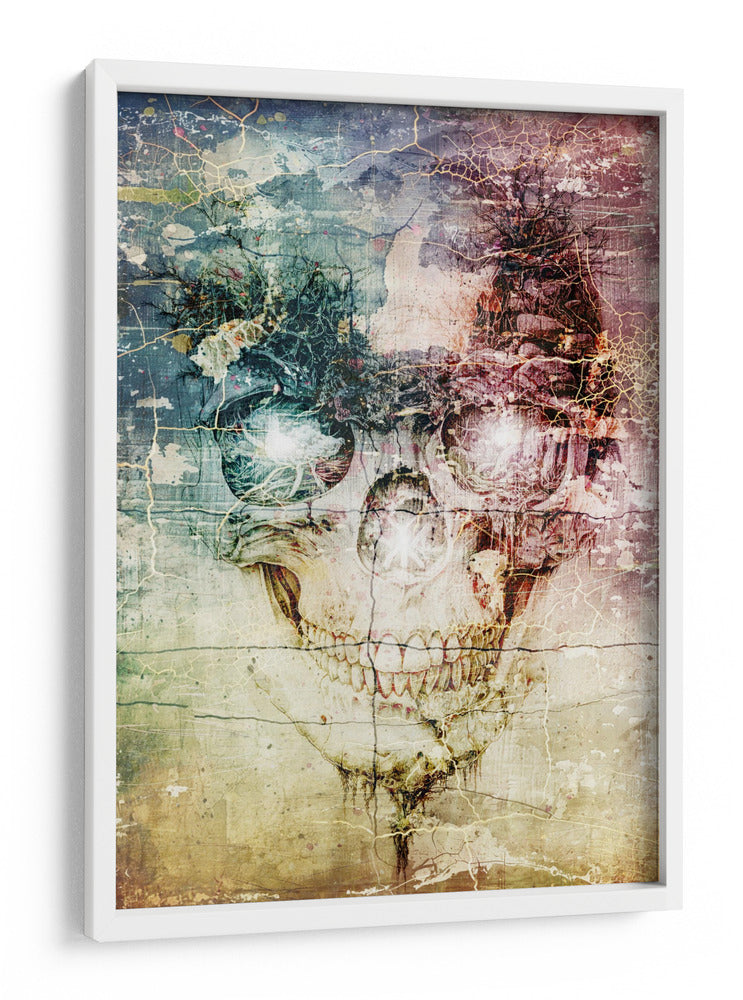 Sumérgete en el enigmático mundo de "Ilustración 32" de Rafal Kulik, una obra de arte digital que desafía las convenciones y cautiva la imaginación. Este cuadro decorativo presenta una representación abstracta y surrealista de una calavera, fusionada con elementos orgánicos y texturas que evocan un sentido de decadencia y renacimiento. La paleta de colores es rica y compleja, con tonos profundos de azul, morado y rojo que contrastan con los matices terrosos y ocres, creando una atmósfera introspectiva y misteriosa. Las grietas y texturas superpuestas añaden una dimensión de profundidad y complejidad, sugiriendo una historia oculta o un viaje a través del tiempo. Los ojos de la calavera brillan con una luz etérea, confiriéndole una vitalidad inesperada a la figura. Esta pieza es ideal para espacios que buscan un toque de audacia y originalidad, como estudios creativos, salas de estar con carácter o incluso como un punto focal intrigante en una oficina moderna. Su estilo único y su capacidad para provocar reflexión la convierten en una adición memorable a cualquier colección de arte contemporáneo. Descubre la fascinación de lo macabro y lo bello entrelazados en este impresionante cuadro decorativo.