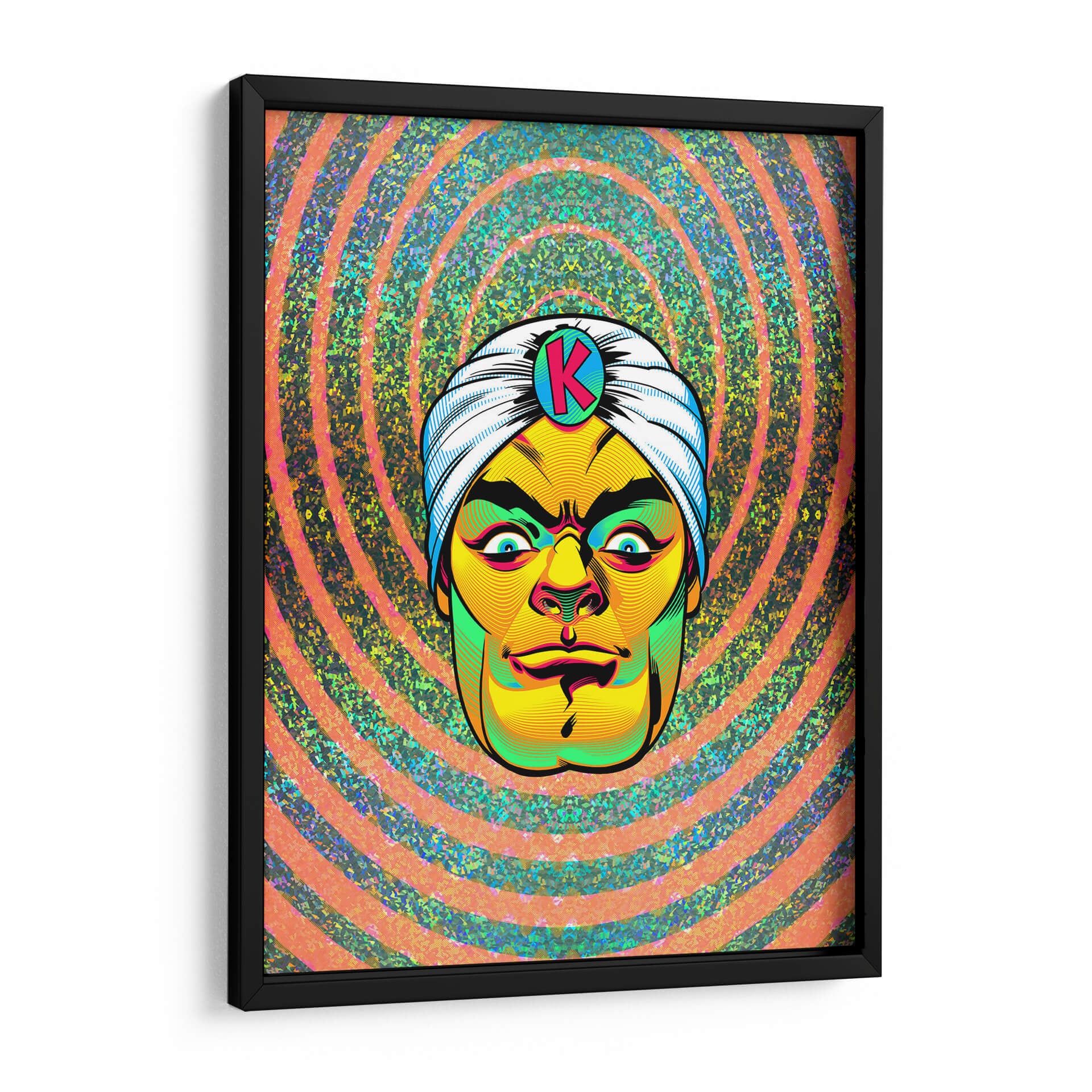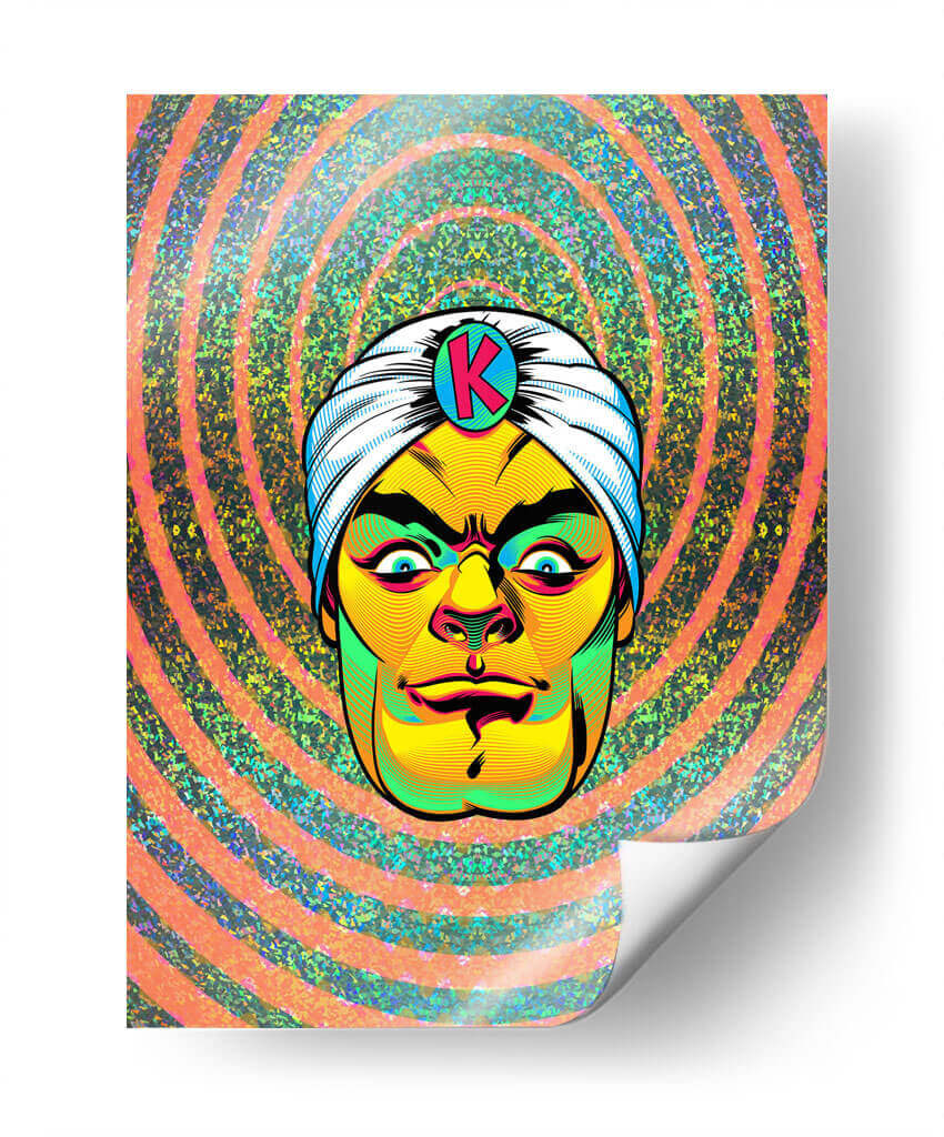 Sumérgete en la enigmática mirada de "La hipnósis de Kaliman", un cuadro decorativo que irradia una energía vibrante y un misterio cautivador. Esta obra de arte presenta un retrato estilizado de un personaje con un turbante, cuyos ojos penetrantes parecen invitar a la contemplación. La paleta de colores es audaz y contrastante, dominada por amarillos intensos, verdes eléctricos y toques de azul y naranja, creando un efecto visual impactante y psicodélico. El fondo, con sus círculos concéntricos, amplifica la sensación de profundidad y trance, sugiriendo un viaje interior o una experiencia sensorial única. El estilo gráfico, con líneas definidas y un sombreado marcado, le confiere un aire moderno y pop, reminiscente de las ilustraciones de cómics o carteles retro, pero con una ejecución contemporánea y sofisticada. "La hipnósis de Kaliman" es una pieza ideal para aquellos que buscan un punto focal audaz y lleno de carácter en su hogar u oficina. Perfecta para añadir un toque de color y personalidad a salones modernos, estudios de diseño o cualquier espacio que aspire a ser vanguardista y a provocar conversación. Esta obra es una invitación a explorar la mente y el poder de la sugestión a través del arte.
