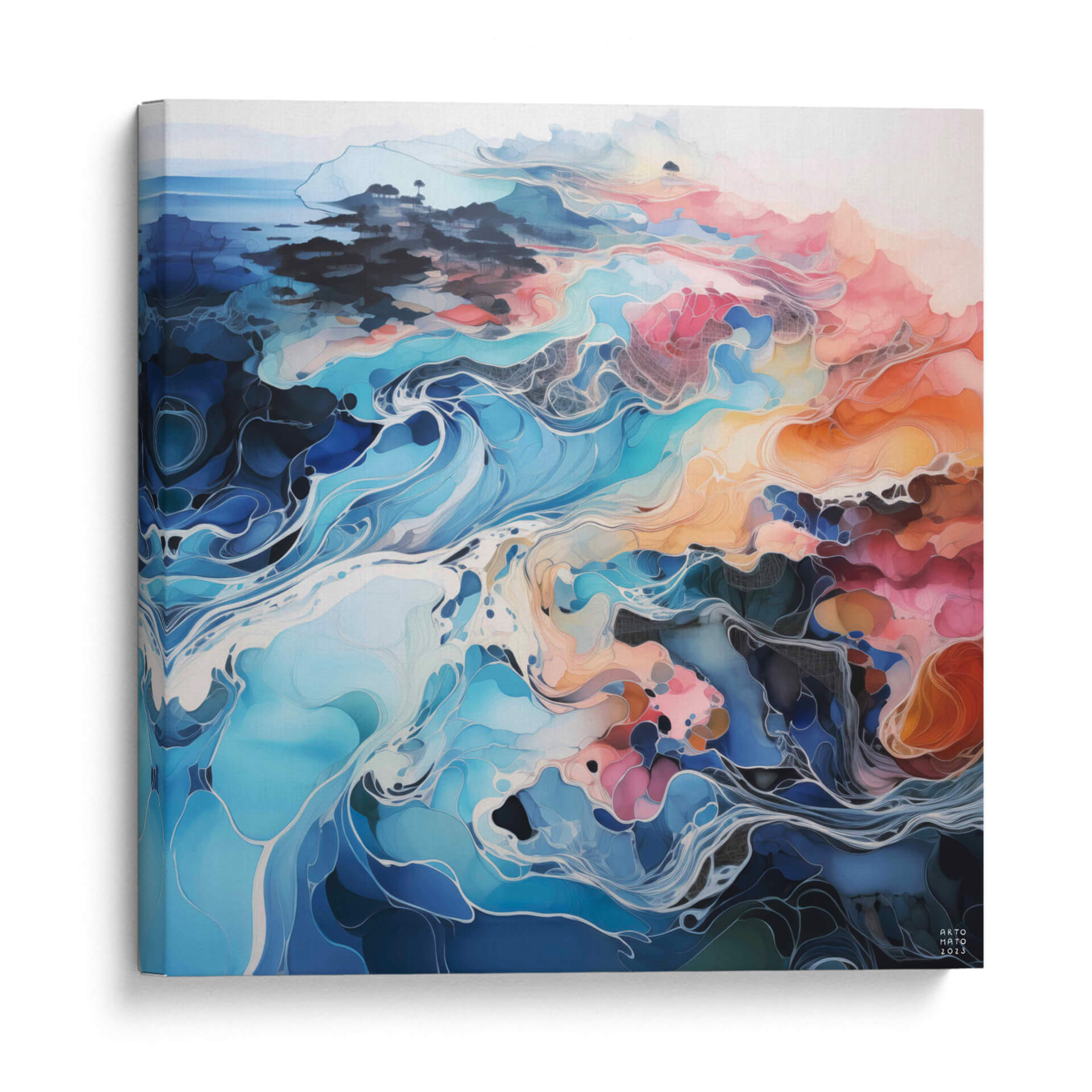 Sumérgete en la hipnótica belleza de "Litoral", una obra de arte contemporáneo que captura la esencia dinámica y efímera de la costa. Esta pieza evoca la poderosa danza entre la tierra y el mar, representada a través de un vibrante tapiz de colores y formas fluidas. Las profundidades azules se entrelazan con suaves tonos rosados y anaranjados, creando un contraste visual que refleja la energía y la serenidad de la naturaleza. Las líneas sinuosas y la composición abstracta invitan a la contemplación, sugiriendo el movimiento constante de las olas y la textura de la arena. Ideal para quienes buscan infundir sus espacios con una sensación de calma y movimiento, este cuadro decorativo es perfecto para salones modernos, dormitorios que invitan al descanso o incluso oficinas que buscan un toque de inspiración natural. "Litoral" no es solo una imagen, sino una experiencia sensorial que transformará tu hogar en un santuario de paz y belleza. Descubre la maestría de Artomato en esta pieza que fusiona la abstracción con la representación evocadora de un paisaje marino. Su estilo único y su paleta de colores cuidadosamente seleccionada la convierten en una adición excepcional a cualquier colección de arte decorativo de pared, aportando profundidad y carácter a tu decoración.