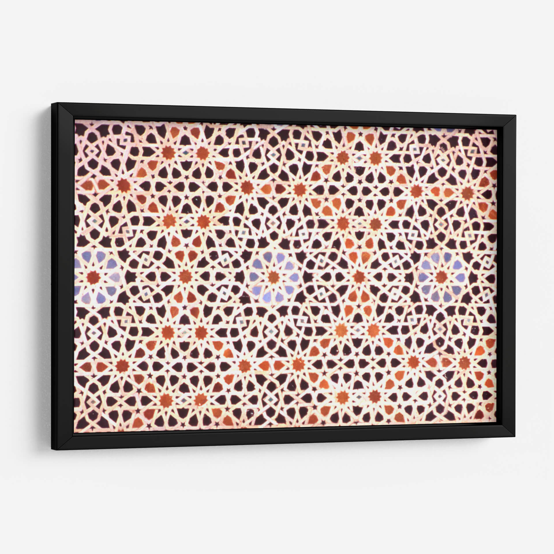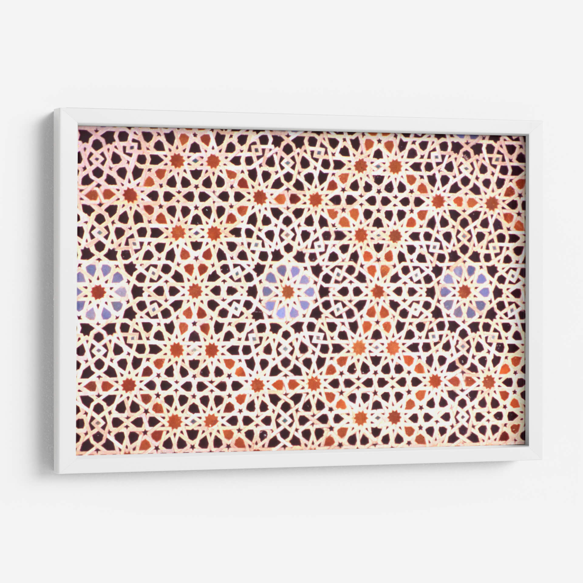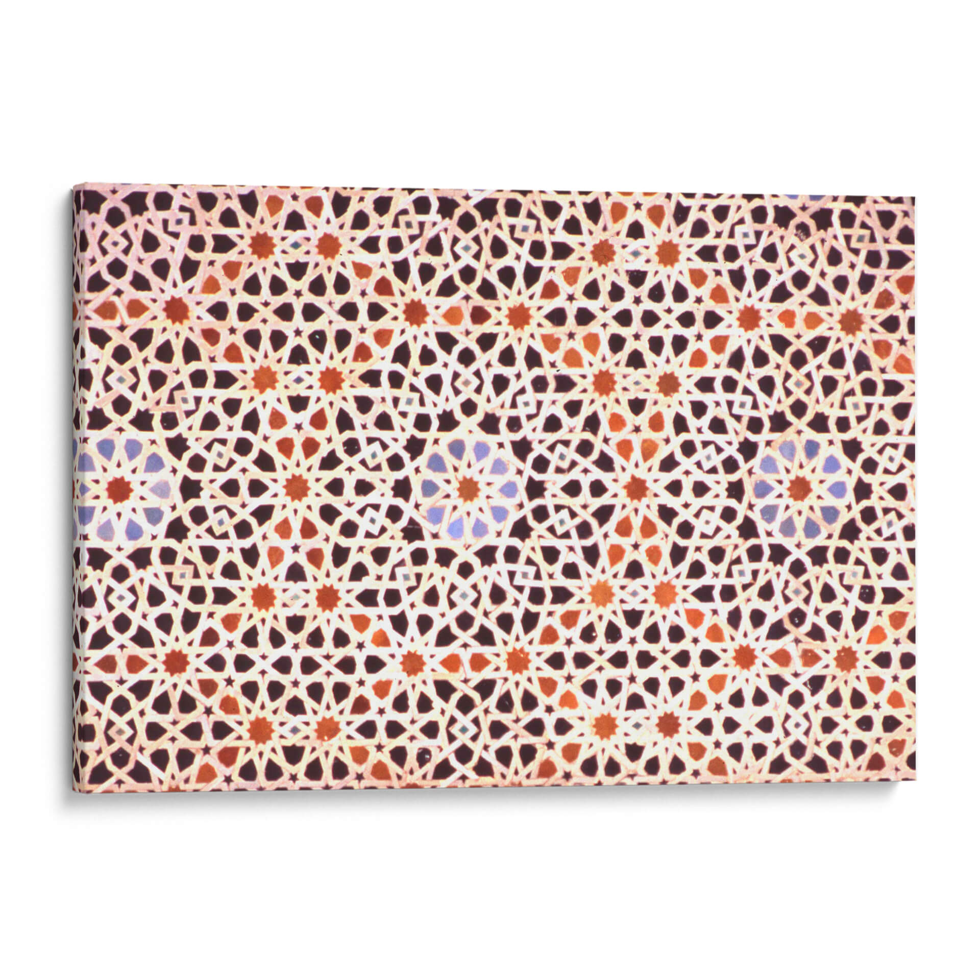 Sumérgete en la riqueza visual y la complejidad geométrica con nuestro cuadro decorativo 'Mosaico Marroquí'. Esta obra captura la esencia intrincada de los diseños islámicos, presentando un patrón repetitivo y simétrico que hipnotiza la mirada. Los colores cálidos, dominados por tonos tierra, naranjas y toques sutiles de azul, crean una atmósfera acogedora y exótica, evocando la artesanía tradicional de Marruecos. La composición meticulosa, con sus estrellas entrelazadas y formas geométricas precisas, genera un efecto visual dinámico que invita a la contemplación. Ideal para añadir un toque de elegancia, cultura y calidez a cualquier espacio, este cuadro decorativo es perfecto para salones, comedores o incluso oficinas que busquen un punto focal distintivo y lleno de historia. Su diseño abstracto pero evocador lo convierte en una pieza versátil, capaz de complementar tanto decoraciones modernas como clásicas, aportando profundidad y un sentido de orden visual. Descubre la belleza atemporal del arte marroquí en tu hogar.