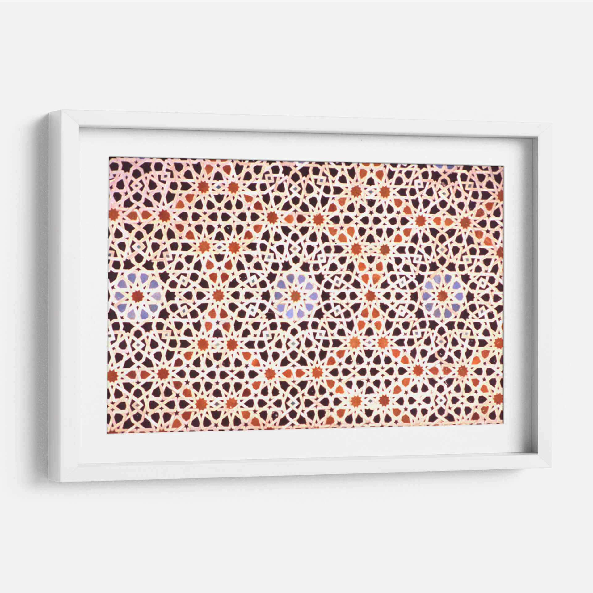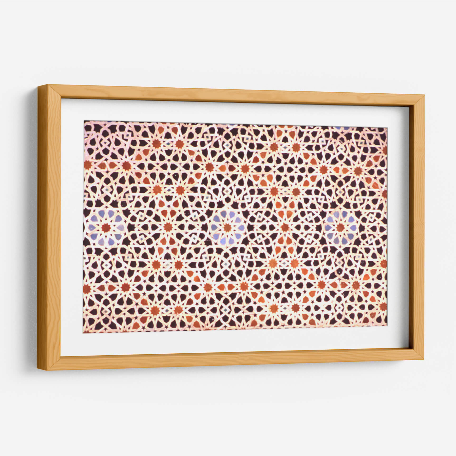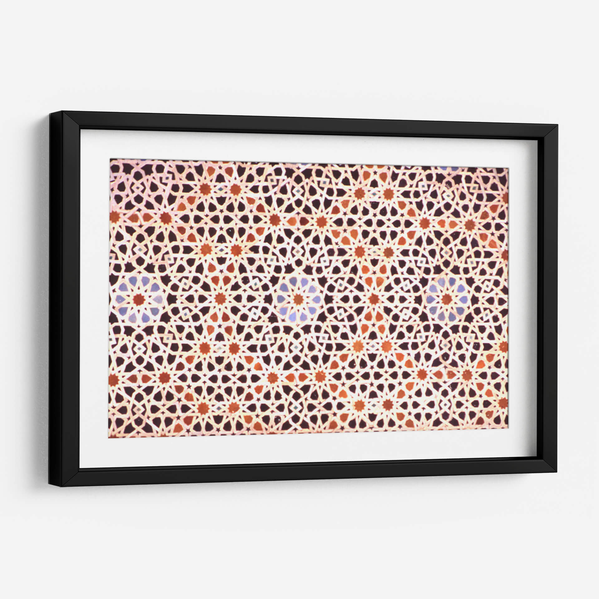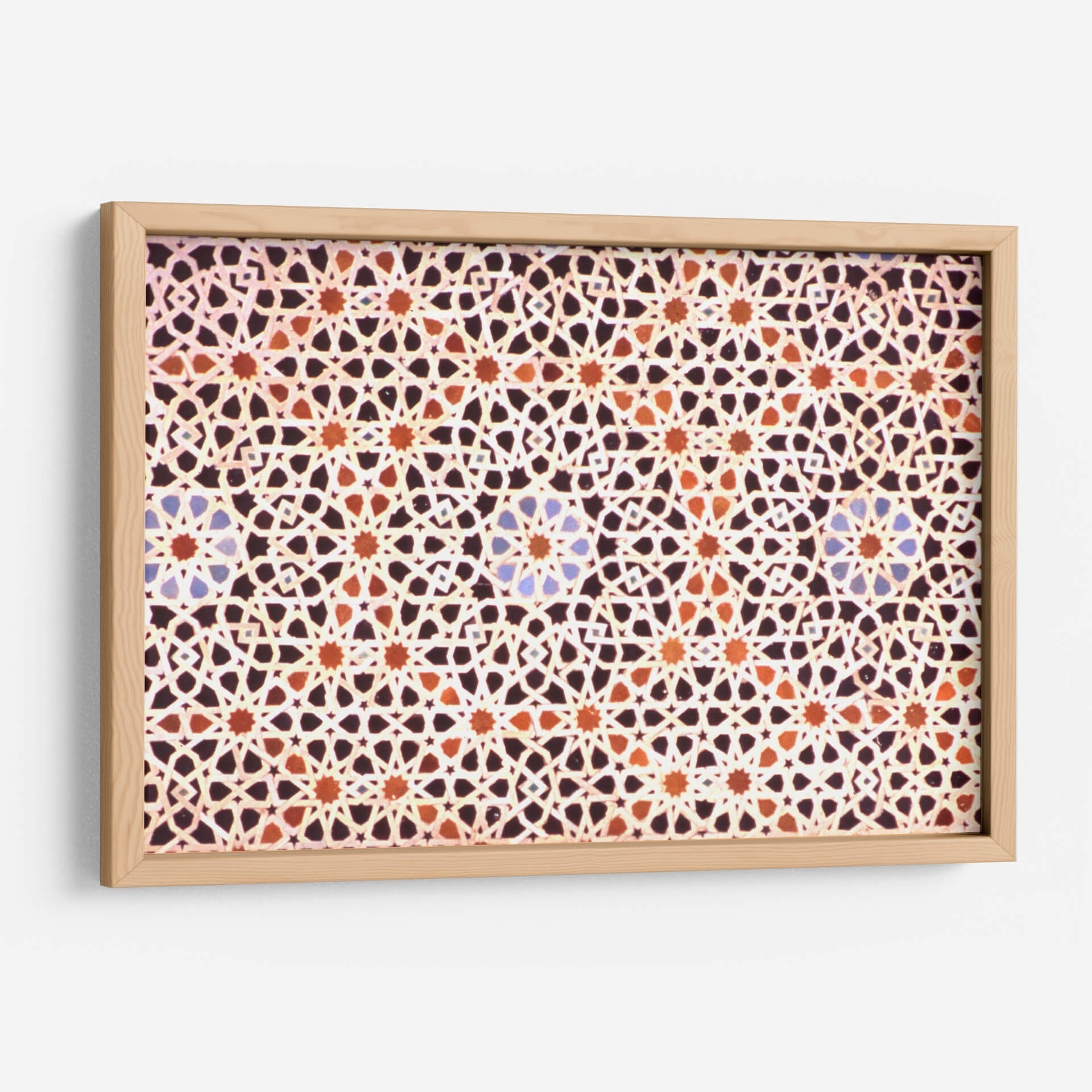 Sumérgete en la riqueza visual y la complejidad geométrica con nuestro cuadro decorativo 'Mosaico Marroquí'. Esta obra captura la esencia intrincada de los diseños islámicos, presentando un patrón repetitivo y simétrico que hipnotiza la mirada. Los colores cálidos, dominados por tonos tierra, naranjas y toques sutiles de azul, crean una atmósfera acogedora y exótica, evocando la artesanía tradicional de Marruecos. La composición meticulosa, con sus estrellas entrelazadas y formas geométricas precisas, genera un efecto visual dinámico que invita a la contemplación. Ideal para añadir un toque de elegancia, cultura y calidez a cualquier espacio, este cuadro decorativo es perfecto para salones, comedores o incluso oficinas que busquen un punto focal distintivo y lleno de historia. Su diseño abstracto pero evocador lo convierte en una pieza versátil, capaz de complementar tanto decoraciones modernas como clásicas, aportando profundidad y un sentido de orden visual. Descubre la belleza atemporal del arte marroquí en tu hogar.