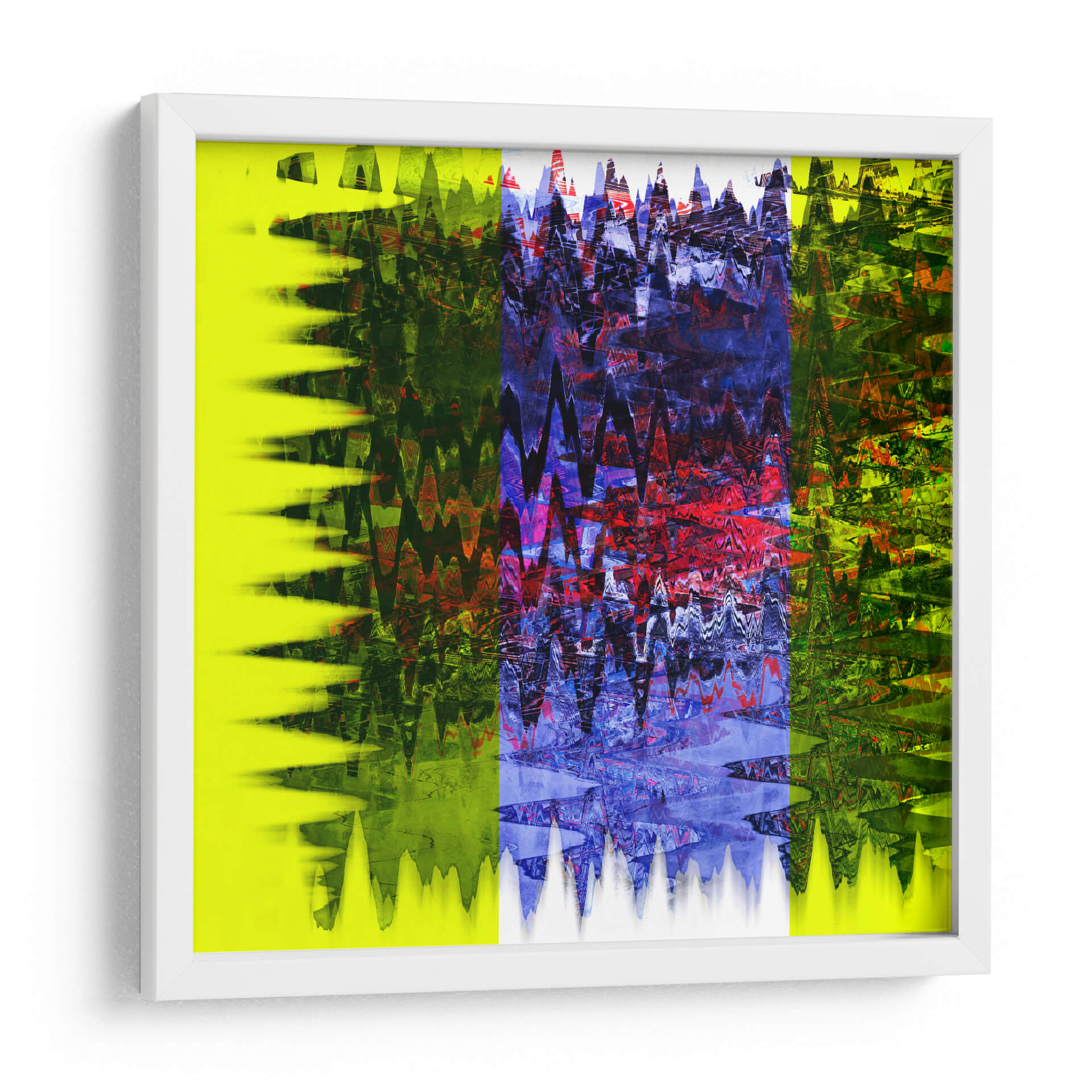 Sumérgete en la vibrante energía de "movimiento 7", una obra de arte contemporáneo que redefine la expresión abstracta. Este cuadro decorativo es una explosión de color y forma, donde el artista LAGUREN juega con texturas y patrones digitales para crear una pieza dinámica y cautivadora. Las franjas verticales, marcadas por un zigzagueante patrón, presentan un cautivador contraste entre el amarillo brillante y los intensos verdes en los extremos, con un segmento central que despliega una rica paleta de azules profundos, púrpuras y destellos de rojo y blanco. La composición, aunque abstracta, evoca una sensación de flujo constante y transformación, casi como si capturara la esencia del sonido visual o la energía cinética. Es una pieza ideal para inyectar vida y un toque moderno a cualquier espacio, desde una sala de estar contemporánea hasta una oficina vanguardista. "movimiento 7" no es solo una decoración de pared, es una invitación a sentir la intensidad y la complejidad del arte abstracto actual. Su diseño audaz lo convierte en un punto focal que estimulará la conversación y la admiración en tu hogar o lugar de trabajo, añadiendo profundidad y carácter a tu ambiente.