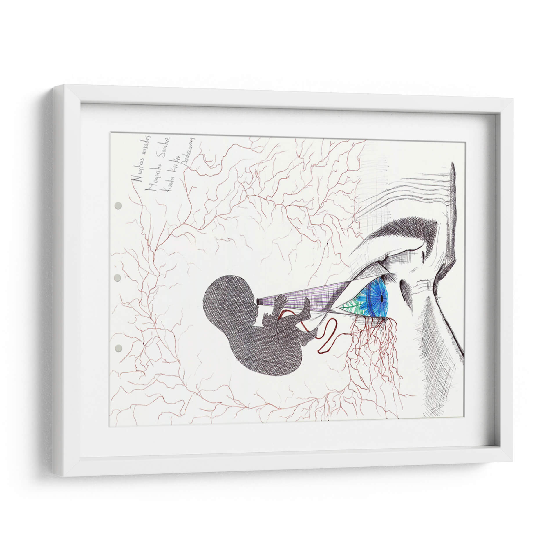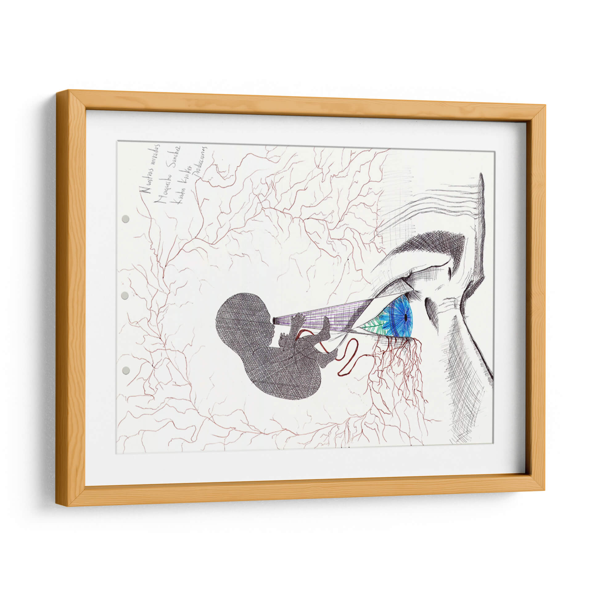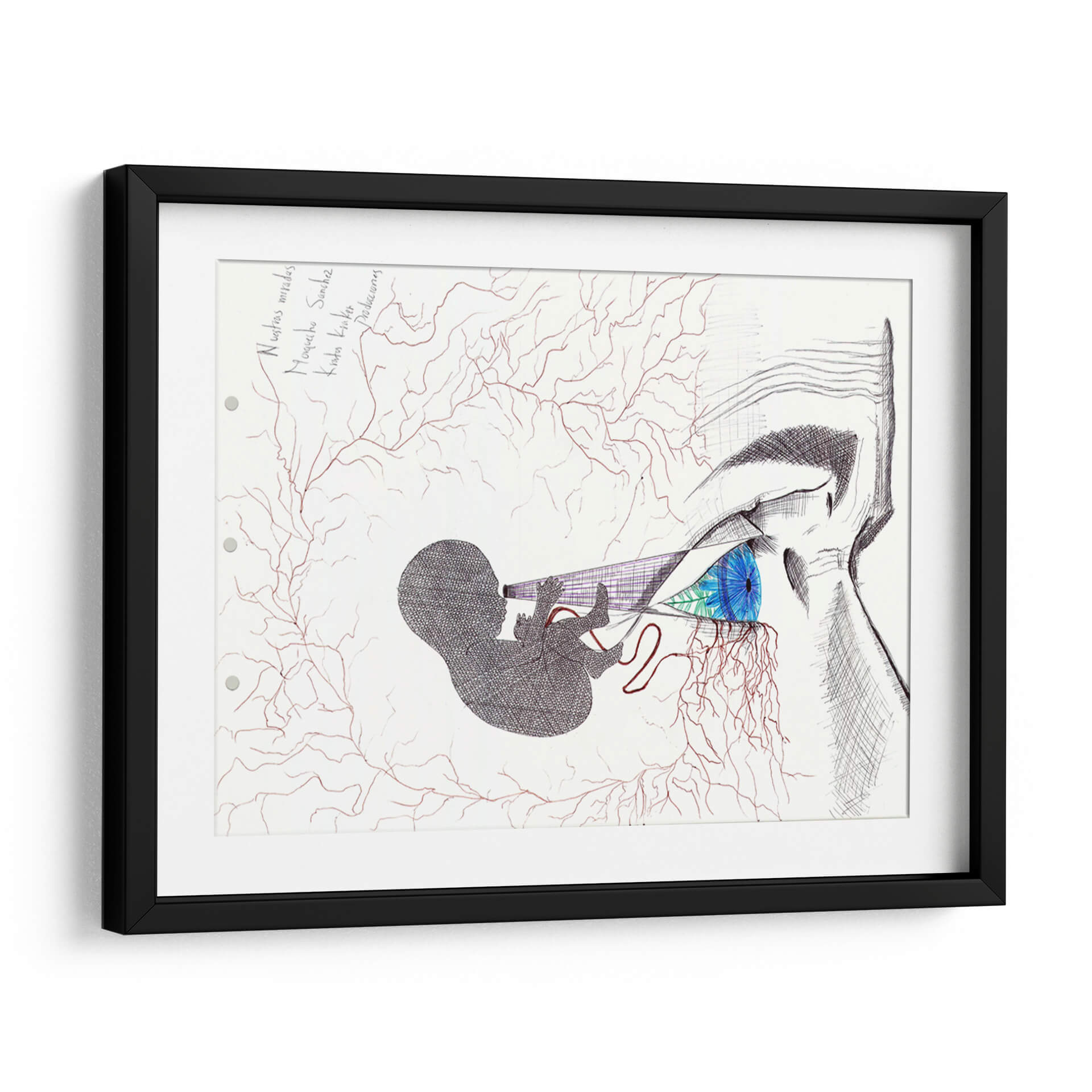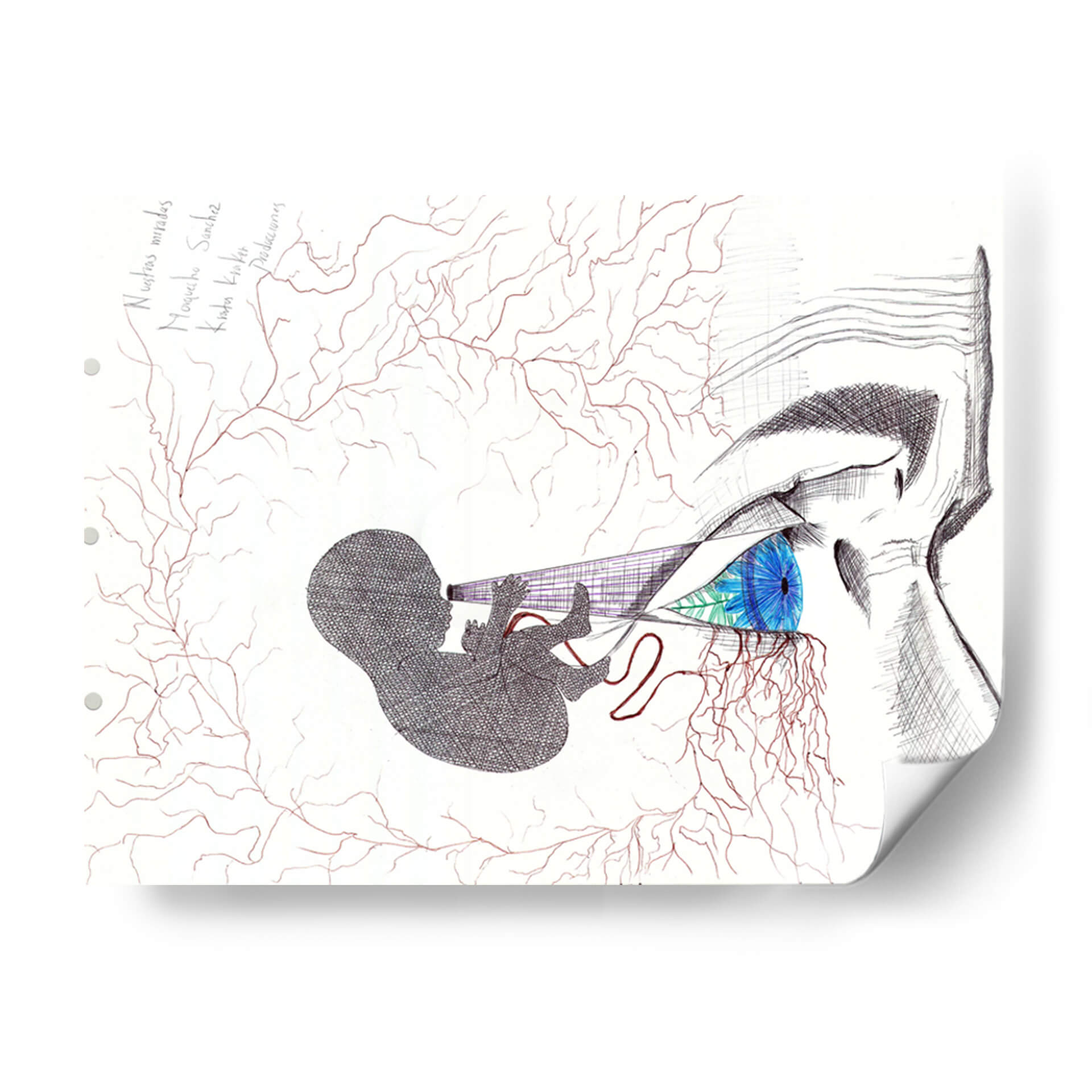 Sumérgete en la profunda conexión humana y la exploración de la identidad con 'Nuestras Miradas', una obra de arte contemporáneo del artista Morquecho Sánchez. Este cuadro decorativo abstracto presenta una composición intrigante que fusiona la silueta de un feto con un ojo humano vibrante, sugiriendo el nacimiento de la conciencia y la interconexión de todas las vidas. La paleta de colores, dominada por el azul eléctrico del iris, contrastado con las sutiles notas verdes y los delicados trazos rojos que evocan un sistema circulatorio o neuronal, crea una atmósfera de misterio y vitalidad. Los detalles en técnica mixta, con sombreados y texturas, aportan profundidad y complejidad visual. Ideal para espacios que buscan un toque de reflexión y originalidad, como un estudio, una oficina o una sala de estar moderna, 'Nuestras Miradas' invita a la contemplación sobre el origen, la percepción y el futuro. Transforma tu pared con esta pieza que no solo decora, sino que también inspira diálogo y pensamiento crítico. Es una adición poderosa a cualquier colección de arte que aprecie lo conceptual y lo visualmente impactante.