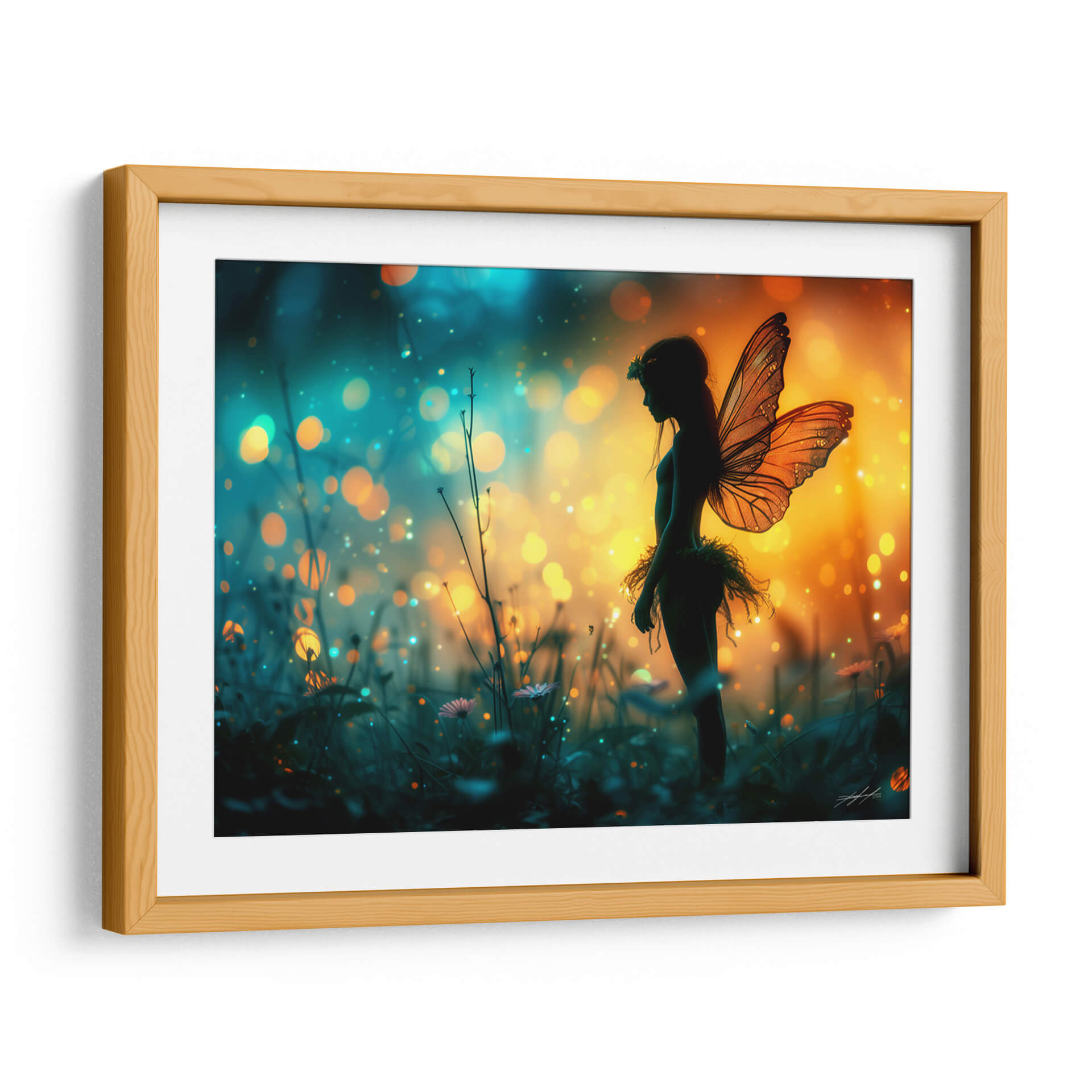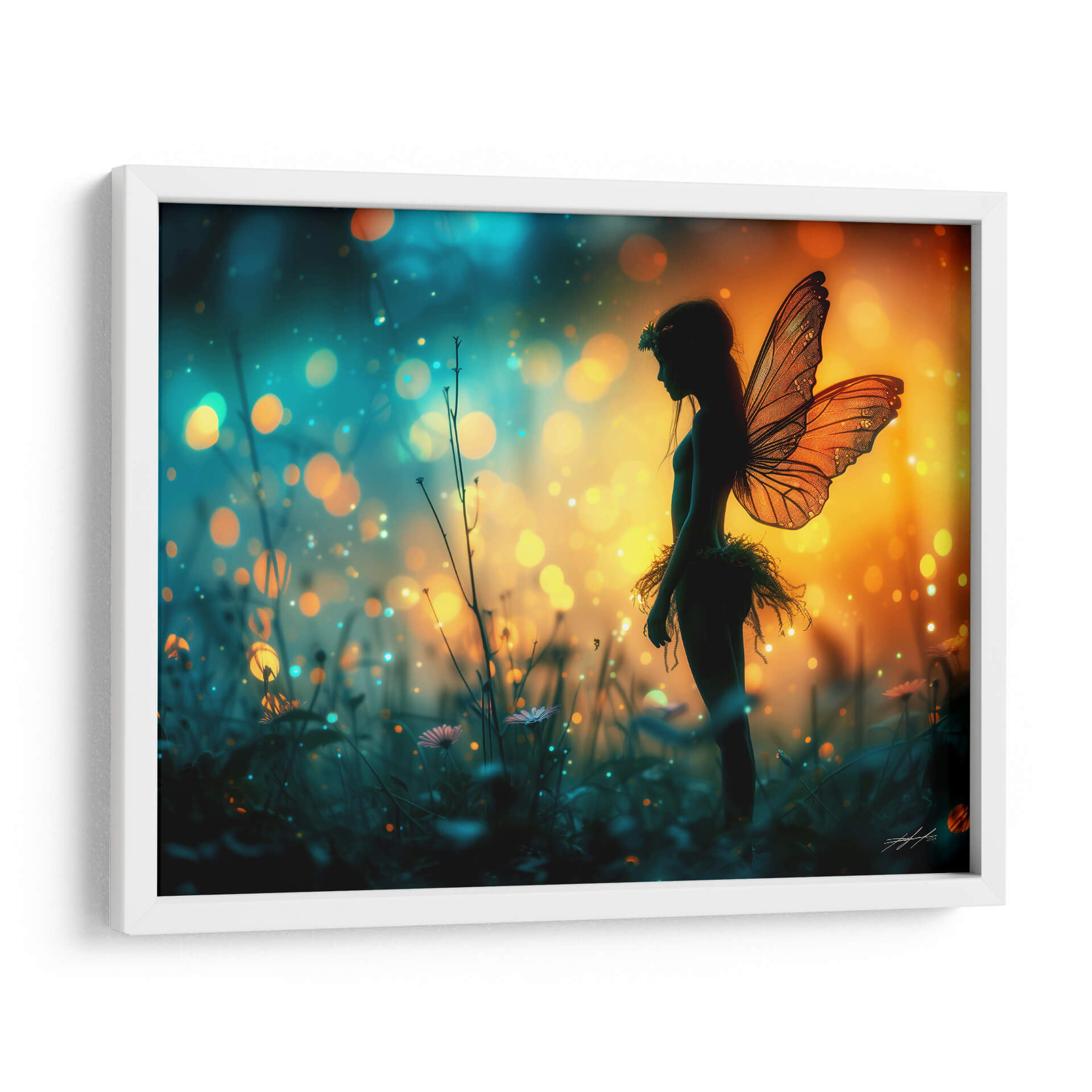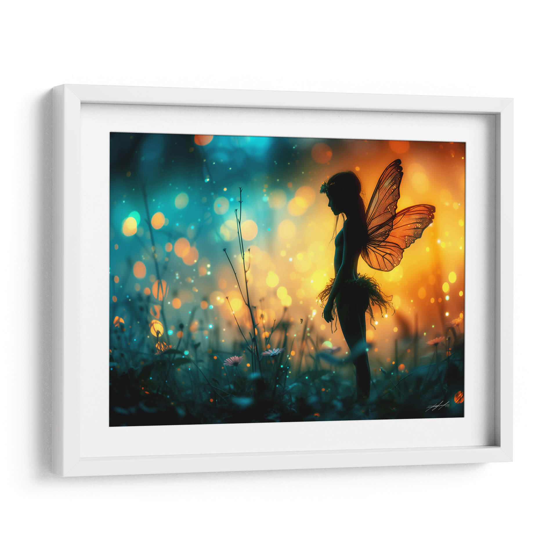 Sumérgete en un mundo de fantasía con 'Sueño de Hadas - 4', una obra de arte digital cautivadora que evoca la magia etérea de un encuentro con criaturas místicas. La pieza presenta la silueta de una figura alada, adornada con una delicada corona de flores, parada en un prado iluminado por una multitud de luces bokeh. El contraste entre los tonos fríos del primer plano, con flores silvestres y tallos esbeltos, y el cálido resplandor anaranjado del fondo crea una atmósfera de ensueño y misterio. Las alas translúcidas de la figura parecen capturar la luz, añadiendo un toque de misticismo. Este cuadro decorativo es perfecto para quienes buscan infundir a su hogar u oficina un aire de encanto y serenidad, sirviendo como un punto focal que invita a la contemplación. Ideal para habitaciones temáticas, espacios creativos o cualquier rincón que necesite un toque de magia y sofisticación. Integra este lienzo en tu decoración para transformar cualquier estancia en un santuario de imaginación y belleza.