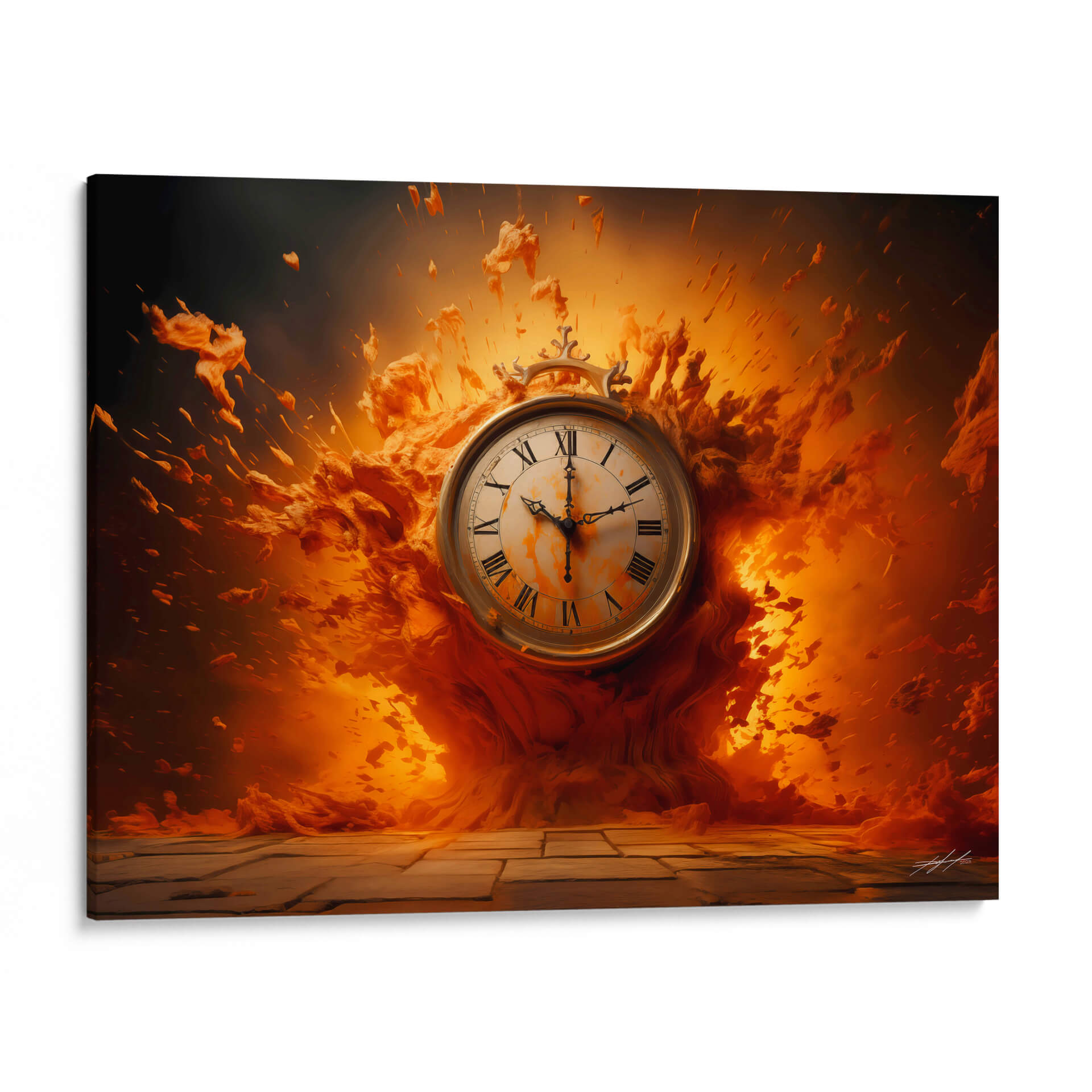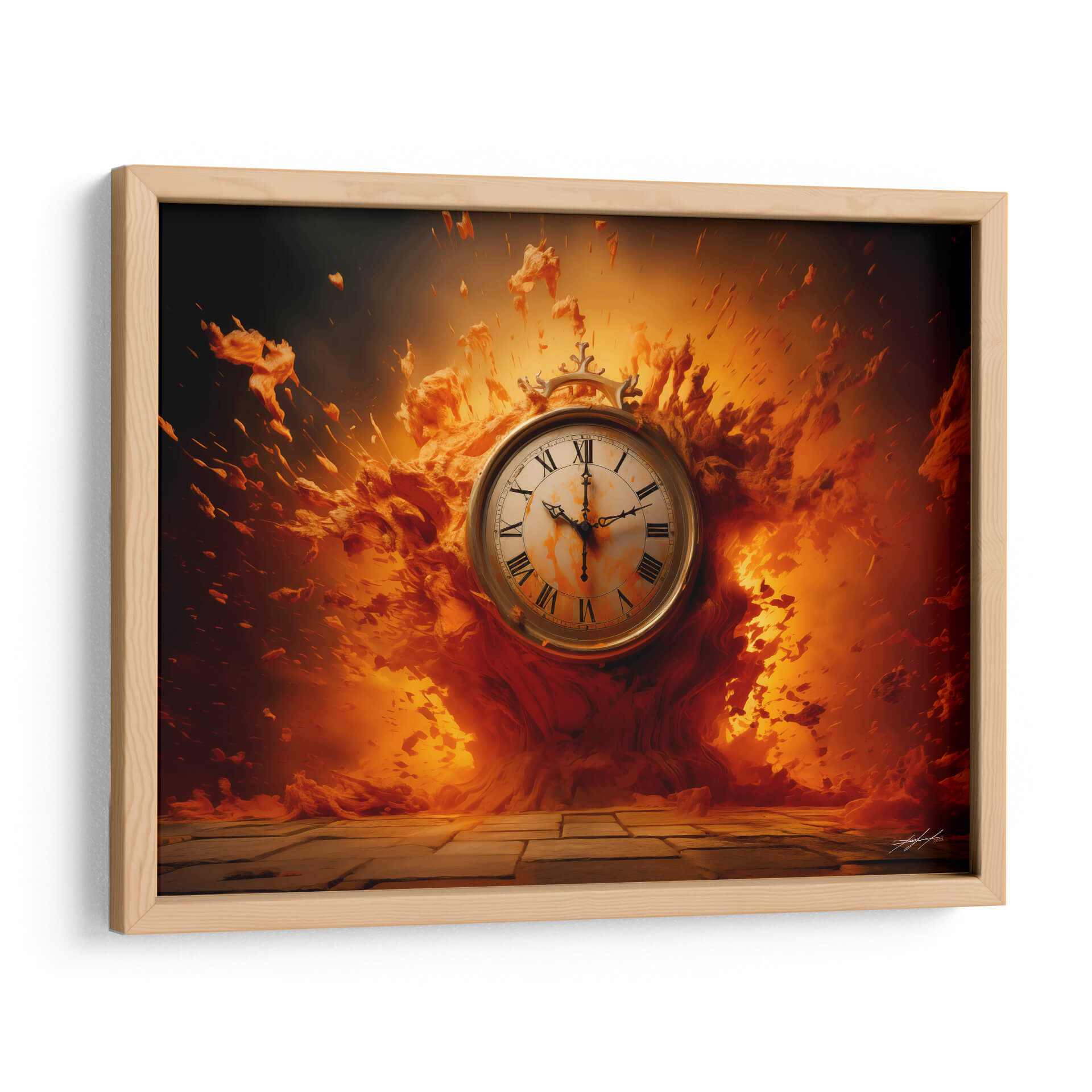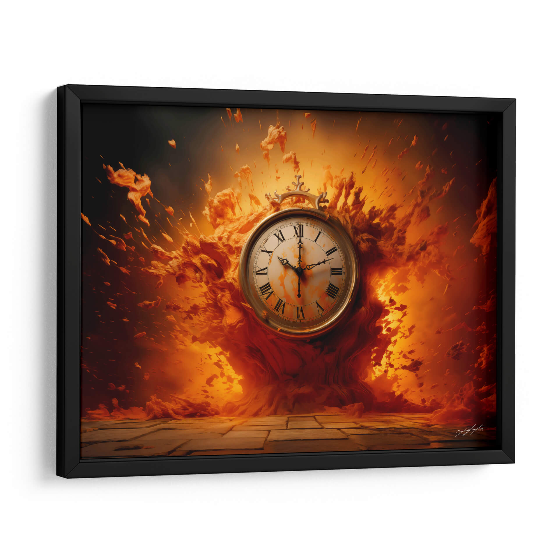 Sumérgete en la intensidad y el paso inexorable del tiempo con "Tiempo - 5" de DeLaVegaGaming, una obra de arte digital que captura la esencia de la fugacidad y la fuerza de los momentos. Este cuadro decorativo presenta un reloj de bolsillo antiguo, símbolo clásico del tiempo, envuelto en una explosión vibrante de texturas anaranjadas y rojas. La paleta de colores cálidos y ardientes, que va desde el dorado del reloj hasta los tonos fuego que lo rodean, crea una atmósfera dinámica y enérgica, evocando la pasión y la urgencia. La composición, con el reloj como punto focal central y una explosión que se expande a su alrededor, sugiere la naturaleza transformadora y a veces caótica del tiempo. El fondo oscuro contrasta con la luminosidad del elemento central, atrayendo la mirada hacia el corazón de la pieza. Ideal para espacios modernos y audaces, este cuadro decorativo no solo añade un toque de color impactante, sino que también invita a la reflexión sobre la importancia de cada instante. Añade una dosis de dramatismo y conciencia temporal a tu hogar u oficina con esta pieza única.
