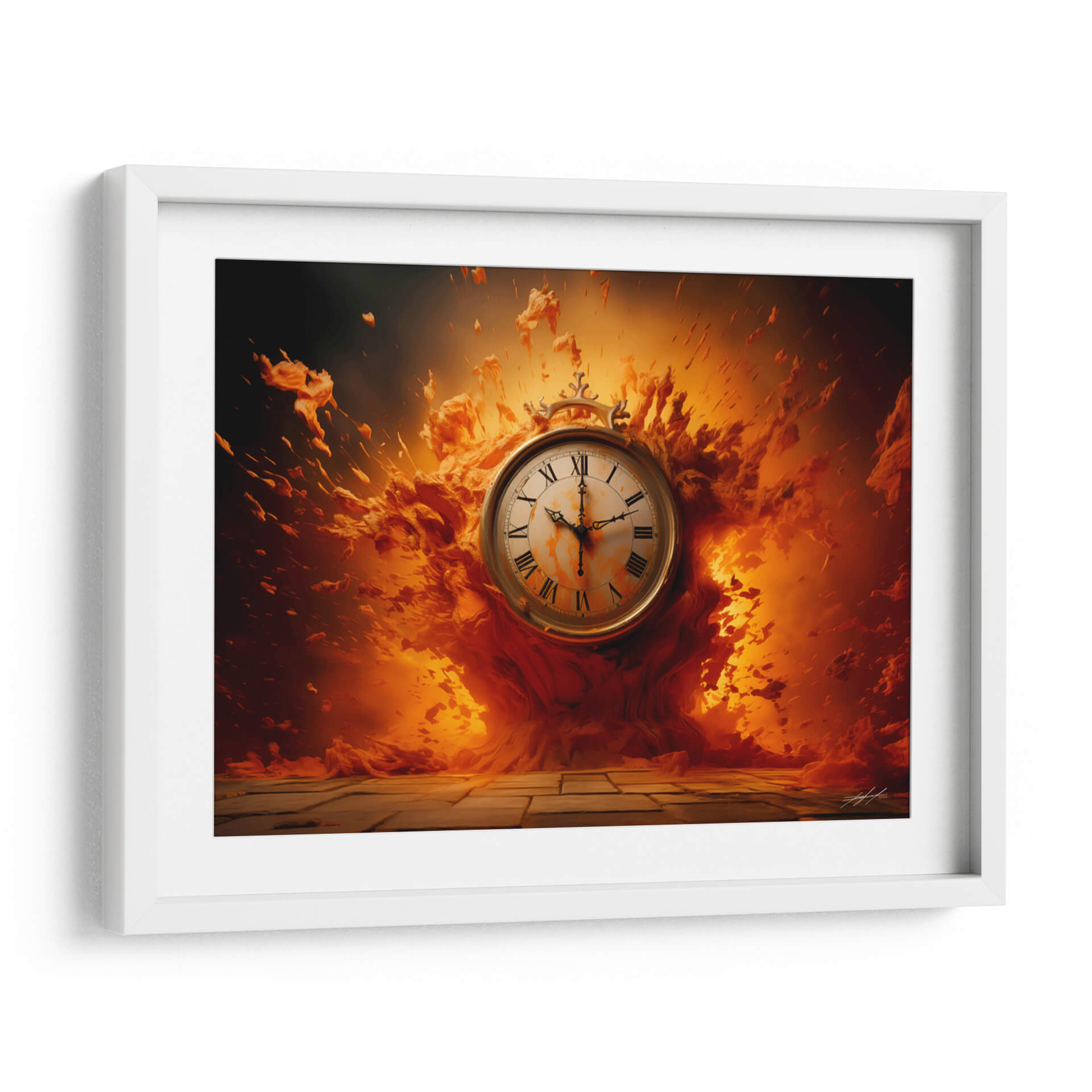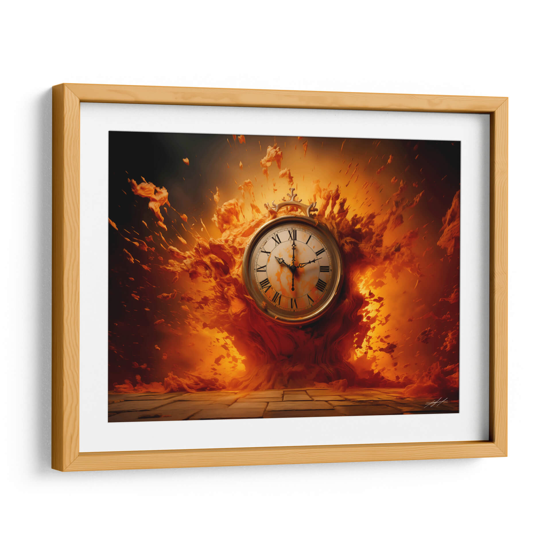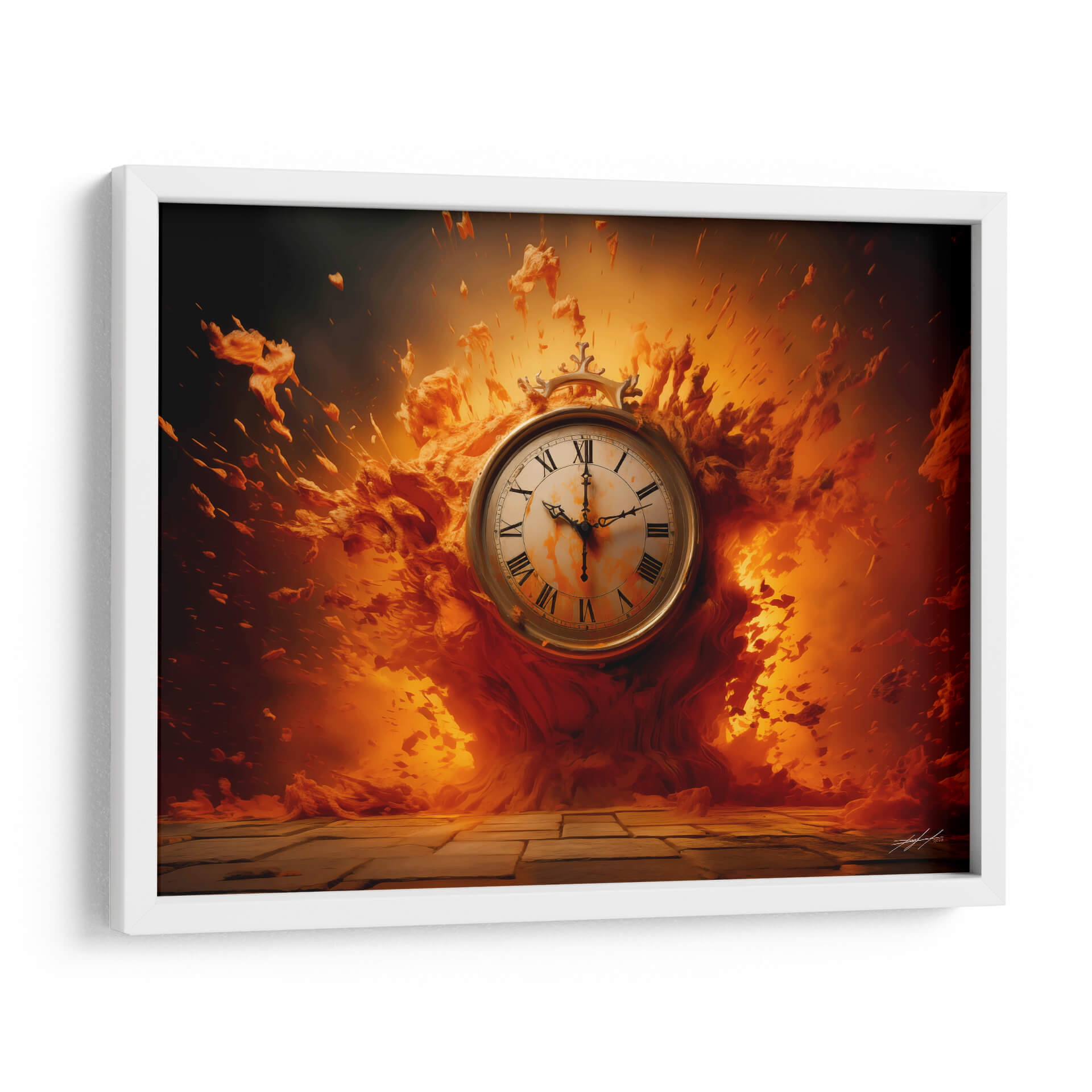 Sumérgete en la intensidad y el paso inexorable del tiempo con "Tiempo - 5" de DeLaVegaGaming, una obra de arte digital que captura la esencia de la fugacidad y la fuerza de los momentos. Este cuadro decorativo presenta un reloj de bolsillo antiguo, símbolo clásico del tiempo, envuelto en una explosión vibrante de texturas anaranjadas y rojas. La paleta de colores cálidos y ardientes, que va desde el dorado del reloj hasta los tonos fuego que lo rodean, crea una atmósfera dinámica y enérgica, evocando la pasión y la urgencia. La composición, con el reloj como punto focal central y una explosión que se expande a su alrededor, sugiere la naturaleza transformadora y a veces caótica del tiempo. El fondo oscuro contrasta con la luminosidad del elemento central, atrayendo la mirada hacia el corazón de la pieza. Ideal para espacios modernos y audaces, este cuadro decorativo no solo añade un toque de color impactante, sino que también invita a la reflexión sobre la importancia de cada instante. Añade una dosis de dramatismo y conciencia temporal a tu hogar u oficina con esta pieza única.