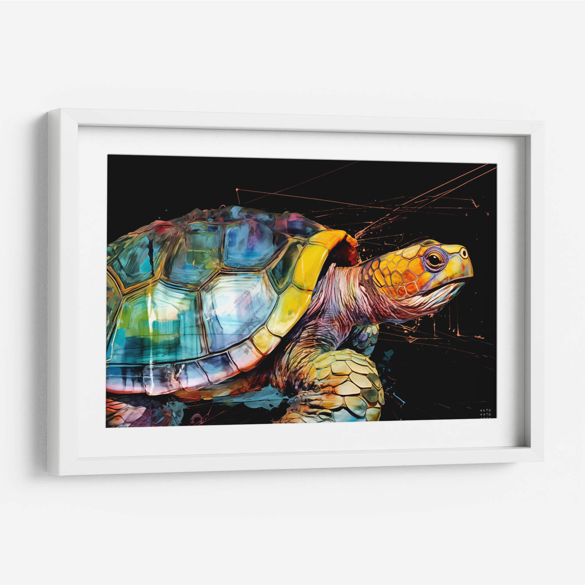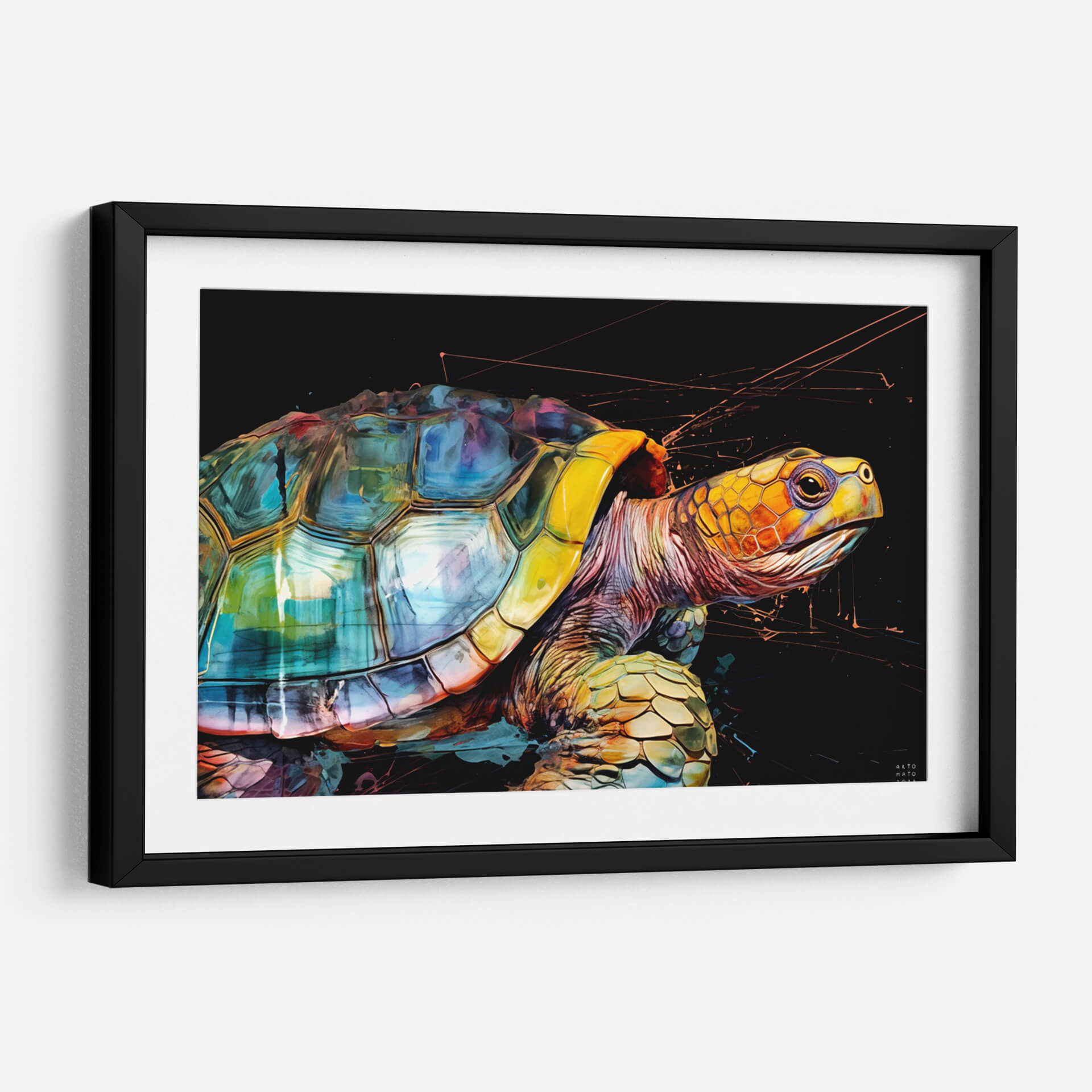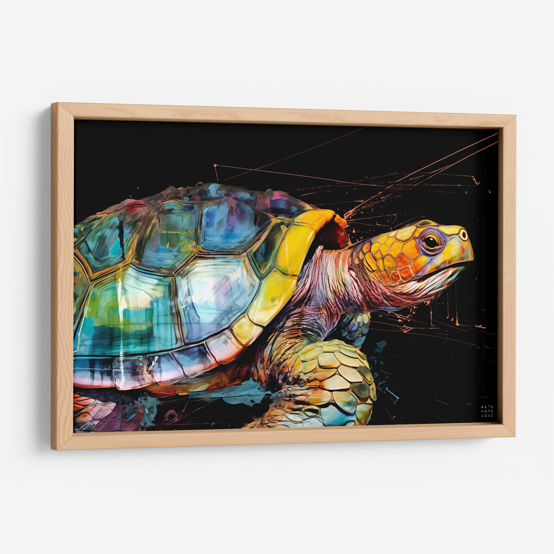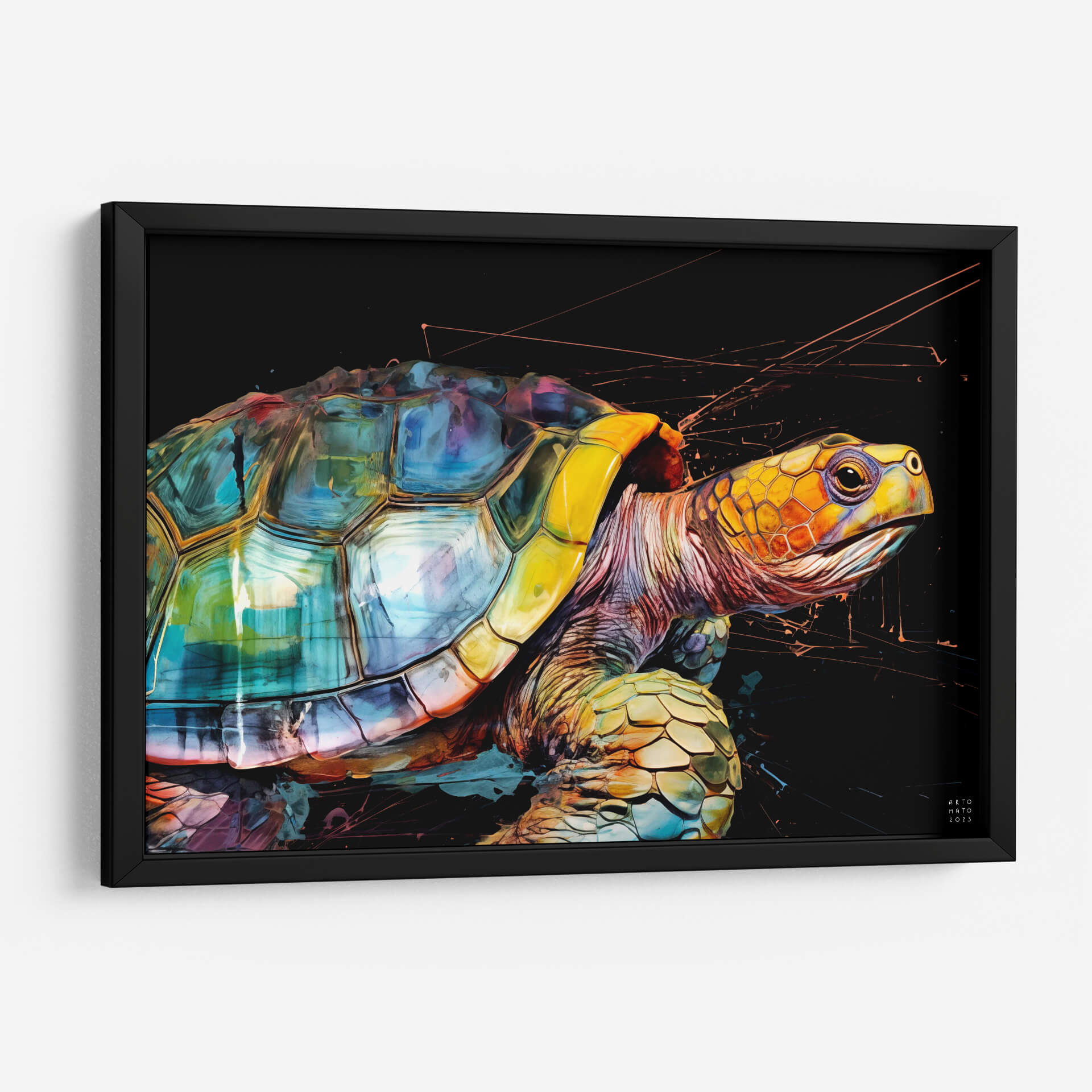Sumérgete en la majestuosidad de la naturaleza con este cautivador cuadro decorativo de una tortuga terrestre, una obra de arte contemporáneo que evoca profundidad y vitalidad. La pieza se centra en una tortuga, representada con una técnica vibrante y expresiva que resalta las texturas y los colores de su caparazón y piel. La paleta de colores es un festín visual, con tonos azules, verdes, amarillos y naranjas que se entrelazan, creando un efecto luminoso y dinámico contra el fondo negro intenso. Las pinceladas audaces y las salpicaduras de pintura añaden un toque de energía y movimiento, sugiriendo la vitalidad intrínseca de la criatura. Este cuadro decorativo es perfecto para quienes buscan añadir un elemento de la naturaleza con un giro artístico y moderno a su hogar u oficina. Ideal para salas de estar, estudios o dormitorios, esta obra de arte transformará cualquier espacio en un santuario de estilo y serenidad. Es una pieza que invita a la reflexión sobre la resistencia y la belleza del mundo natural, presentada a través de una visión artística única y audaz que capturará la atención de todos tus invitados. Un detalle exquisito para coleccionistas de arte y amantes de la vida silvestre.