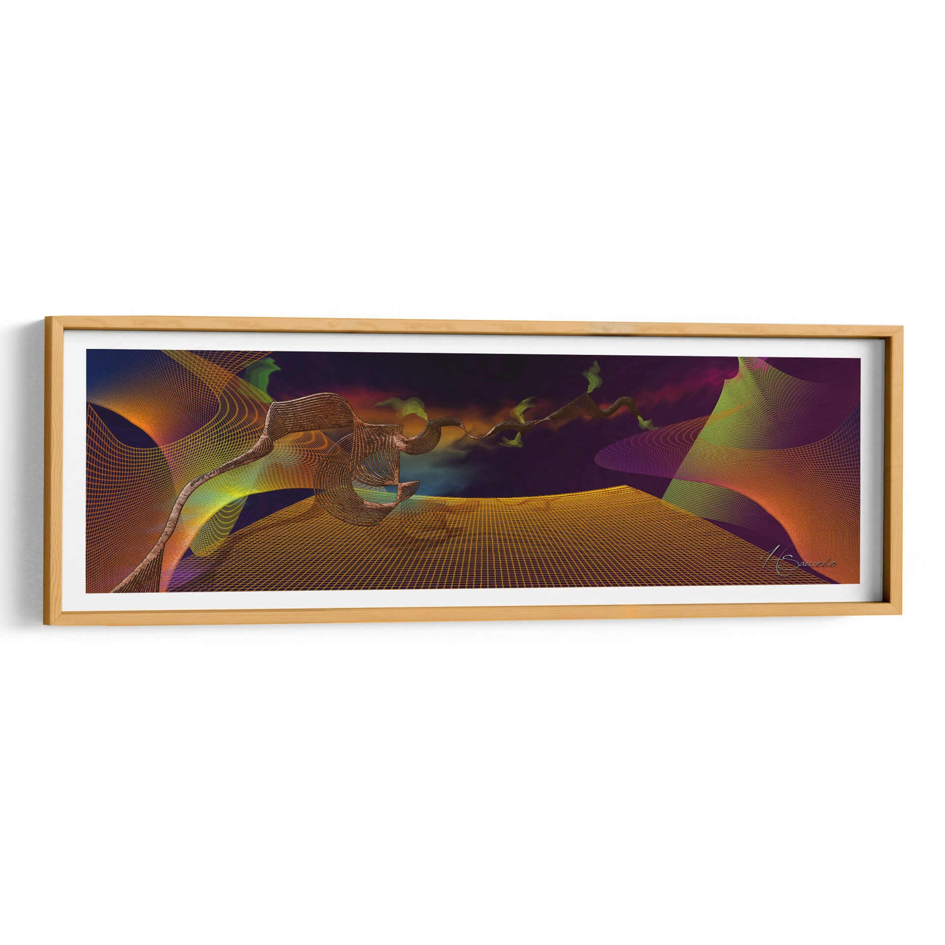 Sumérgete en la evocadora obra 'Tranquilidad' de HSaucedo, una pieza de arte digital que trasciende lo ordinario para ofrecer una experiencia visual única. Esta composición abstracta se despliega como un paisaje etéreo, donde finas mallas de líneas naranjas y doradas crean formas orgánicas y estructuras tridimensionales que flotan sobre un fondo de cielo nocturno teñido de púrpuras y azules profundos. Las transiciones de color, desde el verde neón hasta el naranja vibrante, añaden dinamismo y una sensación de movimiento constante, mientras que las texturas sugeridas evocan materiales nobles y futuristas. La obra transmite una profunda sensación de calma y contemplación, invitando al espectador a perderse en sus intrincados detalles. Ideal para espacios que buscan un toque de sofisticación moderna y serenidad, este cuadro decorativo se convierte en un punto focal que estimula la imaginación y aporta una atmósfera de paz y reflexión a cualquier hogar u oficina. El estilo único de HSaucedo fusiona la precisión geométrica con la fluidez orgánica, resultando en una pieza que es a la vez desafiante y armoniosa, perfecta para quienes aprecian el arte contemporáneo innovador.