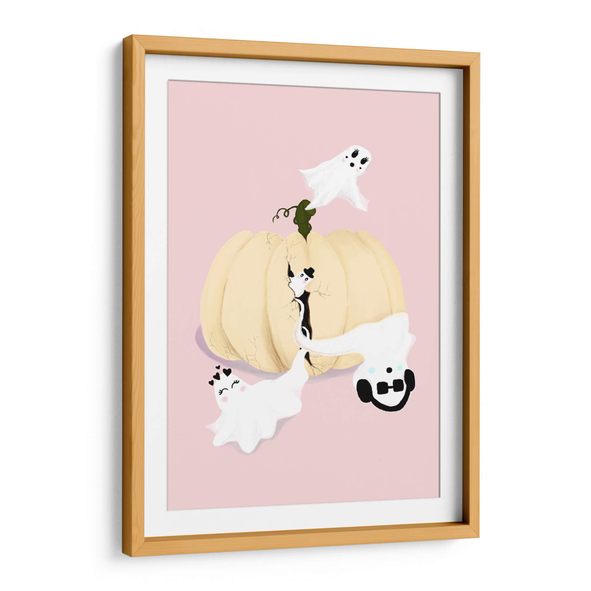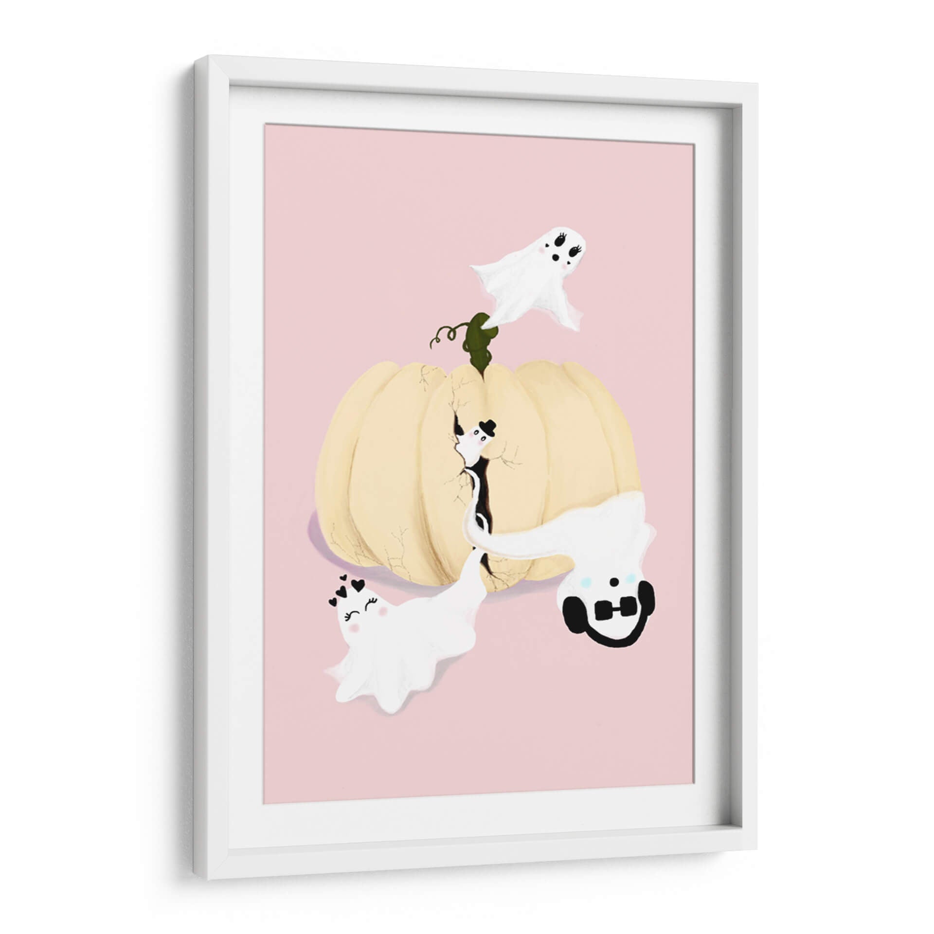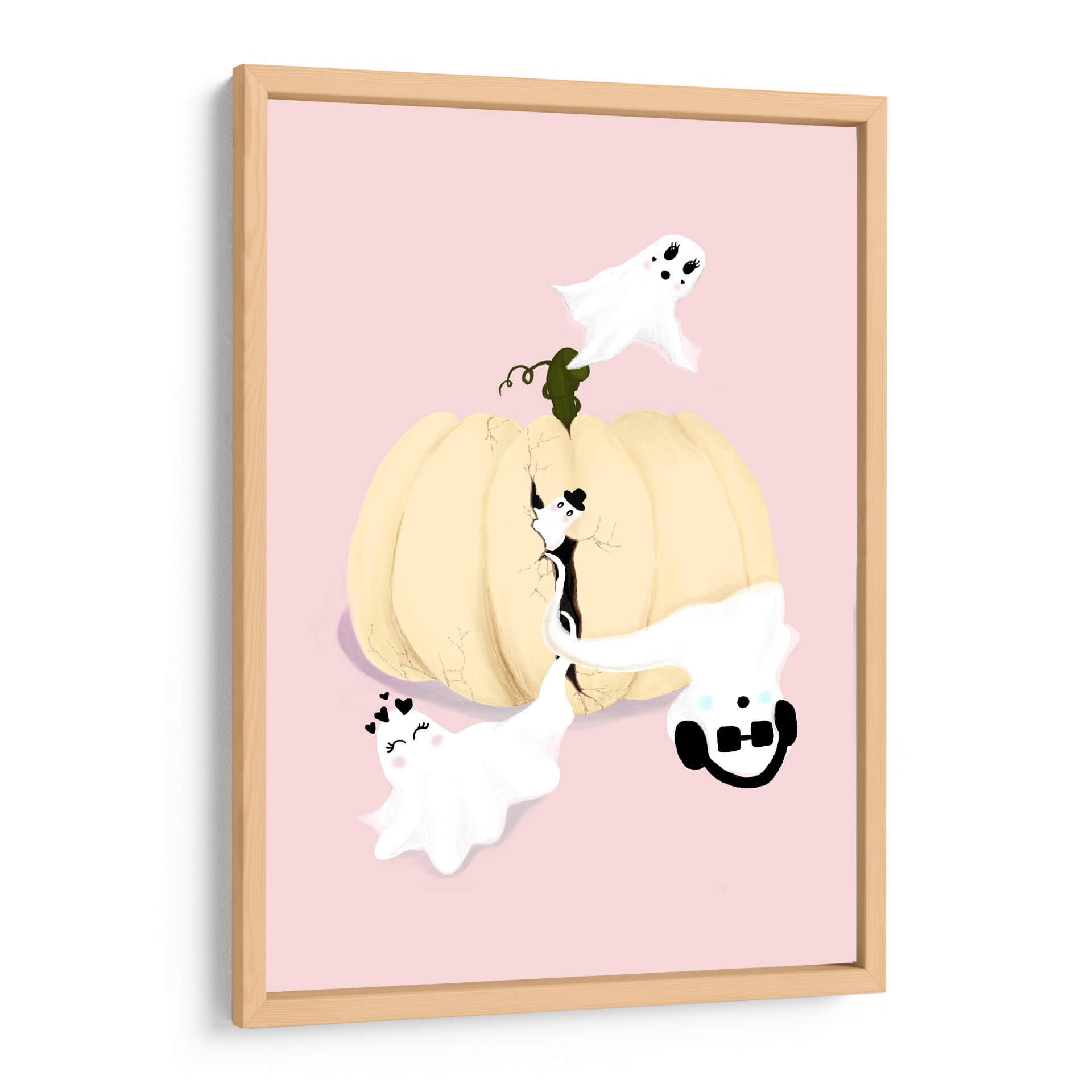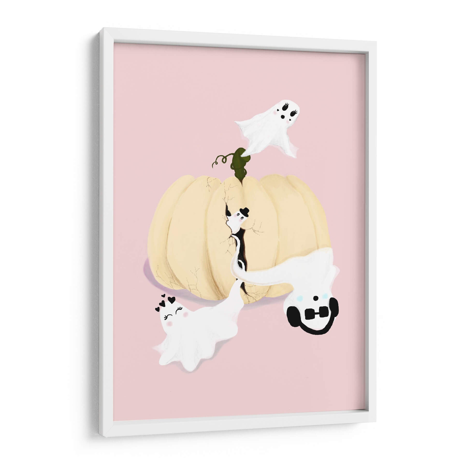 Celebra la temporada otoñal y la diversión con este encantador cuadro decorativo "Cucú". La obra presenta una paleta de colores suaves y alegres, dominada por un fondo rosa pastel que evoca ternura y calidez. En el centro, una calabaza de tonos crema, ligeramente agrietada, sirve de escenario para la aparición juguetona de simpáticos fantasmas. Estos espíritus etéreos, representados con expresiones adorables y detalles como corazones y un pequeño sombrero de copa, parecen interactuar con la calabaza de una manera lúdica y misteriosa. El estilo artístico es moderno y estilizado, con líneas limpias y un toque de ilustración infantil que lo hace accesible y encantador. Ideal para añadir un toque de personalidad y un aire festivo a cualquier habitación, este cuadro es perfecto para espacios que buscan transmitir alegría y un sentido de la fantasía. Colócalo en la sala de estar, un dormitorio o incluso en la habitación de los niños para crear un ambiente acogedor y lleno de imaginación, perfecto para la época de Halloween o para todo el año si te encanta lo peculiar y dulce.