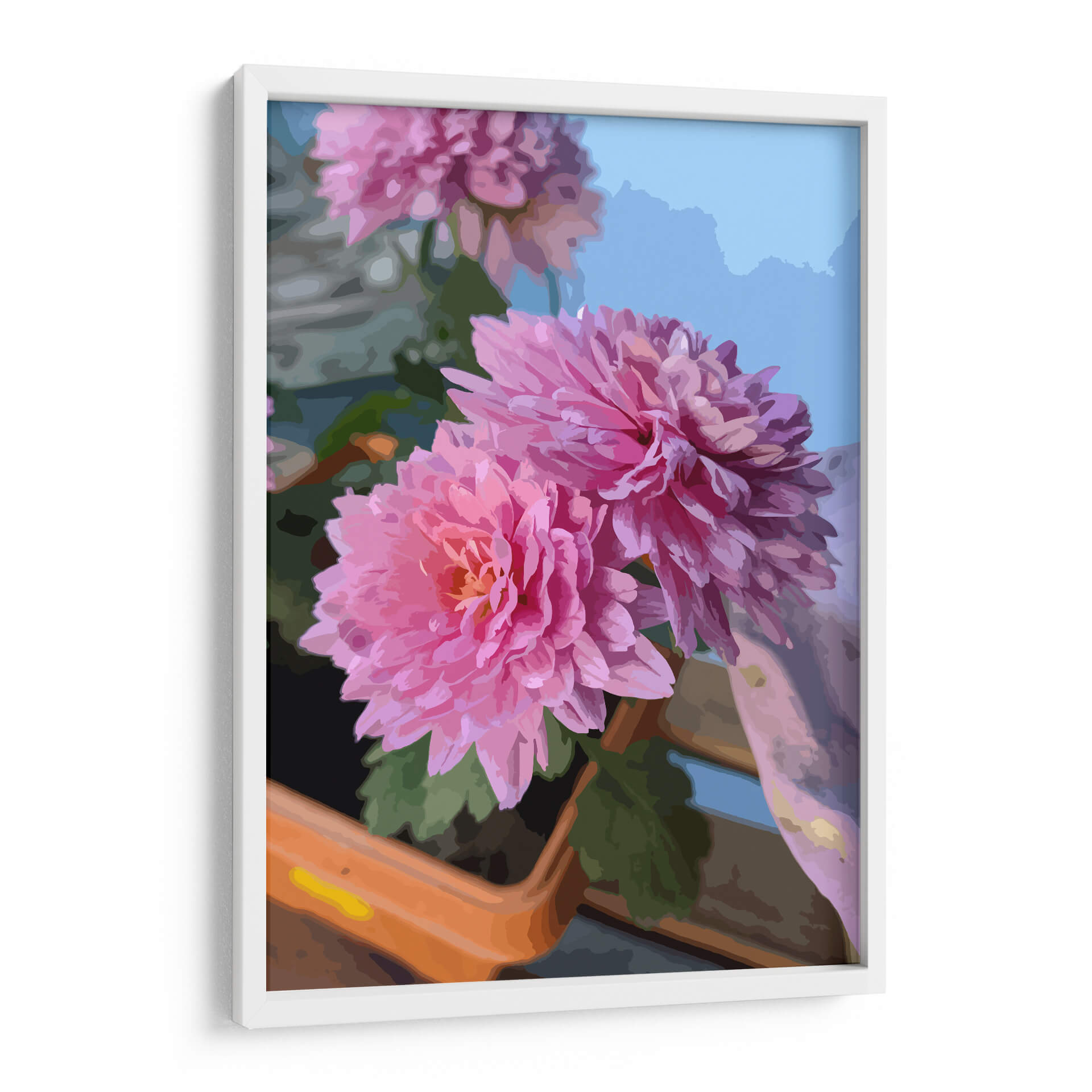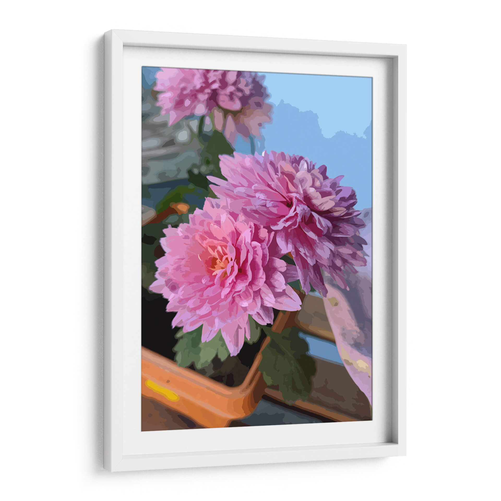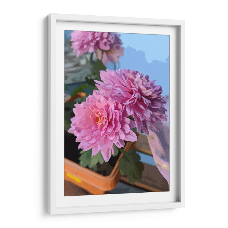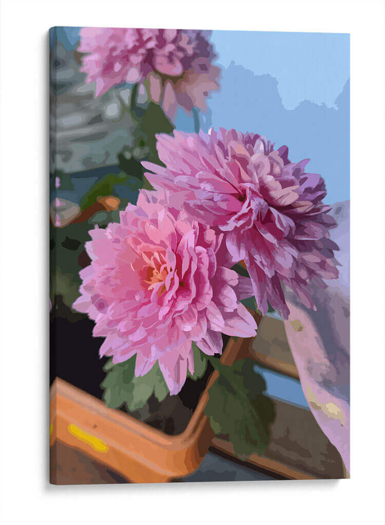 Sumérgete en la delicadeza y la belleza natural con este cautivador cuadro decorativo de flores rosas, titulado 'Flores rosas' y creado por el artista Jabin Adiel. La obra captura la esencia vibrante de los crisantemos en plena floración, presentando sus pétalos rosados y púrpuras en un primer plano detallado que invita a la contemplación. La paleta de colores, dominada por tonos rosados, verdes y un sutil fondo azul cielo, crea una atmósfera de serenidad y frescura, ideal para infundir vida y color en cualquier espacio. El estilo artístico, con sus contornos definidos y un tratamiento digital que resalta la textura de las flores, aporta un toque contemporáneo a la representación floral. Este cuadro decorativo es perfecto para añadir un punto focal de elegancia y tranquilidad a salas de estar, dormitorios o incluso estudios. Su composición detallada y la representación artística de la naturaleza lo convierten en una pieza versátil que complementa una amplia gama de estilos de decoración, desde el moderno hasta el más clásico. Deja que la frescura y la vivacidad de estas flores transformen tu hogar en un oasis de paz y belleza.