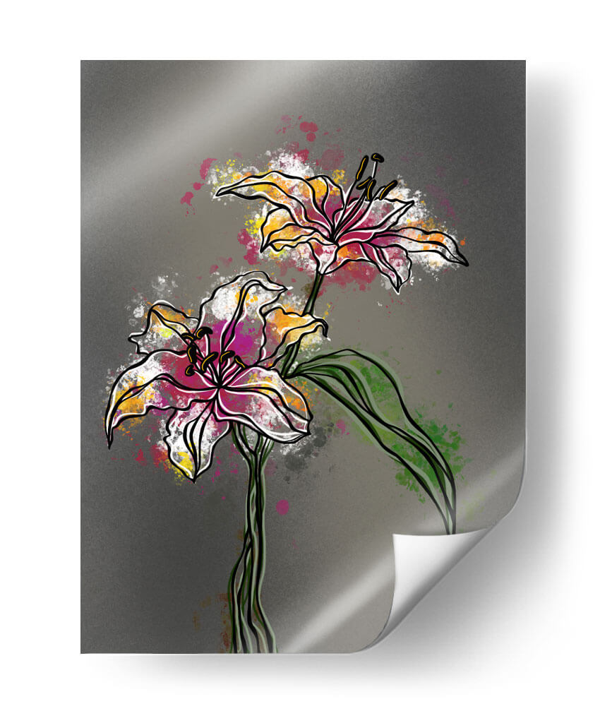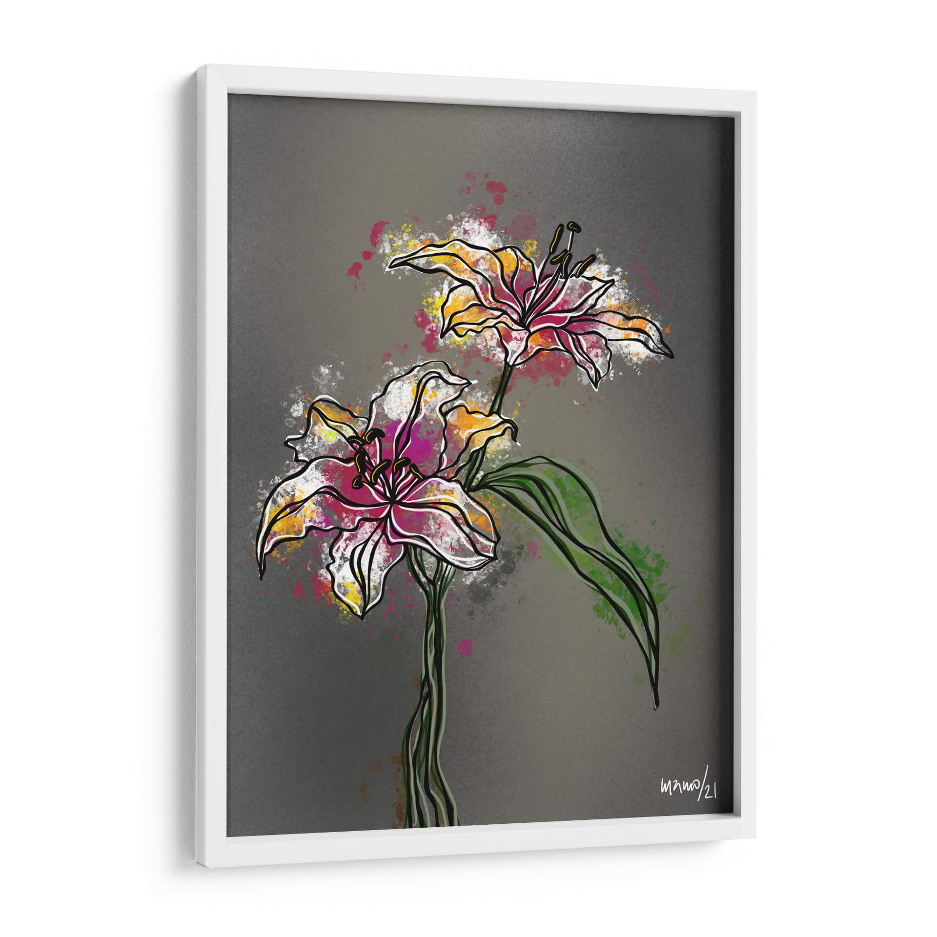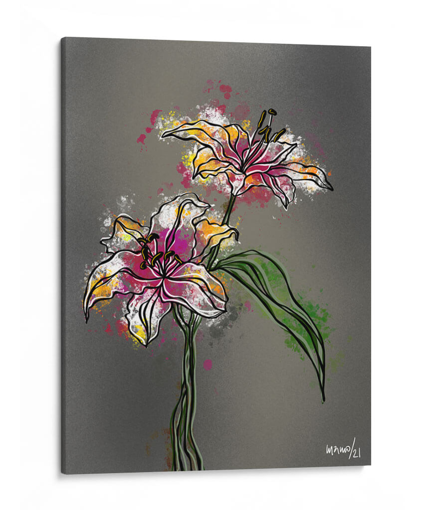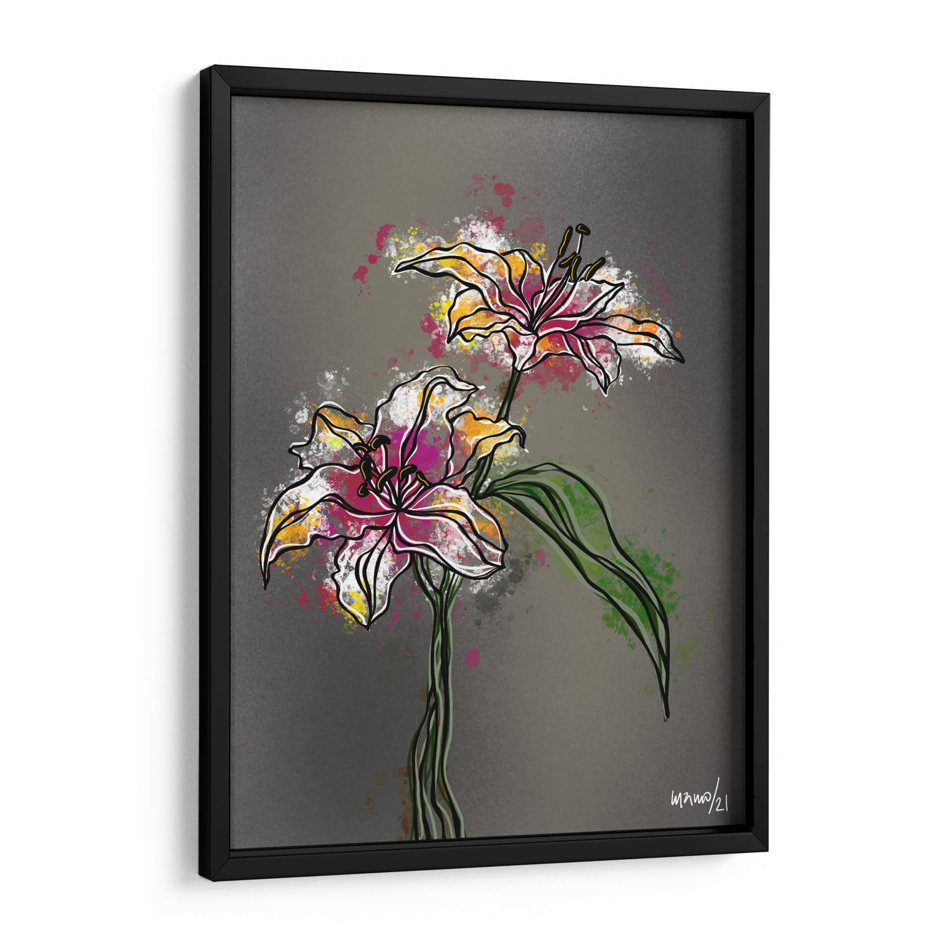 Embellece tu hogar con "Las Flores 1", una cautivadora obra de arte de Gina Villalobos que captura la delicadeza de la naturaleza con un toque contemporáneo. Esta pieza presenta dos lirios estilizados, cuyas formas orgánicas y contornos definidos se realzan con vibrantes salpicaduras de color en tonos fucsia, amarillo y blanco, contrastando elegantemente sobre un fondo gris neutro y texturizado. La técnica de dibujo lineal, combinada con la aplicación expresiva de color, confiere a la obra una energía dinámica y moderna, evocando una sensación de belleza efímera y vitalidad. Ideal para espacios que buscan un acento de color y sofisticación, este cuadro decorativo es perfecto para salas de estar, dormitorios o incluso oficinas, aportando un toque de frescura y elegancia. Las líneas fluidas y la composición equilibrada invitan a la contemplación, convirtiendo "Las Flores 1" en un punto focal que inspira y embellece cualquier ambiente. Descubre cómo este arte mural puede transformar tu decoración y reflejar tu aprecio por el arte floral moderno.