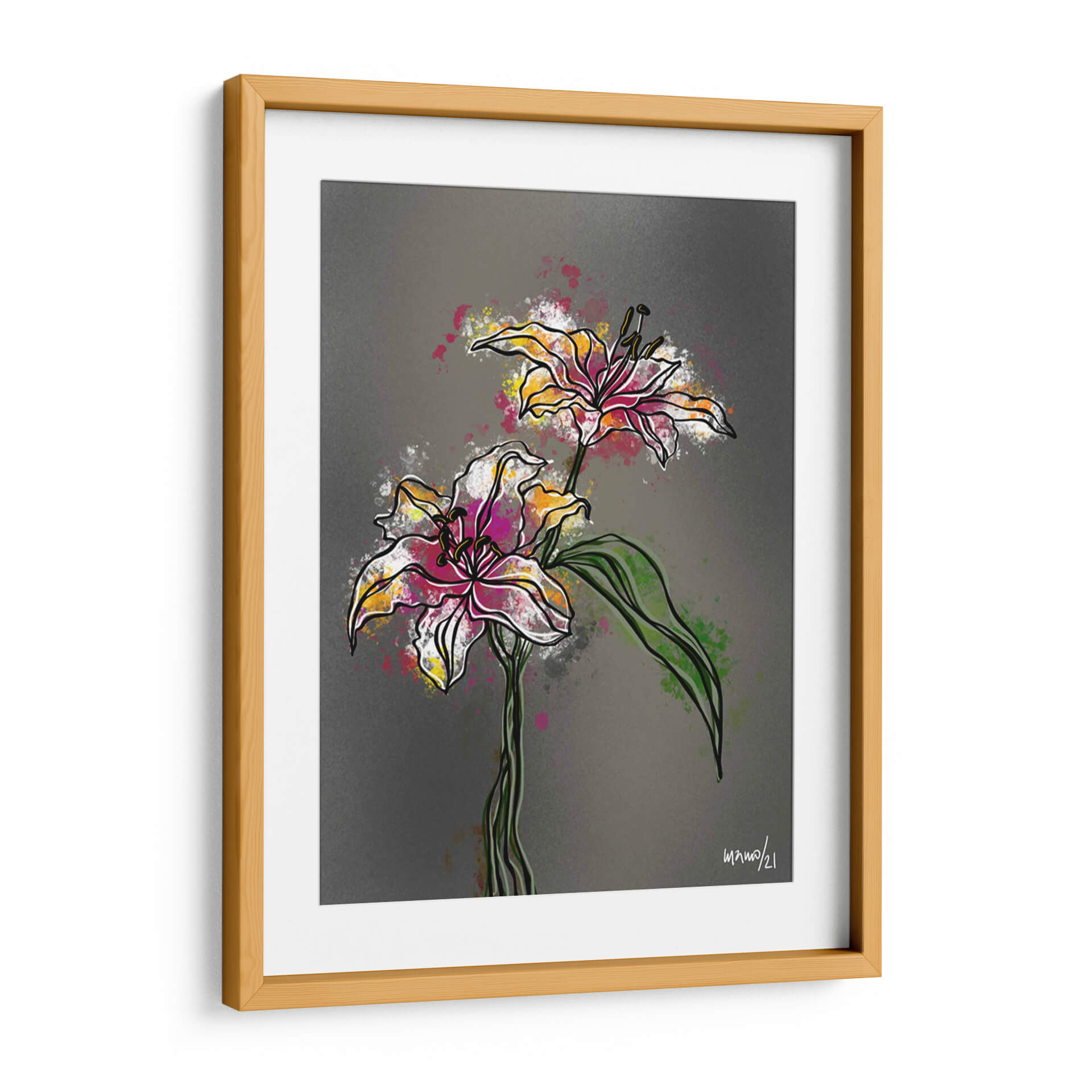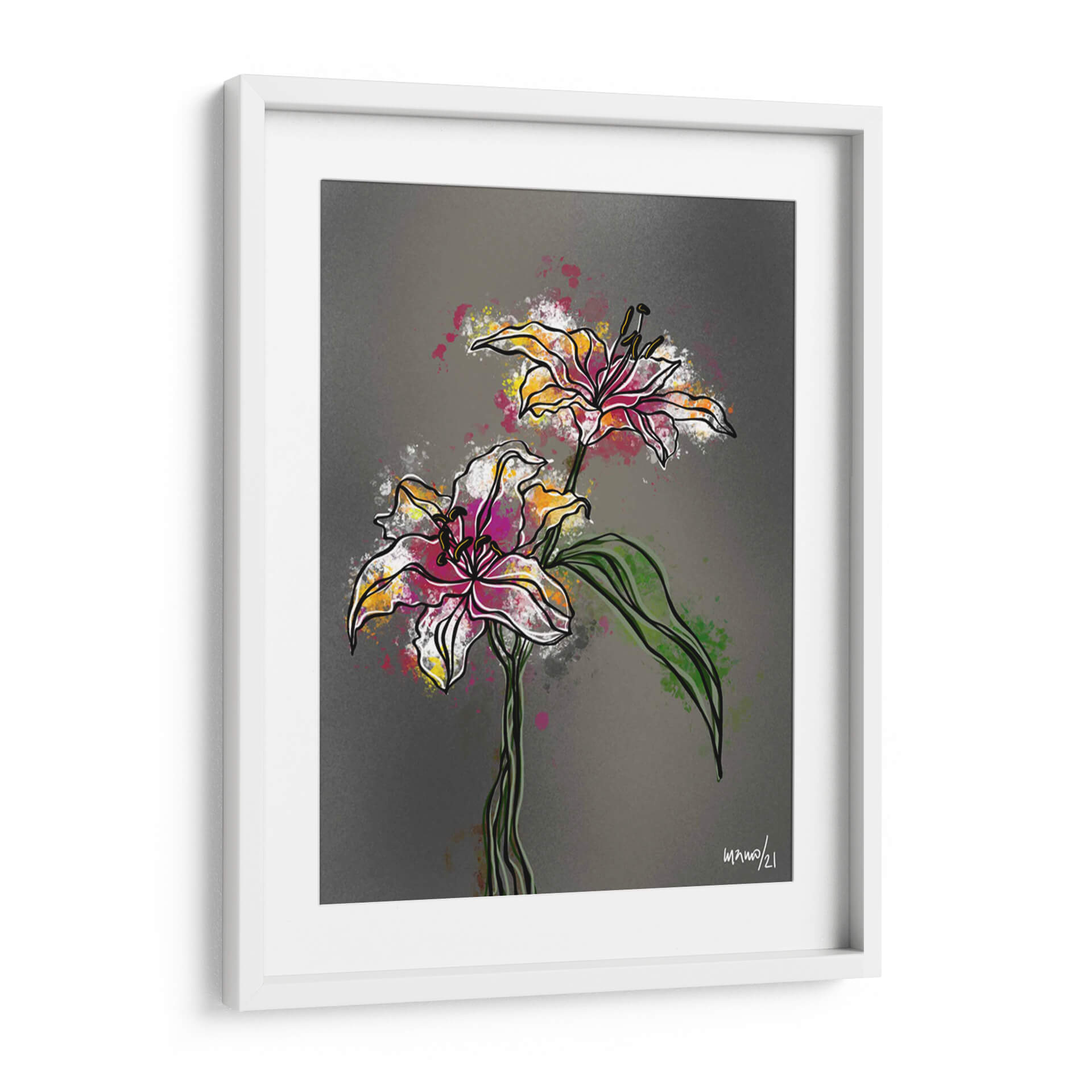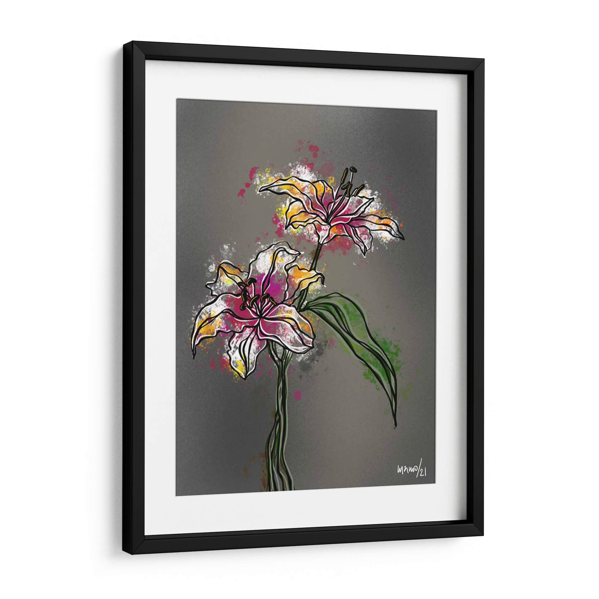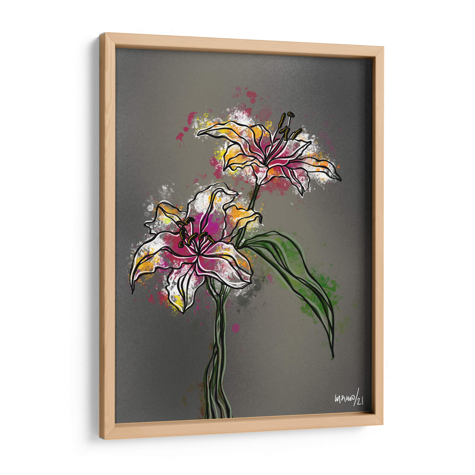 Embellece tu hogar con "Las Flores 1", una cautivadora obra de arte de Gina Villalobos que captura la delicadeza de la naturaleza con un toque contemporáneo. Esta pieza presenta dos lirios estilizados, cuyas formas orgánicas y contornos definidos se realzan con vibrantes salpicaduras de color en tonos fucsia, amarillo y blanco, contrastando elegantemente sobre un fondo gris neutro y texturizado. La técnica de dibujo lineal, combinada con la aplicación expresiva de color, confiere a la obra una energía dinámica y moderna, evocando una sensación de belleza efímera y vitalidad. Ideal para espacios que buscan un acento de color y sofisticación, este cuadro decorativo es perfecto para salas de estar, dormitorios o incluso oficinas, aportando un toque de frescura y elegancia. Las líneas fluidas y la composición equilibrada invitan a la contemplación, convirtiendo "Las Flores 1" en un punto focal que inspira y embellece cualquier ambiente. Descubre cómo este arte mural puede transformar tu decoración y reflejar tu aprecio por el arte floral moderno.
