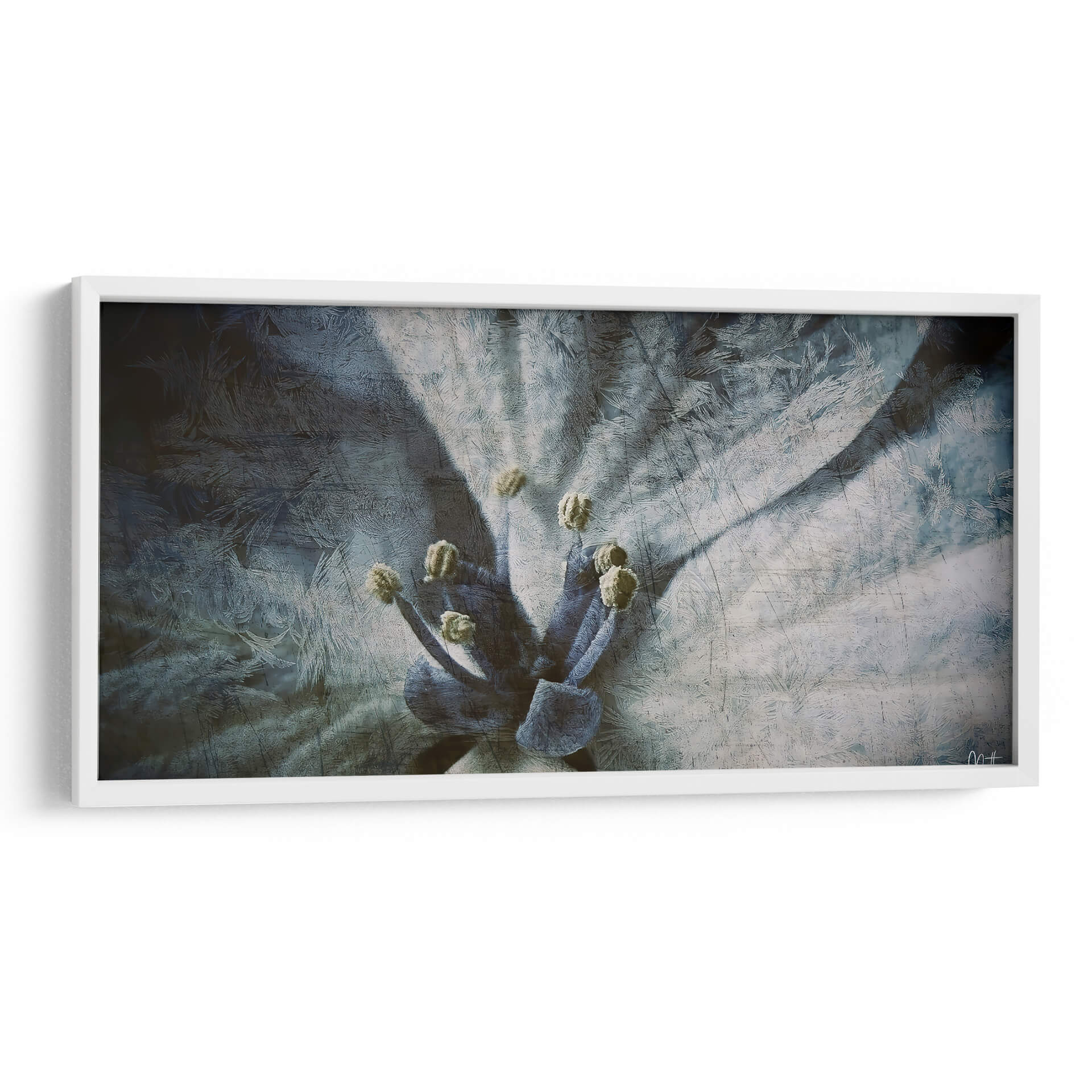 Sumérgete en la serenidad invernal con 'Love In Winter', una obra de arte contemporáneo que captura la delicadeza de la naturaleza en su máxima expresión. Este cuadro decorativo, inspirado en la belleza efímera de las flores bajo el frío, te transportará a un mundo de texturas sutiles y una paleta de colores que oscila entre los azules profundos, grises plomizos y toques de blanco helado. La composición íntima de la obra, un primer plano de los estambres de una flor, evoca una sensación de introspección y calma, perfecta para añadir un toque de contemplación a tu espacio. Las sombras proyectadas añaden profundidad y misterio, invitando a la reflexión. El estilo artístico, con una pátina que sugiere el paso del tiempo o la textura del hielo, le confiere una cualidad atemporal y sofisticada. Ideal para salones modernos, dormitorios que buscan tranquilidad o incluso oficinas que necesiten un elemento visual inspirador. 'Love In Winter' no es solo una decoración, es una invitación a sentir la belleza silenciosa del invierno.