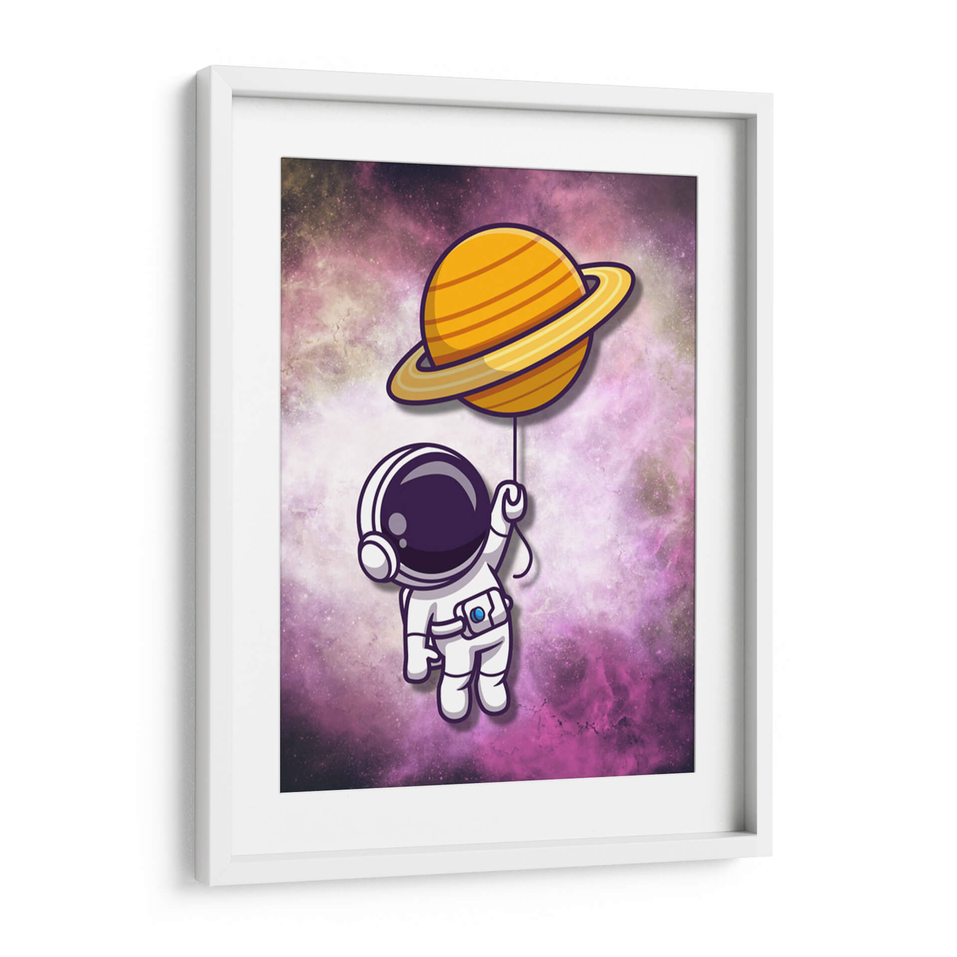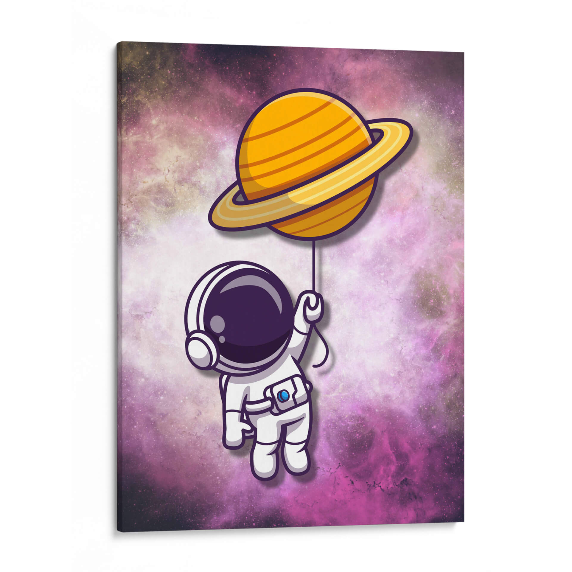 Embárcate en un viaje cósmico con "Globo Saturno", una obra de arte digital que captura la imaginación y la maravilla del espacio. Este cautivador cuadro decorativo presenta a un adorable astronauta, con un diseño de estilo caricatura, flotando serenamente en el universo, sosteniendo como un globo un vibrante planeta Saturno con sus icónicos anillos. El fondo es un tapiz de nebulosas en tonos púrpura, rosa y amarillo, salpicado de estrellas, que evoca la inmensidad y el misterio del cosmos. Los colores intensos y contrastantes crean una atmósfera soñadora y a la vez enérgica, perfecta para añadir un toque de fantasía y aventura a cualquier habitación. Su estilo gráfico y su composición centralizada lo convierten en una pieza versátil, ideal para inspirar creatividad en oficinas, alegrar dormitorios infantiles o añadir un punto de interés moderno a una sala de estar. "Globo Saturno" no es solo una decoración de pared, es una invitación a soñar y explorar.