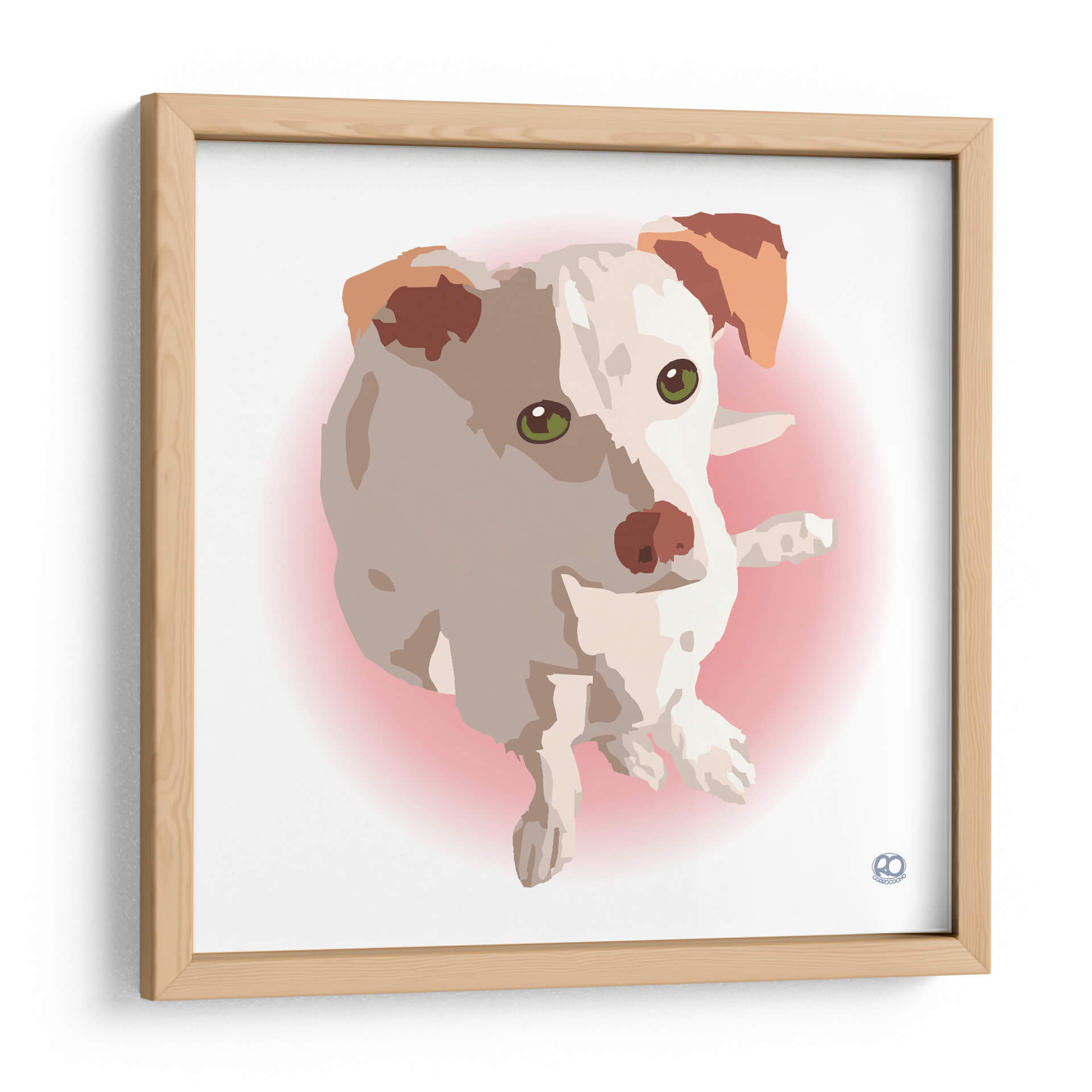 Aporta una chispa de alegría y personalidad a tu hogar con este encantador cuadro decorativo de un Jack Russell Terrier. La obra captura la vivacidad y la mirada curiosa de esta popular raza canina, representada con un estilo moderno y audaz. La paleta de colores, dominada por blancos y toques cálidos de marrón y naranja en las orejas y el hocico, se complementa con unos ojos verdes penetrantes que parecen comunicarse directamente con el espectador. Un suave degradado rosado en el fondo crea una atmósfera cálida y acogedora, haciendo que el perro sea el punto focal indiscutible de la pieza. Este cuadro es ideal para amantes de los perros, o para quienes buscan añadir un elemento juguetón y lleno de carácter a su decoración. Su composición frontal y la expresión del animal transmiten una sensación de cercanía y afecto. Perfecto para dar vida a salones, recibidores o incluso espacios infantiles, este cuadro decorativo es una pieza que sin duda generará conversación y sonrisas. Añade un toque de calidez y compañía a tus paredes con esta representación artística única de un fiel amigo.