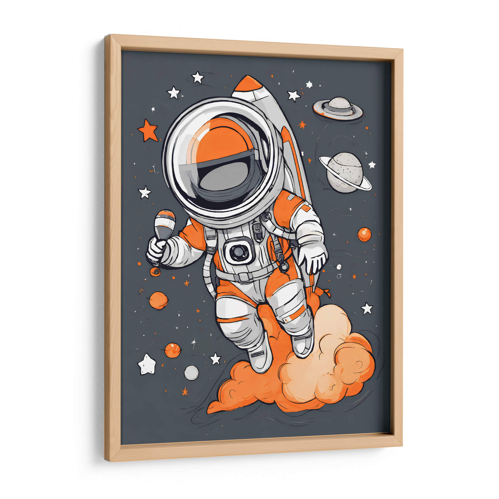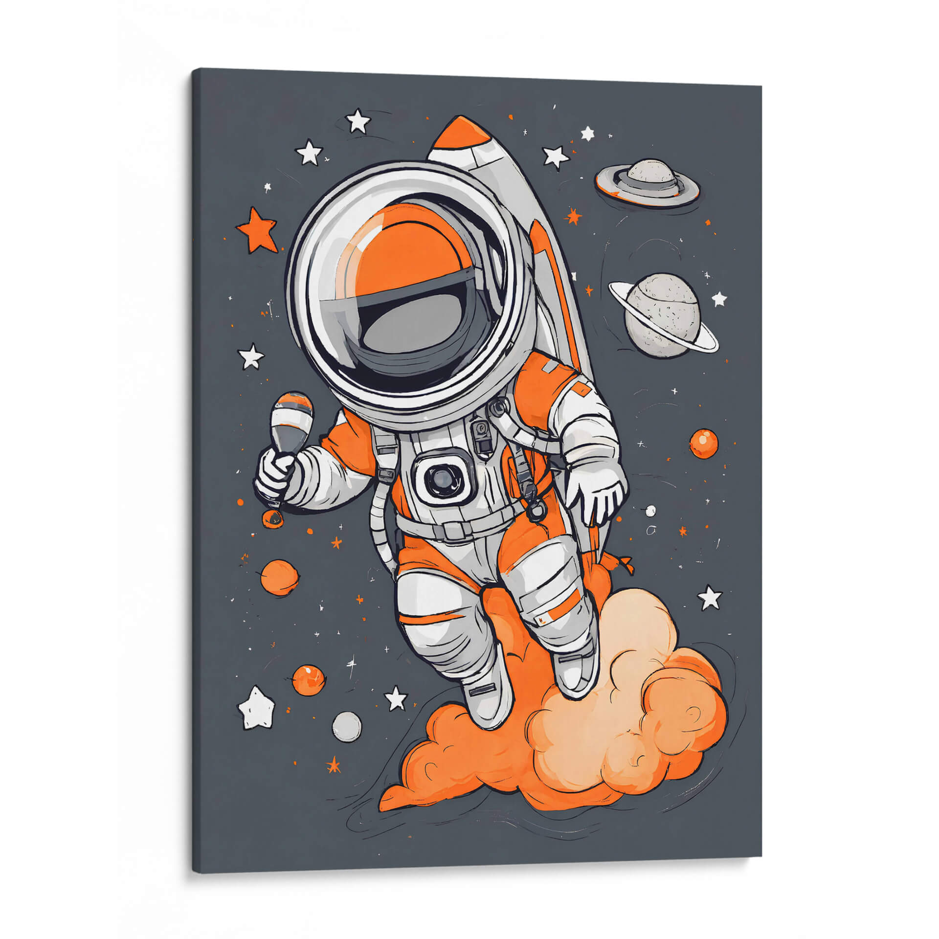 Embárcate en una aventura cósmica con este cautivador cuadro decorativo, "Pequeño Astronauta", de DEA Digital Esoteric Art. Esta obra de arte digital vibrante y llena de imaginación transporta al espectador a las profundidades del espacio, donde un intrépido astronauta, enfundado en un traje blanco y naranja, se impulsa entre las estrellas. La composición lúdica presenta al astronauta sosteniendo una copa, sugiriendo una celebración o un brindis a la exploración intergaláctica. Los elementos celestes, como planetas estilizados y estrellas centelleantes, salpican un fondo oscuro que resalta los tonos naranjas y blancos del protagonista. La atmósfera es de optimismo y maravilla, invitando a soñar con los misterios del universo. Este cuadro decorativo es perfecto para añadir un toque de fantasía y modernidad a cualquier habitación, desde una sala de estar o un estudio hasta la habitación de un niño o un adolescente. Su estilo único y su mensaje de aventura lo convierten en una pieza de conversación ideal para aquellos que buscan una decoración de pared que inspire y deleite.