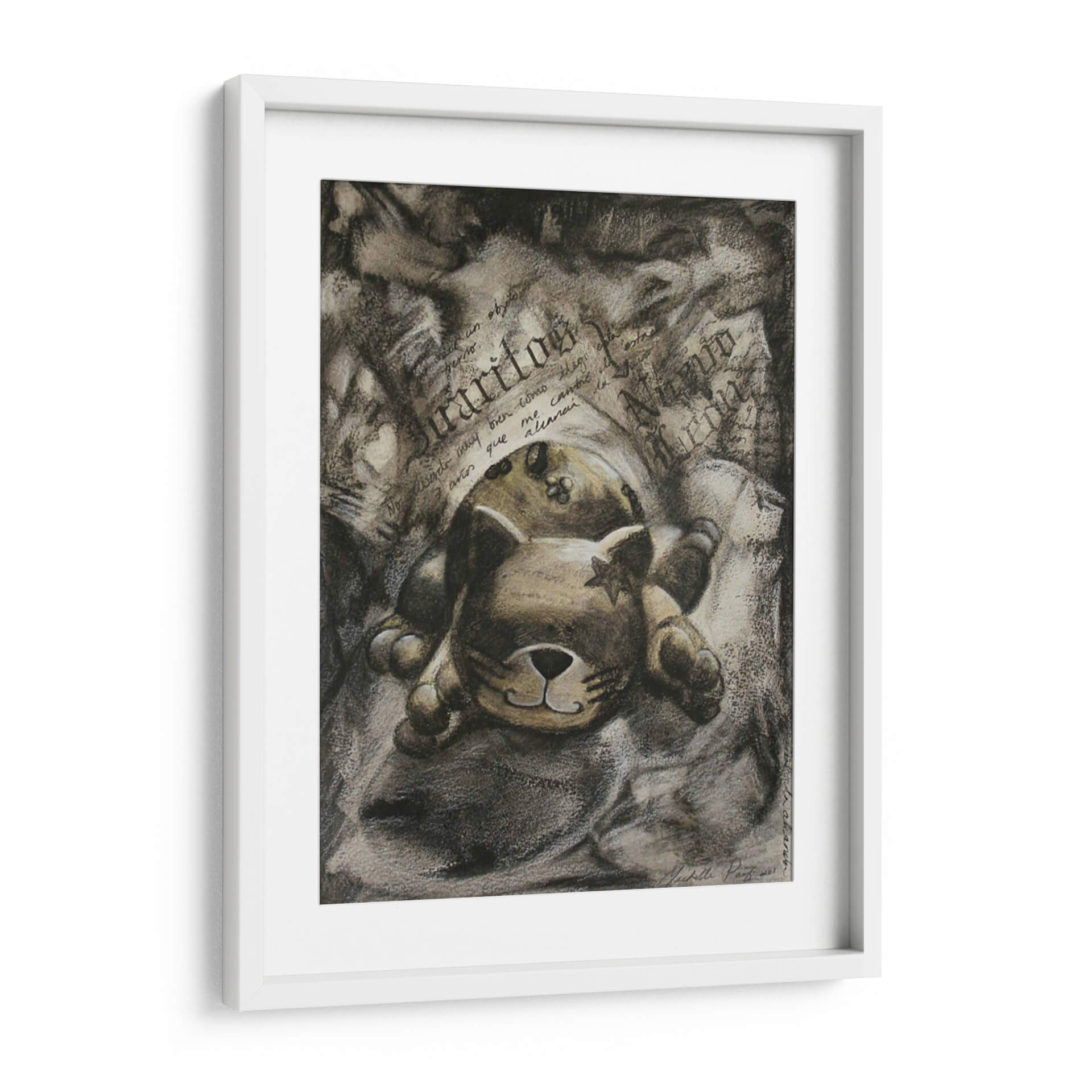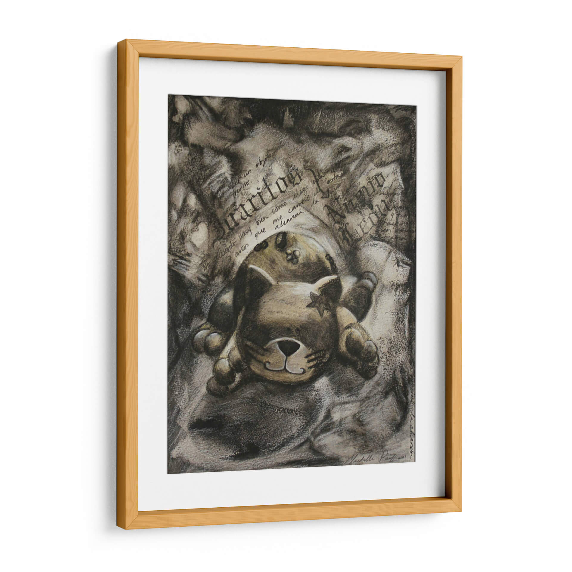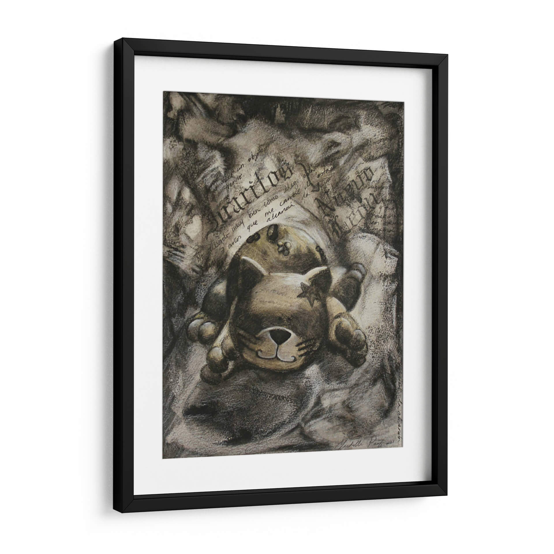 Sumérgete en la ternura y la nostalgia con "Serie La Family", una obra de arte original de Michelle Páez que captura la esencia de la infancia y la calidez del hogar. Esta pieza, ejecutada con una técnica que evoca el dibujo a mano alzada y la textura del carboncillo o pastel, presenta una figura central que recuerda a un tierno osito o gato de peluche, con un aire soñador y reconfortante. La paleta de colores se centra en tonos tierra, ocres y grises, creando una atmósfera íntima y melancólica, pero a la vez acogedora. El fondo texturizado, salpicado de fragmentos de escritura caligráfica, añade una capa de profundidad y misterio, sugiriendo recuerdos o pensamientos fugaces. "Serie La Family" es ideal para añadir un toque de dulzura y calidez a cualquier habitación, desde un dormitorio infantil hasta una acogedora sala de estar o un estudio personal. Es una invitación a la reflexión sobre los lazos afectivos y los tesoros de la memoria. Este cuadro decorativo contemporáneo es perfecto para quienes buscan arte con alma, piezas que hablen de emociones y conecten con el espectador a un nivel personal, aportando un elemento único y emotivo a la decoración de interiores.